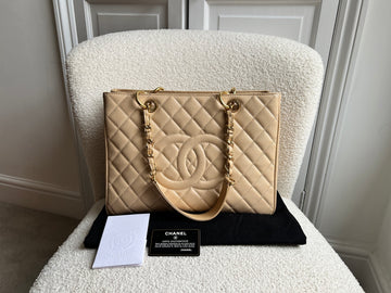 Chanel Beige Caviar Grand Shopper Tote gold hardware (GST)