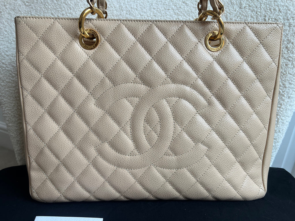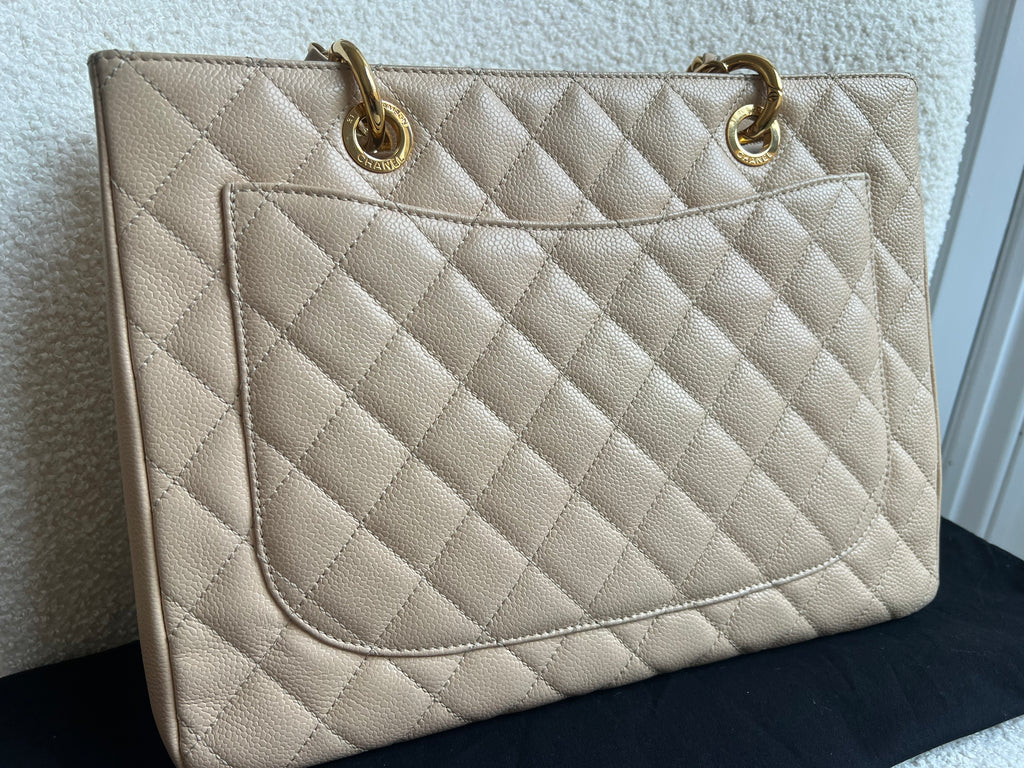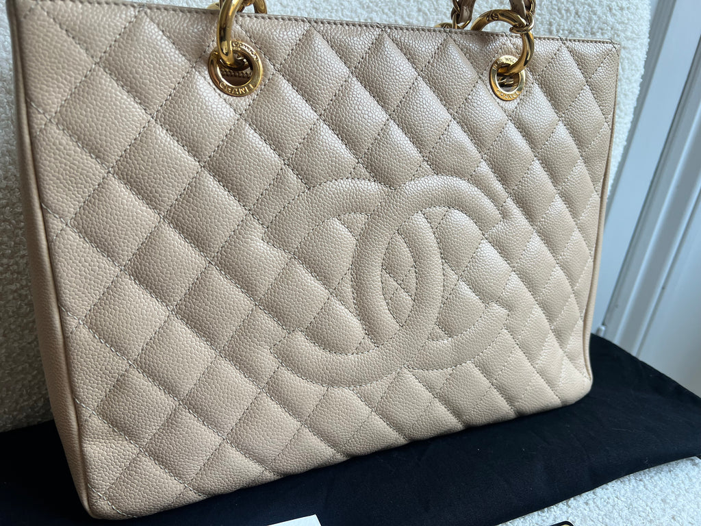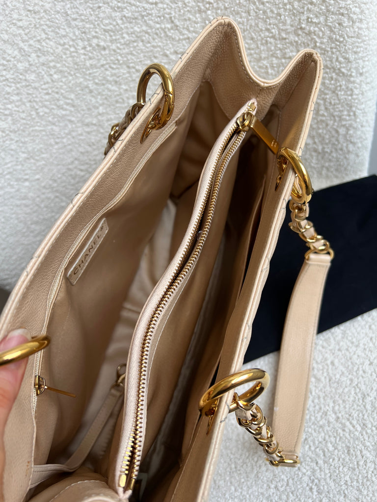 Chanel Beige Caviar Grand Shopper Tote gold hardware (GST)