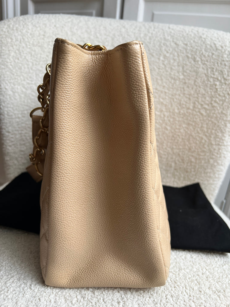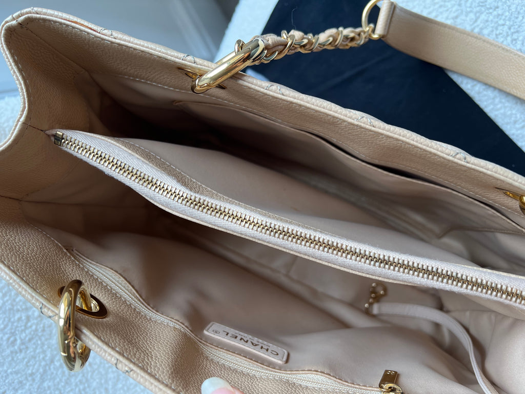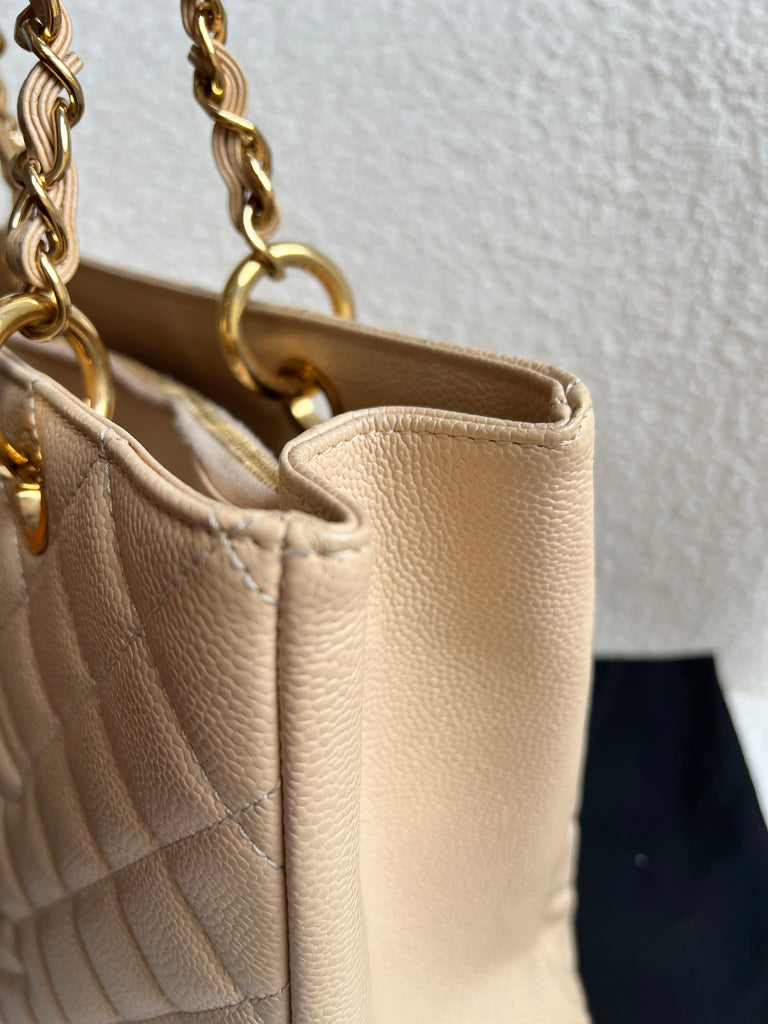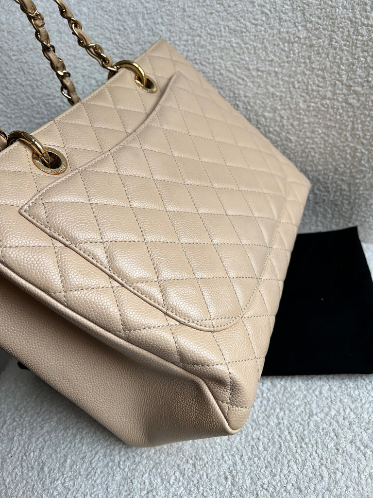 Chanel Beige Caviar Grand Shopper Tote gold hardware (GST)