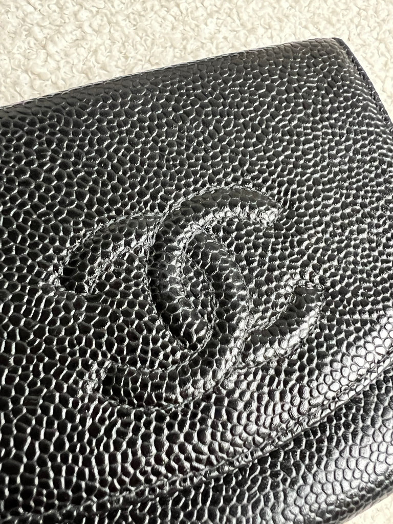 Chanel Black Caviar Timeless Small French Bifold Wallet
