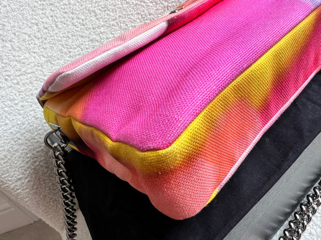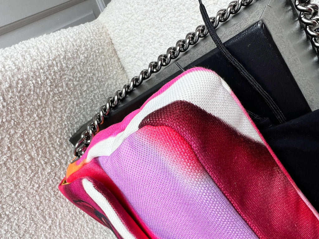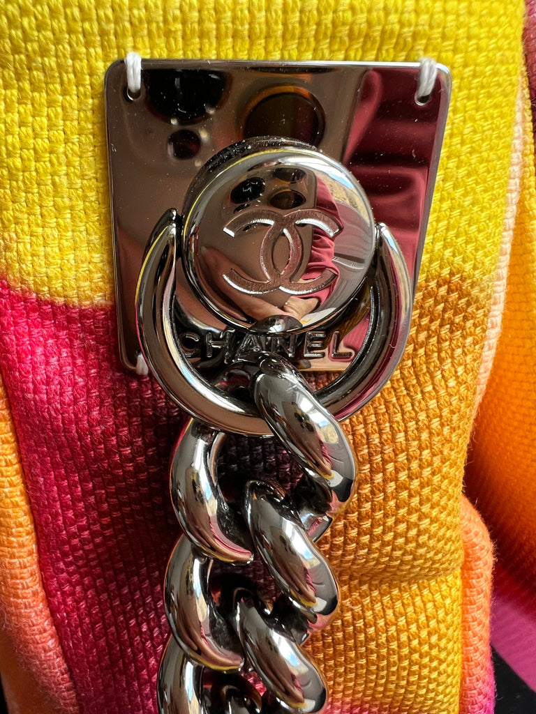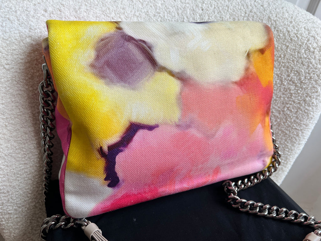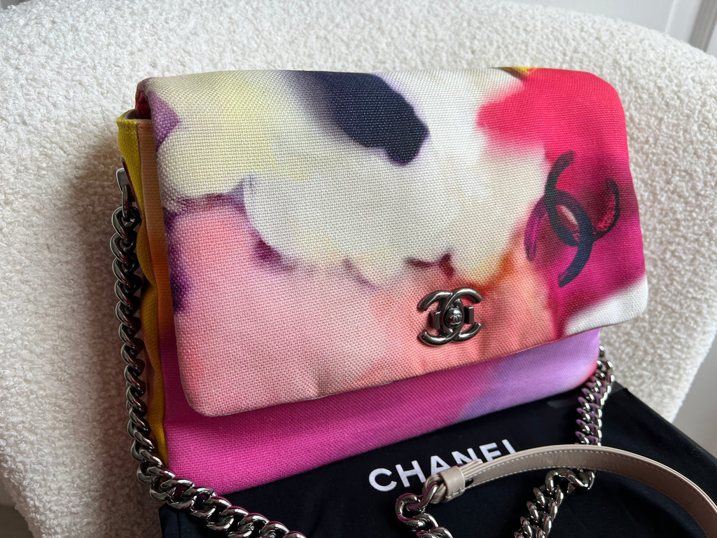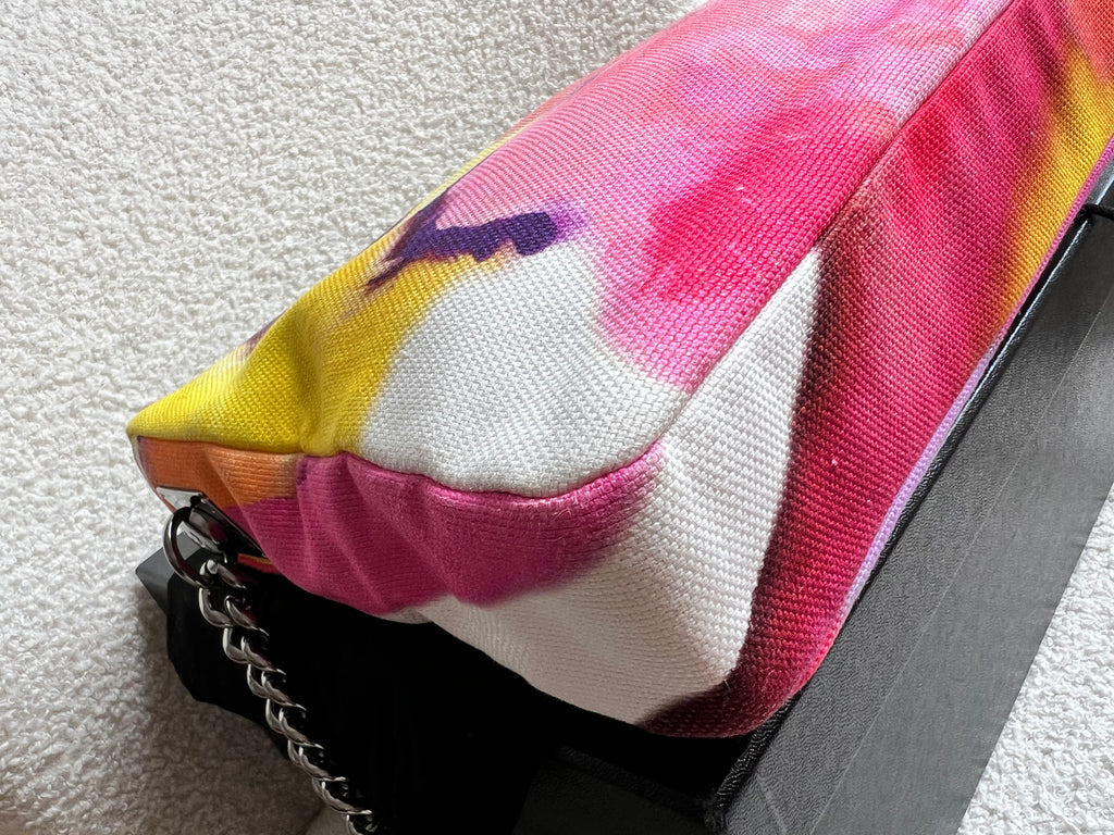 Chanel Flower Power Shoulder Bag. Crafted from multicolour canvas canvas and featuring ruthenium hardware. From the Power Flower collection from 2016. The ultimate shoulder bag with a long chain to also be worn as a crossbody bag. This also comes with a short detachable chain which is non branded.