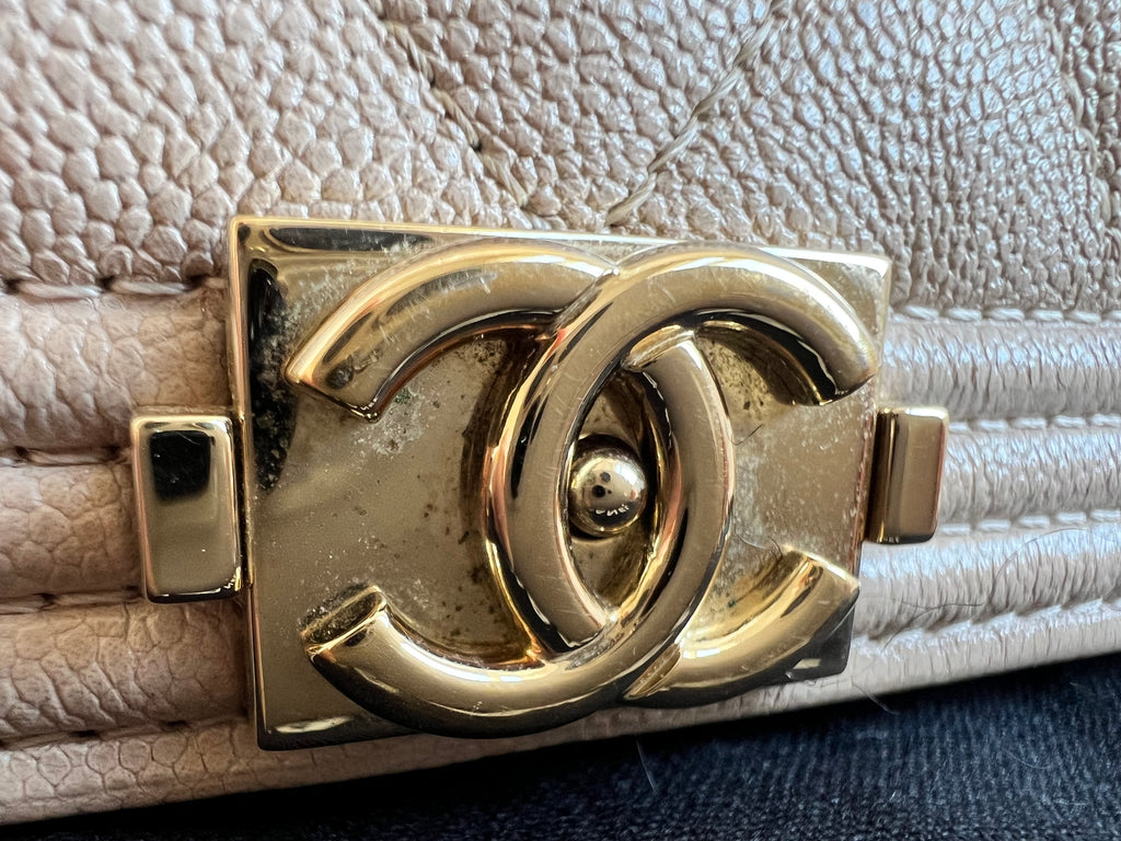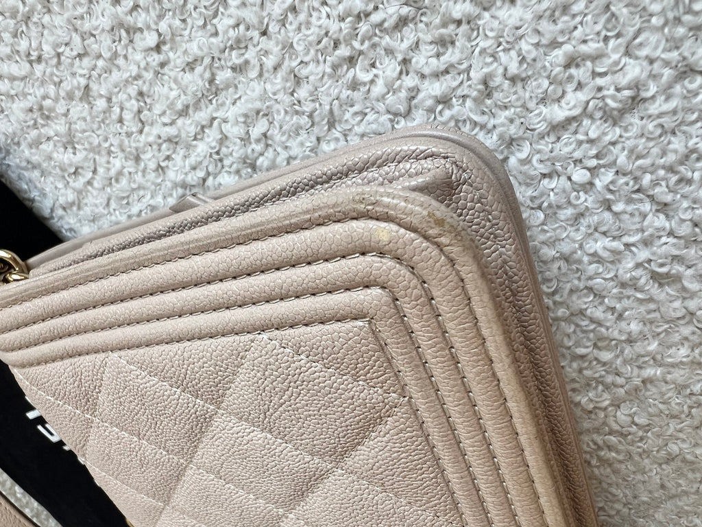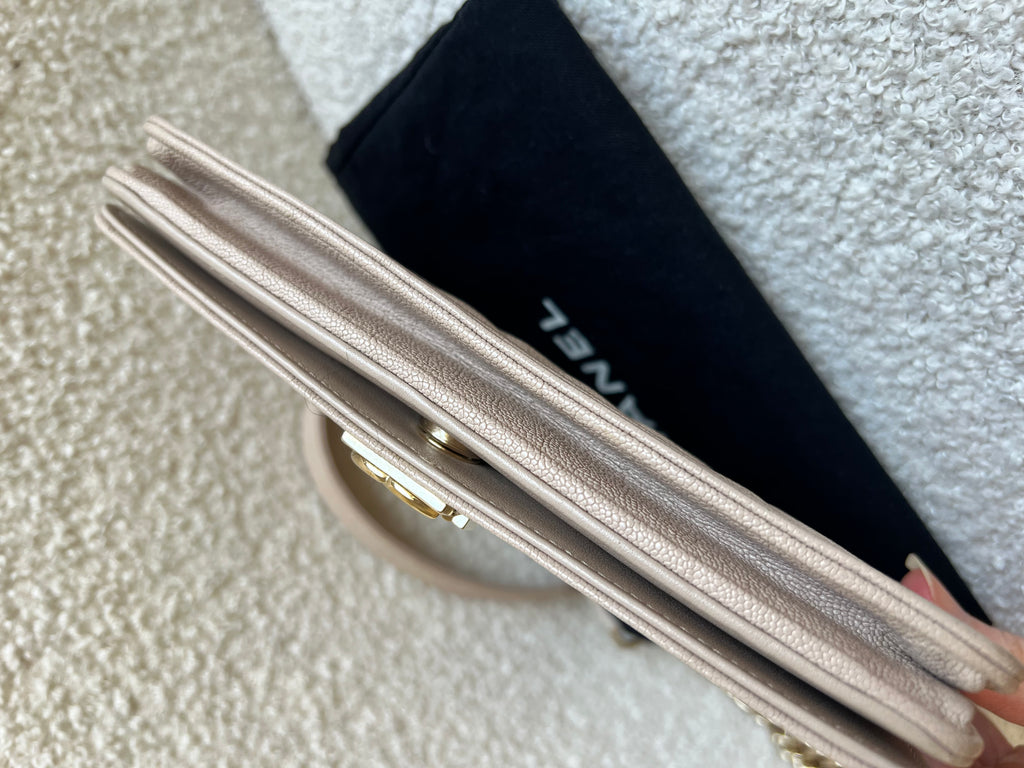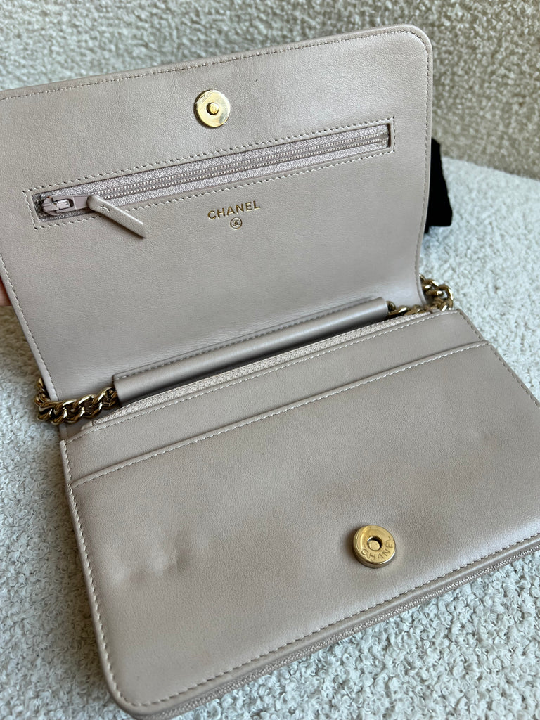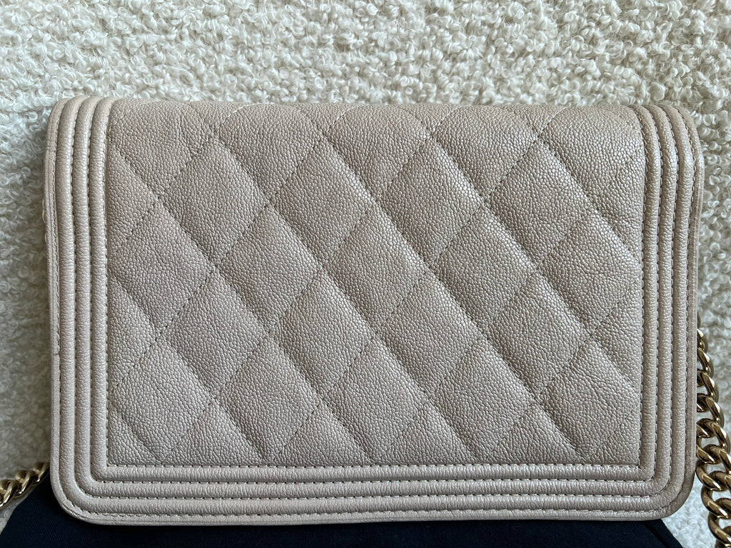 Chanel Ivory Cream Quilted Caviar Boy Wallet on Chain