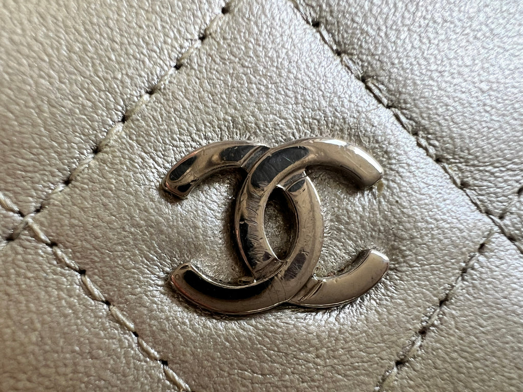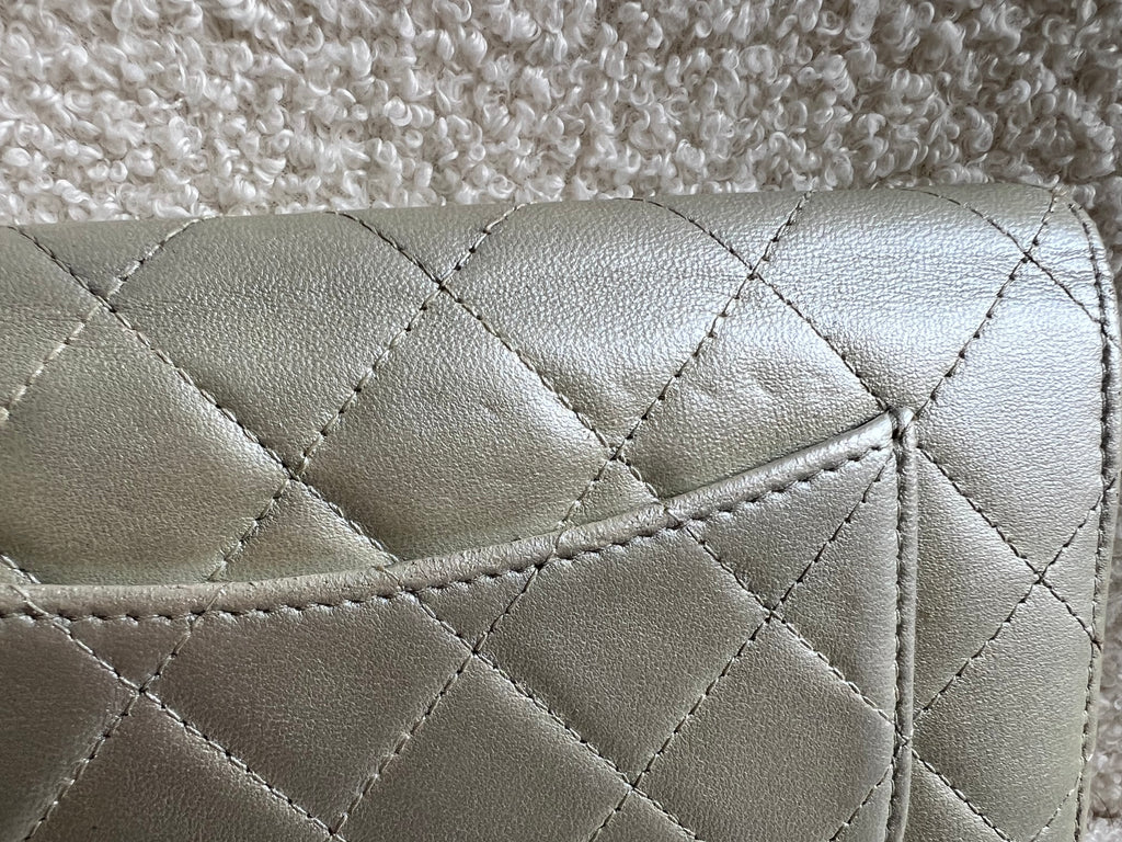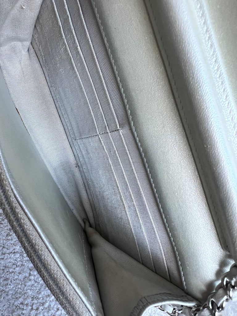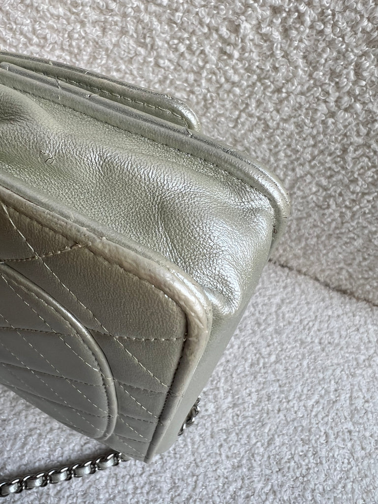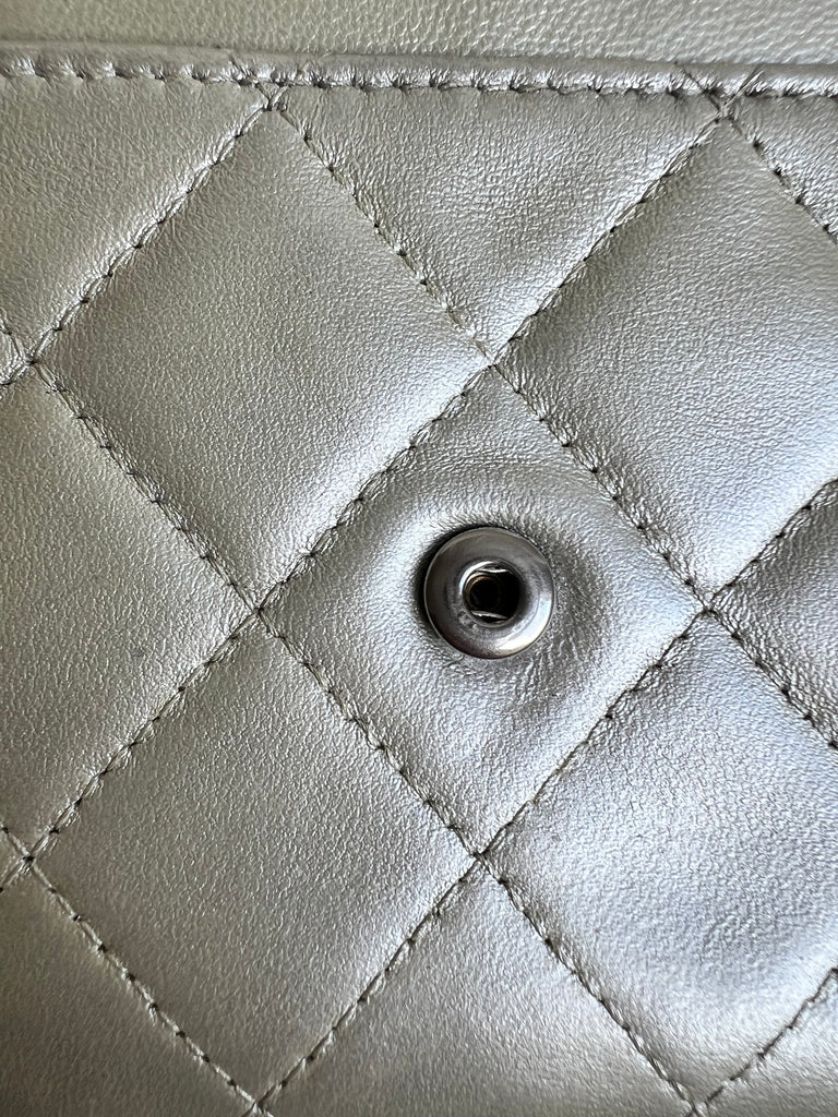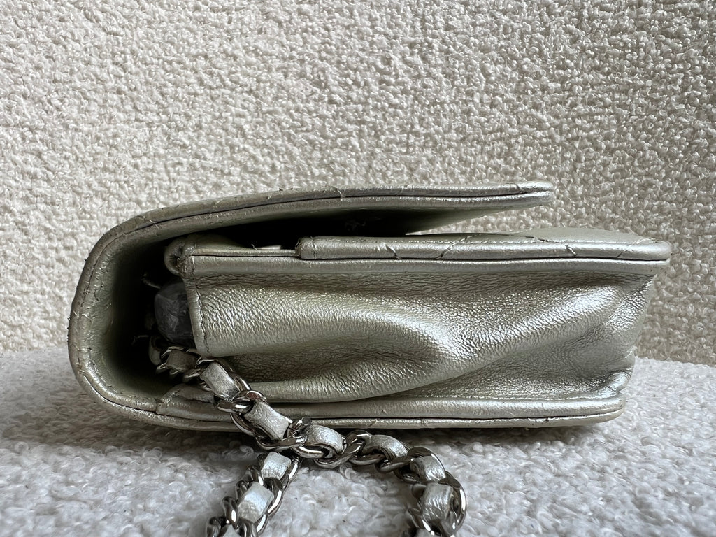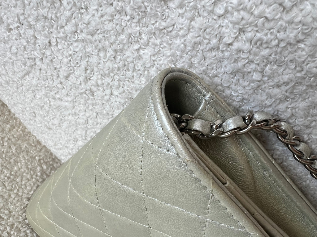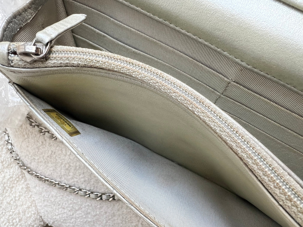 Chanel Silver Pearlescent Lambskin Wallet on Chain