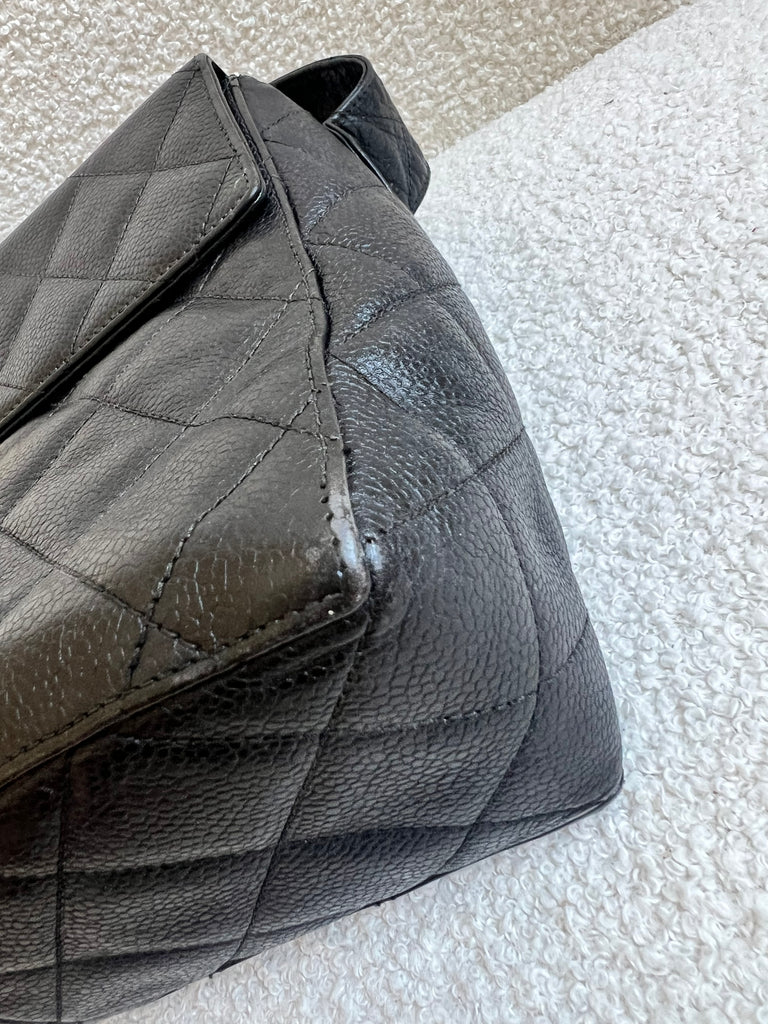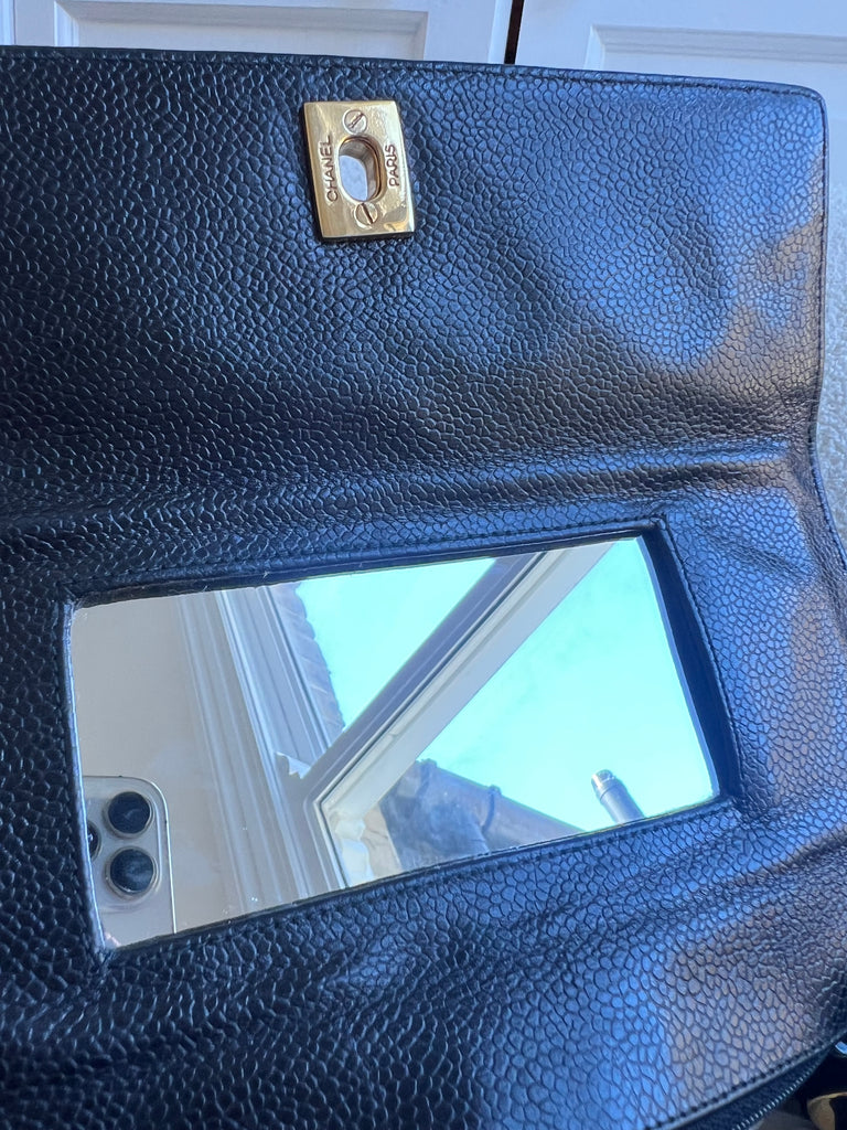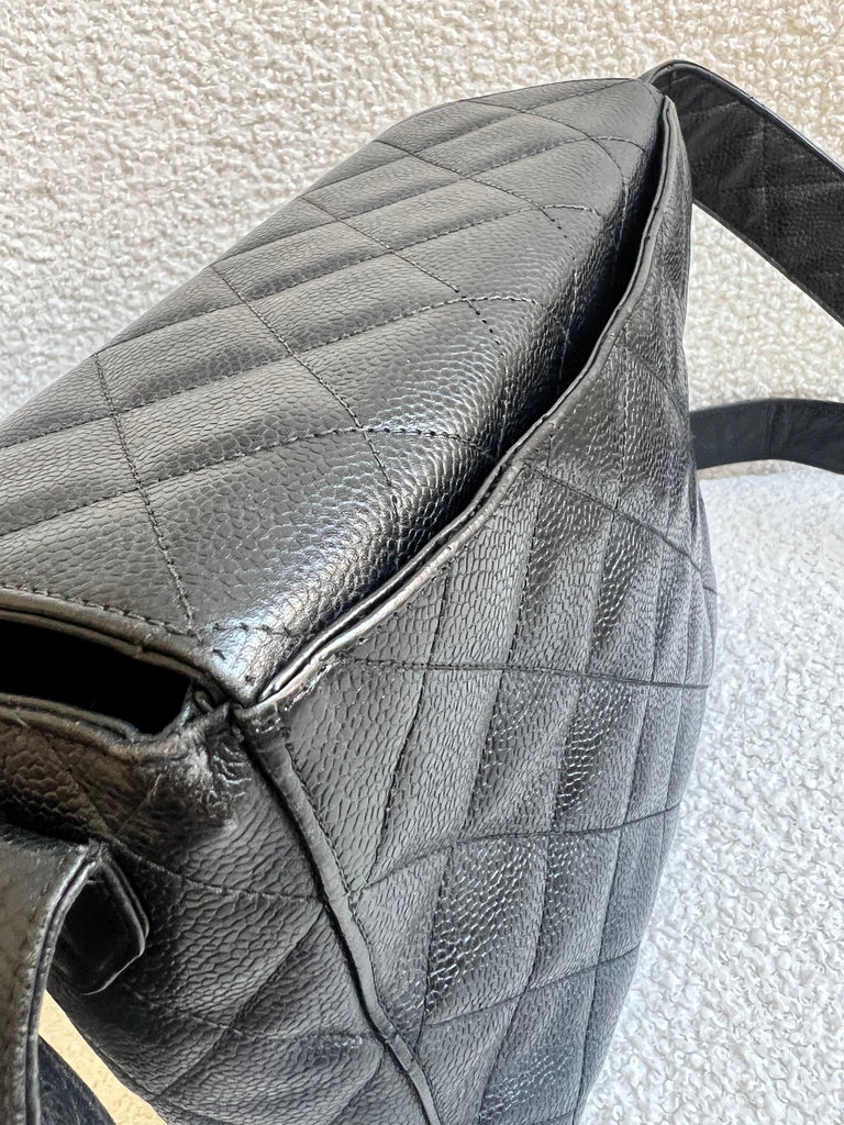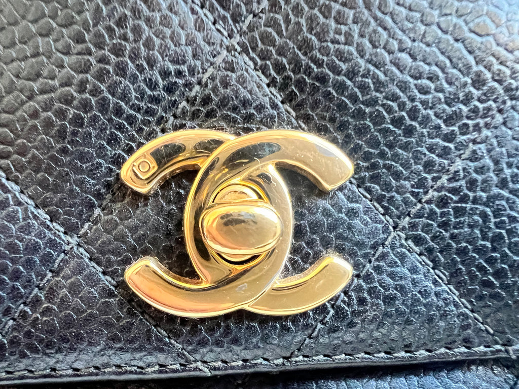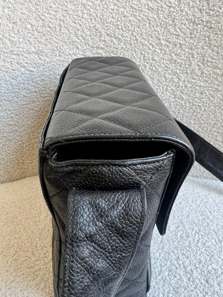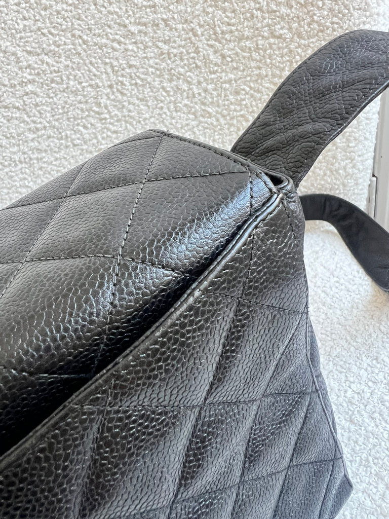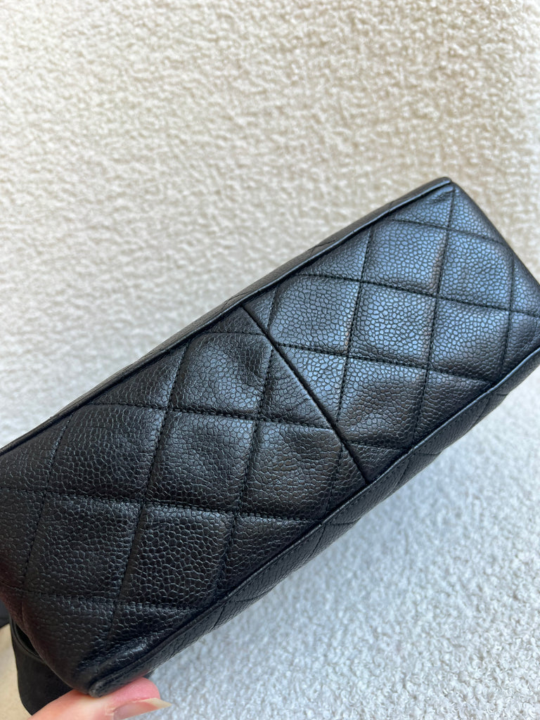 Chanel Vintage Black Caviar Square Messenger Bag. The practical style is crafted from the robust caviar leather and has a small - medium capacity. Ideal for day to day wear and has a lower price tag than some other Chanel styles. Featuring a long leather strap, it can be worn over the shoulder or cross body. Flap closure with turnlock hardware.