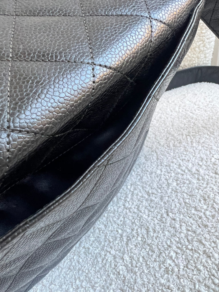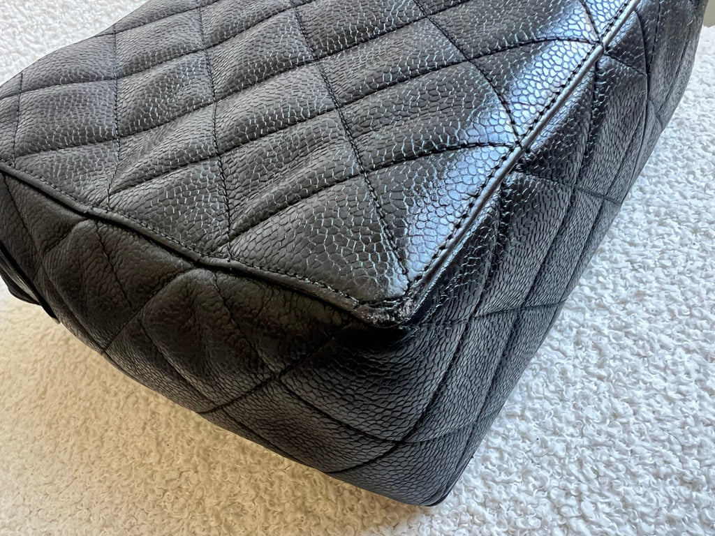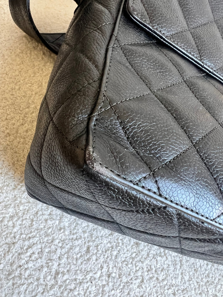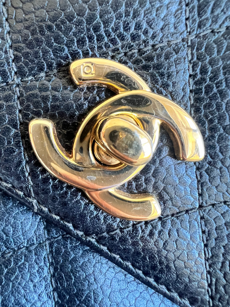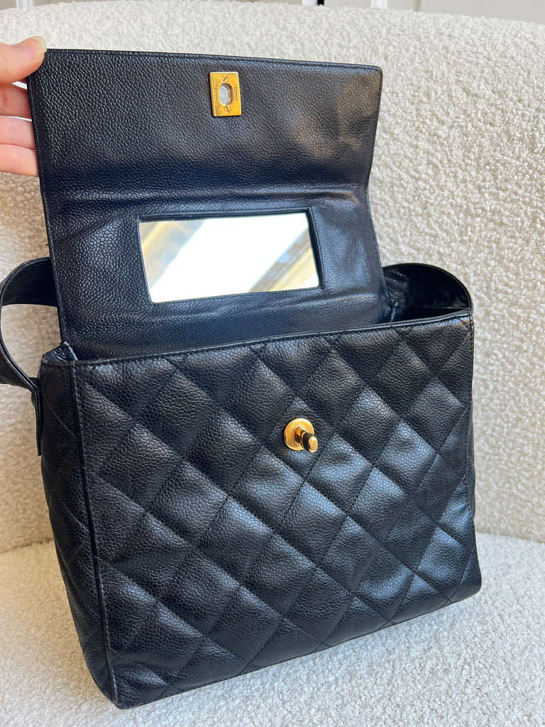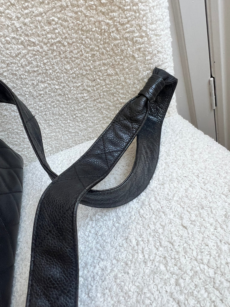 Chanel Vintage Black Caviar Square Messenger Bag. The practical style is crafted from the robust caviar leather and has a small - medium capacity. Ideal for day to day wear and has a lower price tag than some other Chanel styles. Featuring a long leather strap, it can be worn over the shoulder or cross body. Flap closure with turnlock hardware.