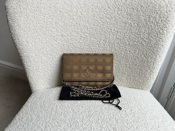 Chanel Vintage Travel Line Wallet on Chain in Khaki Nylon