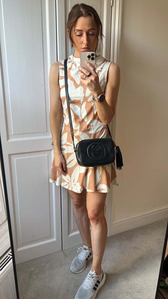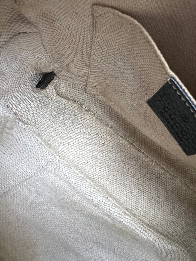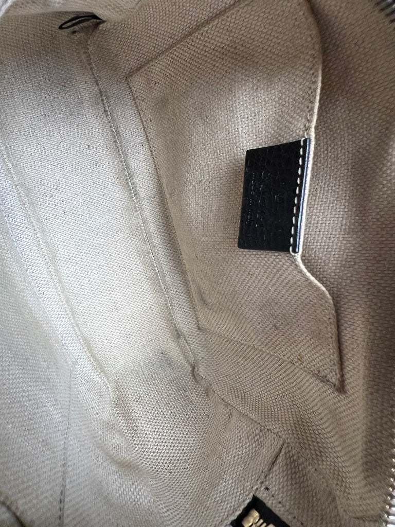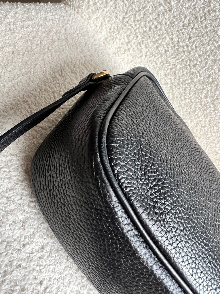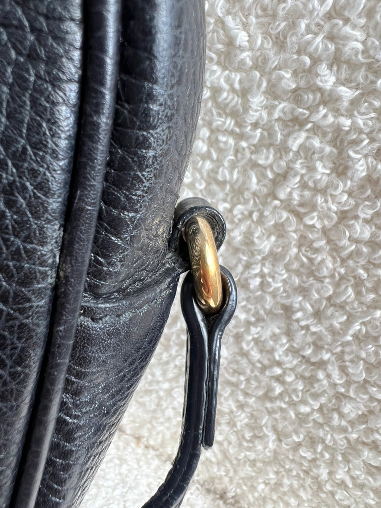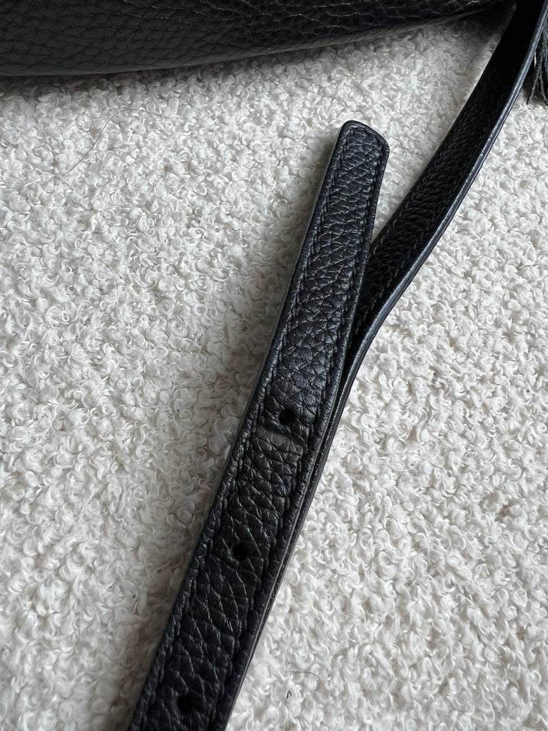 Gucci Soho Disco in Black Leather with pale gold hardware. This practical, cross body, camera style bag is compact in size but still fits a reasonable amount. Can be worn over shoulder or cross body. Gucci's most popular style and goes with any outfit, dressed up or down.