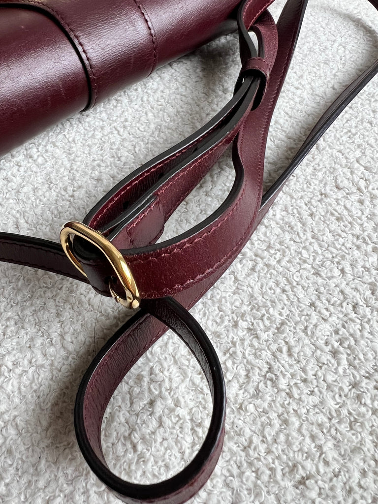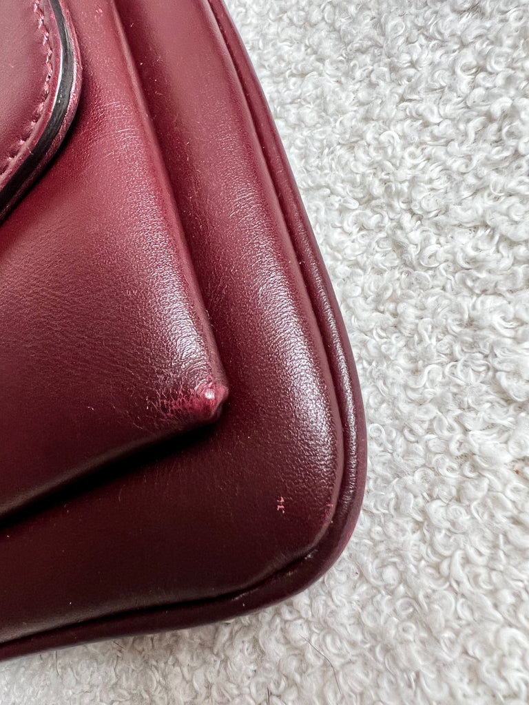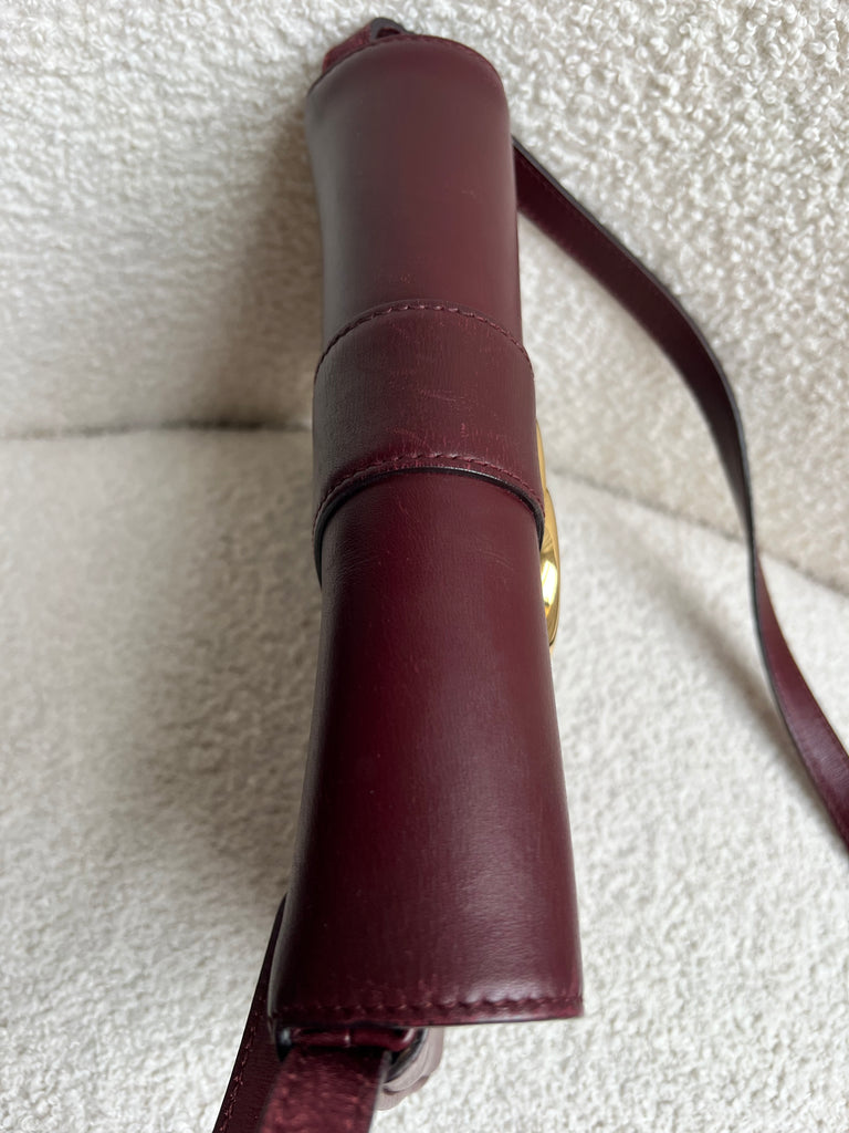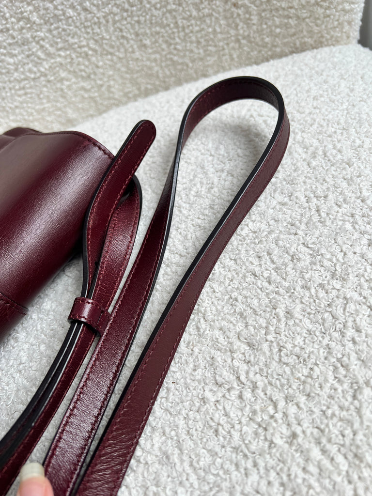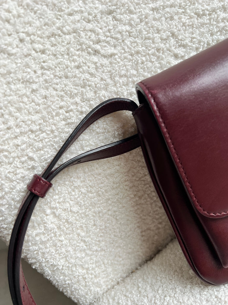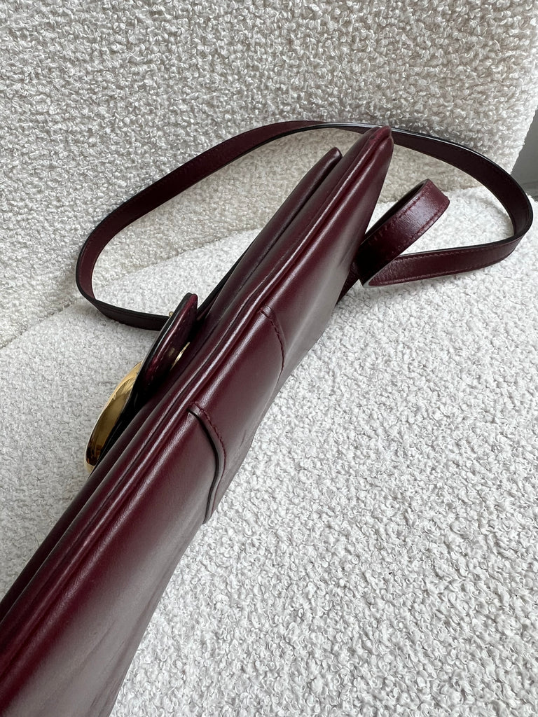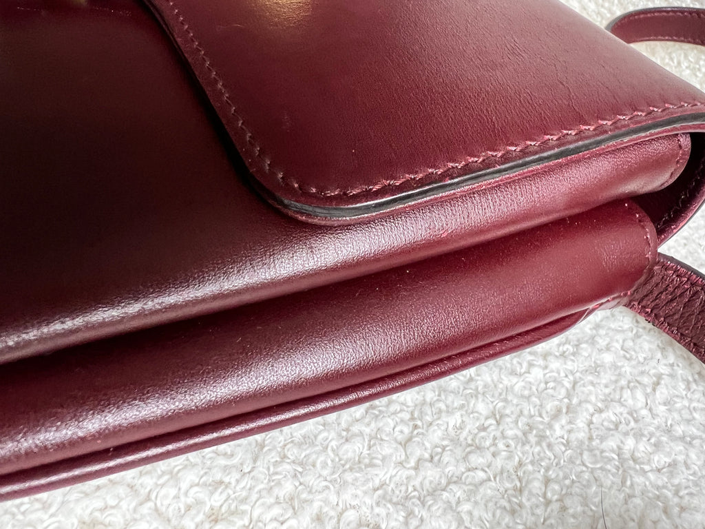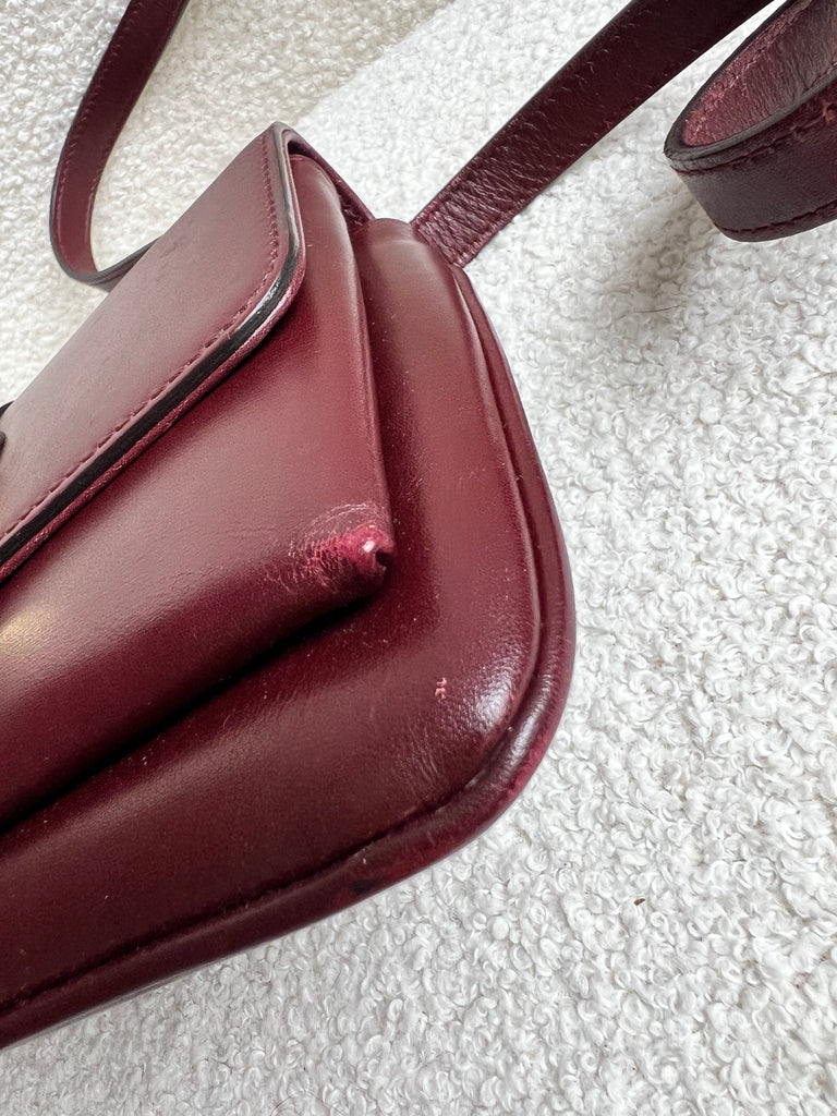 Gucci Small Arli Crossbody in Burgundy smooth calfskin with gold hardware. Featuring the iconic GG logo hardware, closure is via flap with hidden magnetic closure. With its sleek design and small interior, this bag can comfortably hold all your essentials. Carry cross-body for ultimate hands-free convenience using the long adjustable strap.