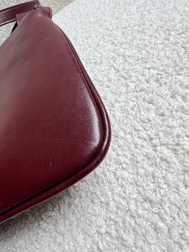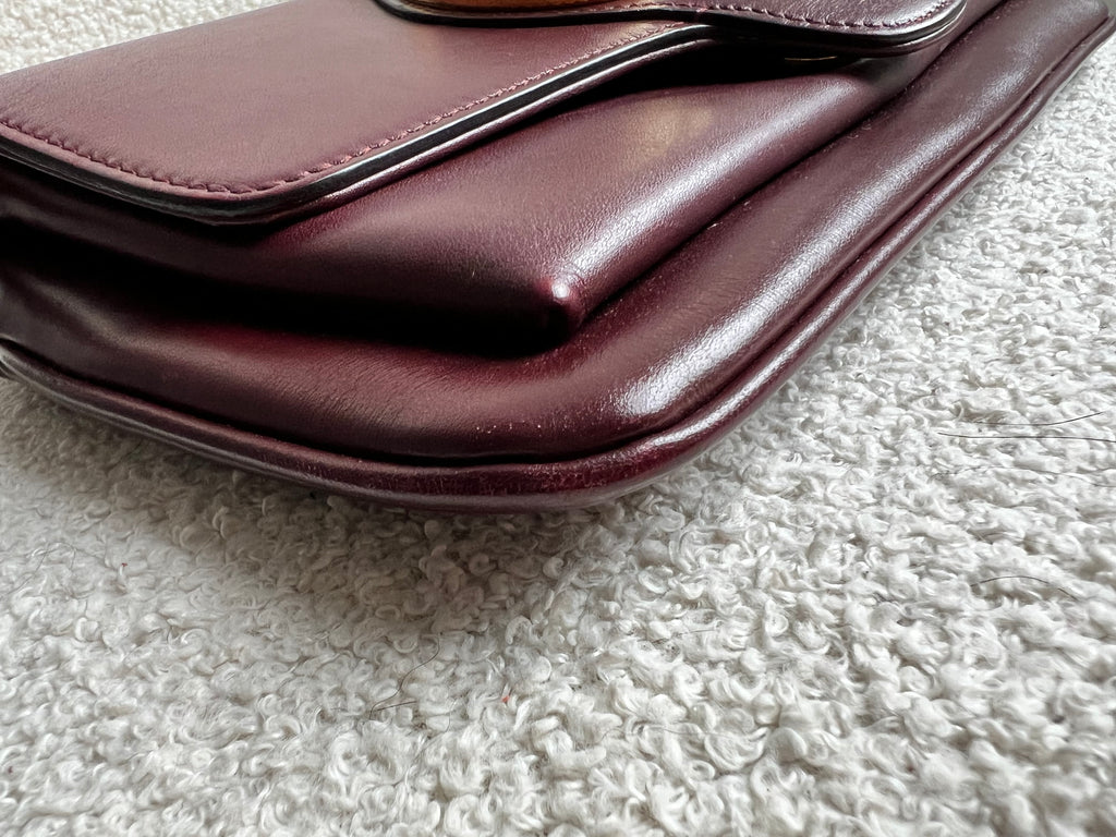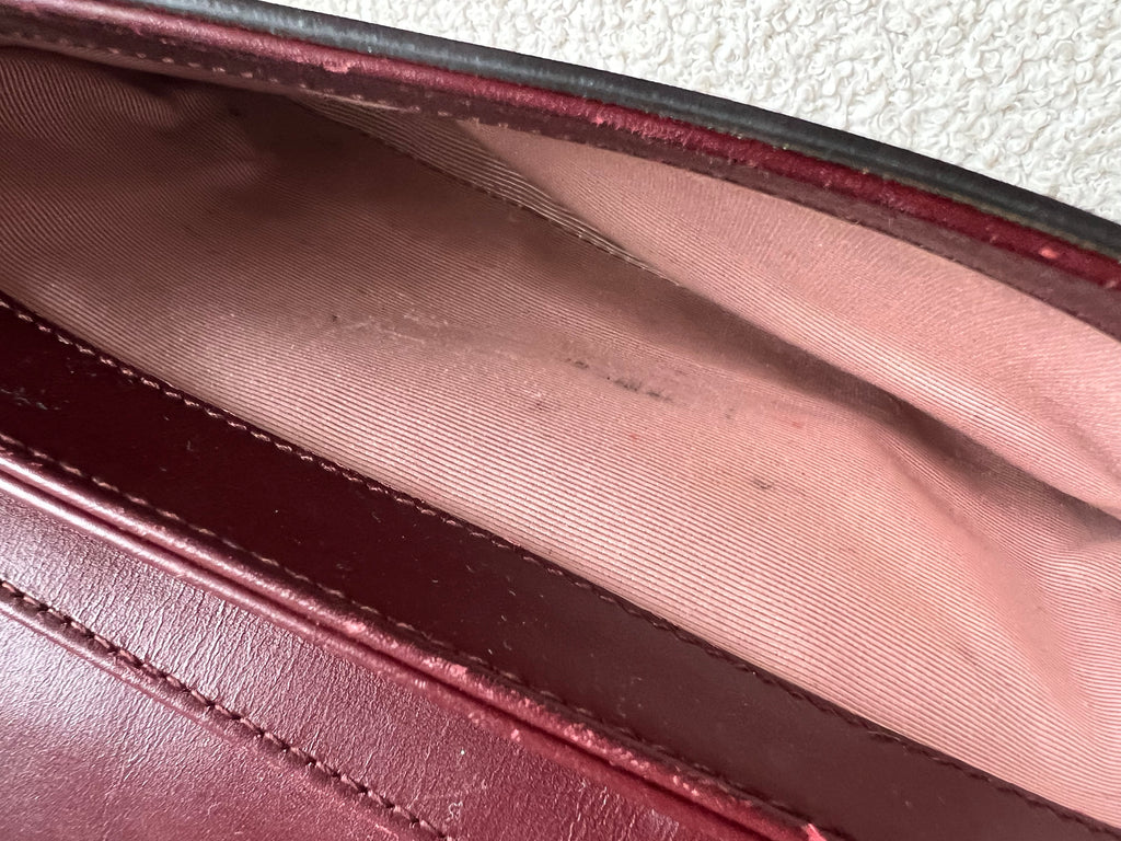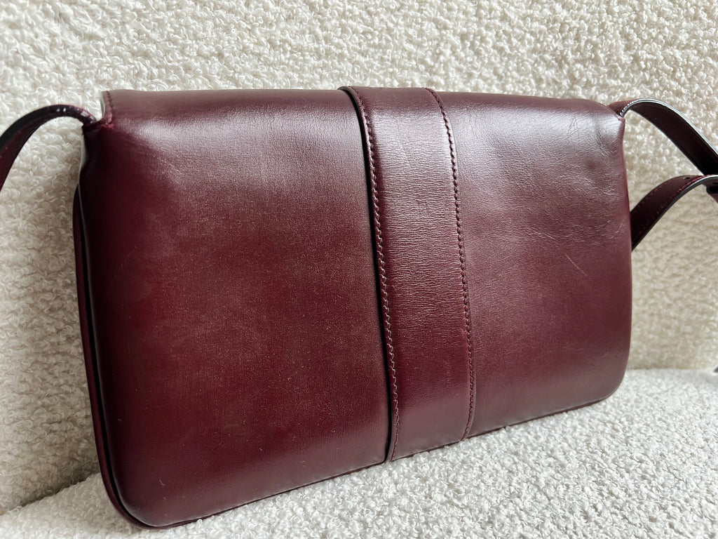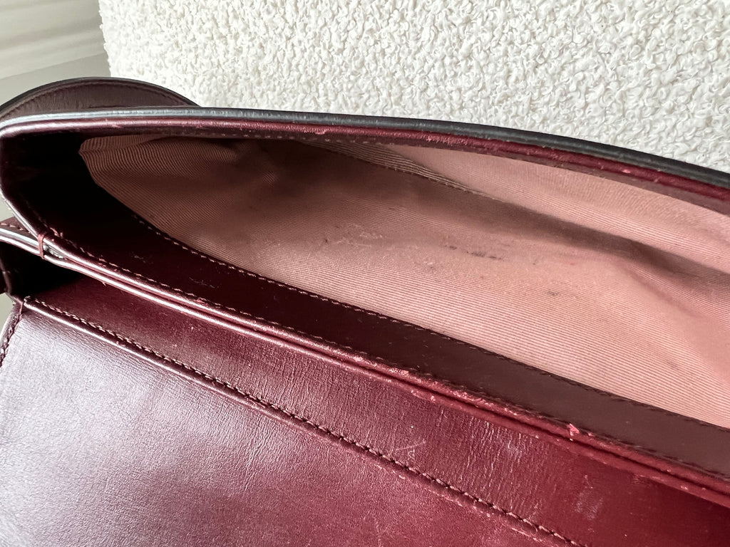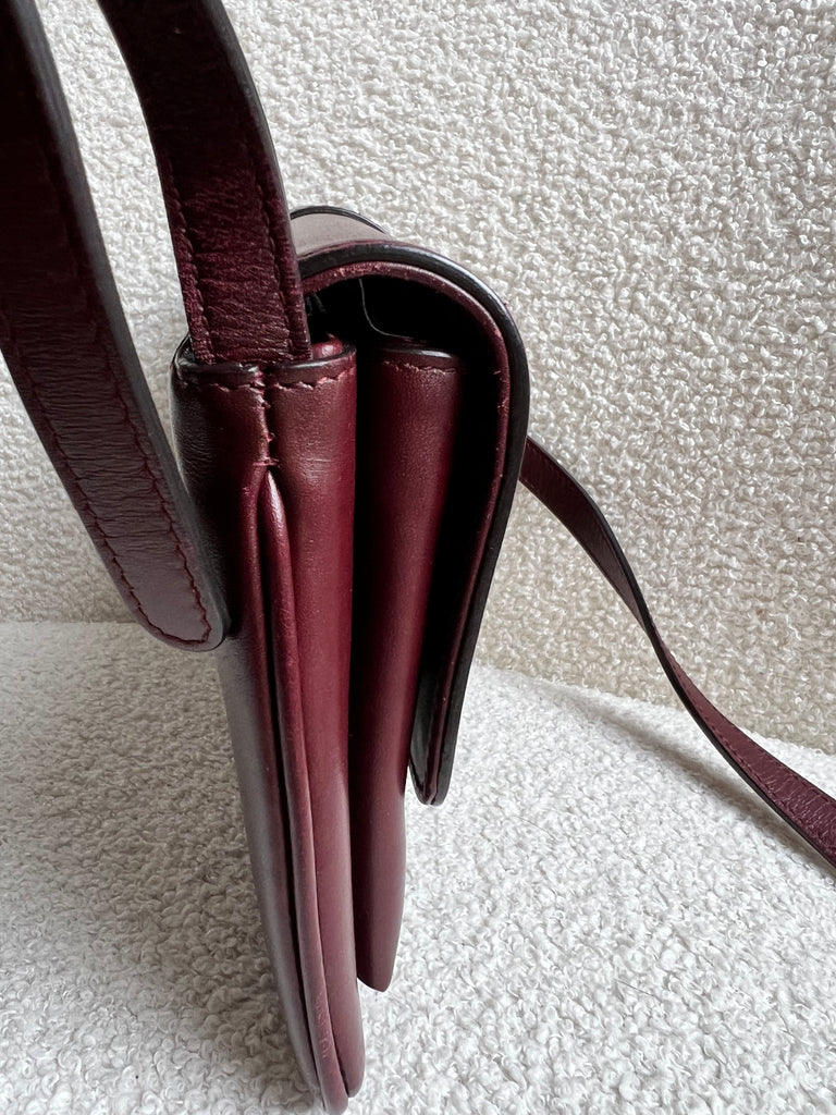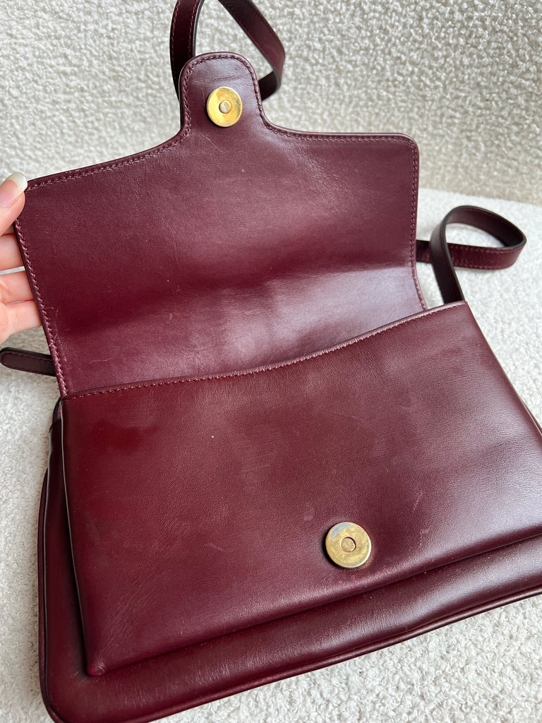 Gucci Small Arli Crossbody in Burgundy smooth calfskin with gold hardware. Featuring the iconic GG logo hardware, closure is via flap with hidden magnetic closure. With its sleek design and small interior, this bag can comfortably hold all your essentials. Carry cross-body for ultimate hands-free convenience using the long adjustable strap.