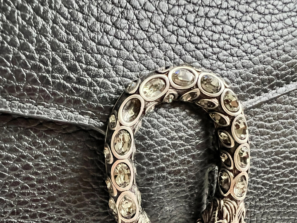 Hardware: Note there is a gem missing to the hardware (does not affect use and can be replaced by Gucci at a small cost).
