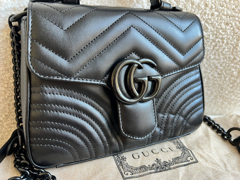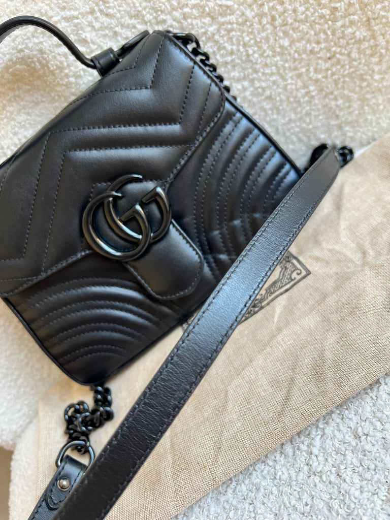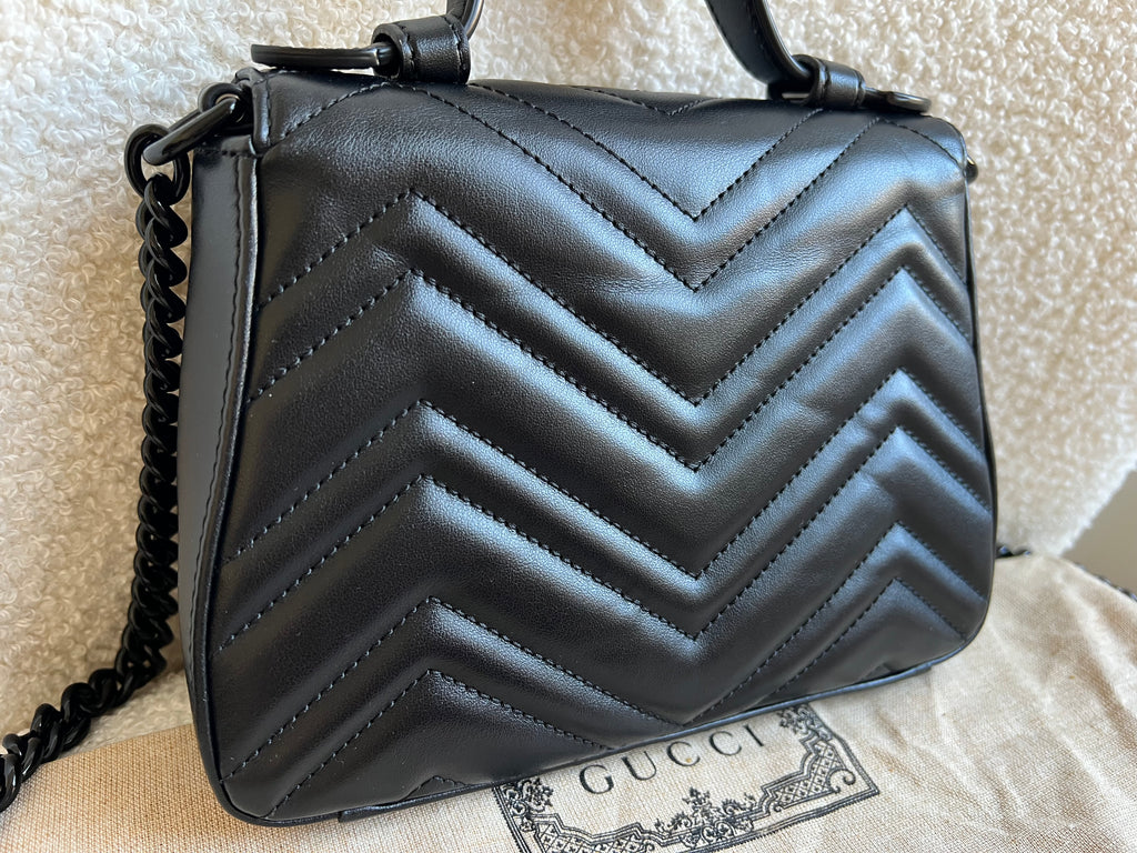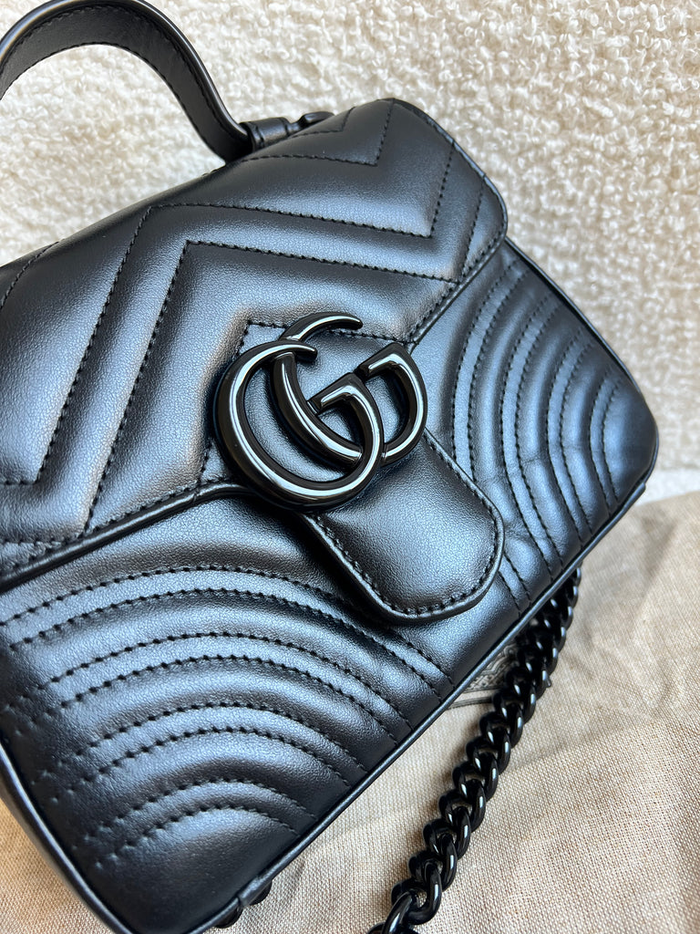 Gucci GG Black on Black Marmont Small Top Handle Bag (RRP £2,070)