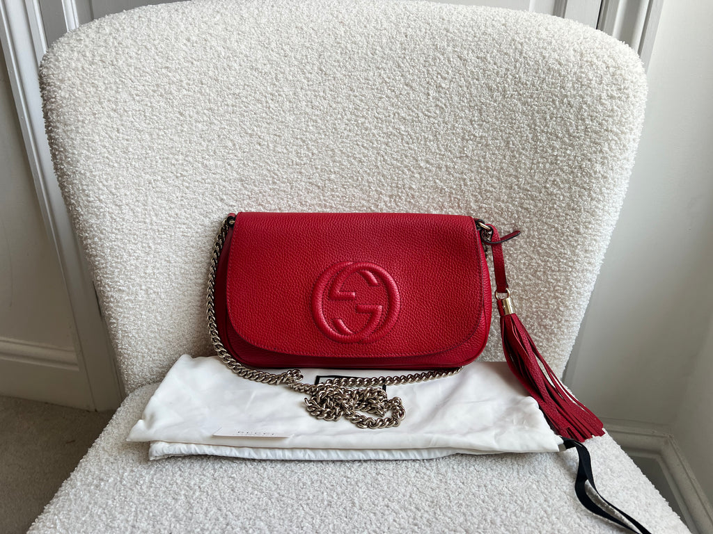 Gucci Red Soho Chain Crossbody Flap Bag