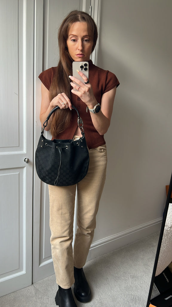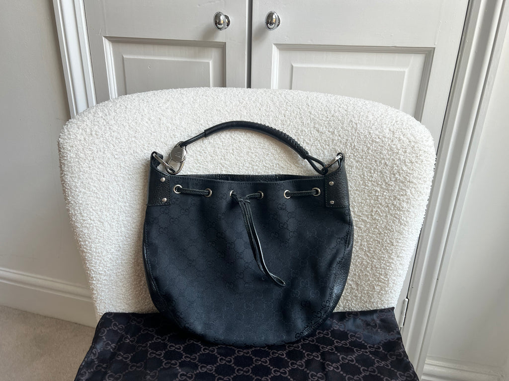 Gucci Black GG Canvas Drawstring Shoulder Bag