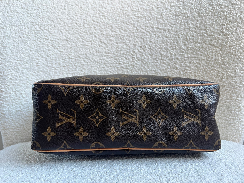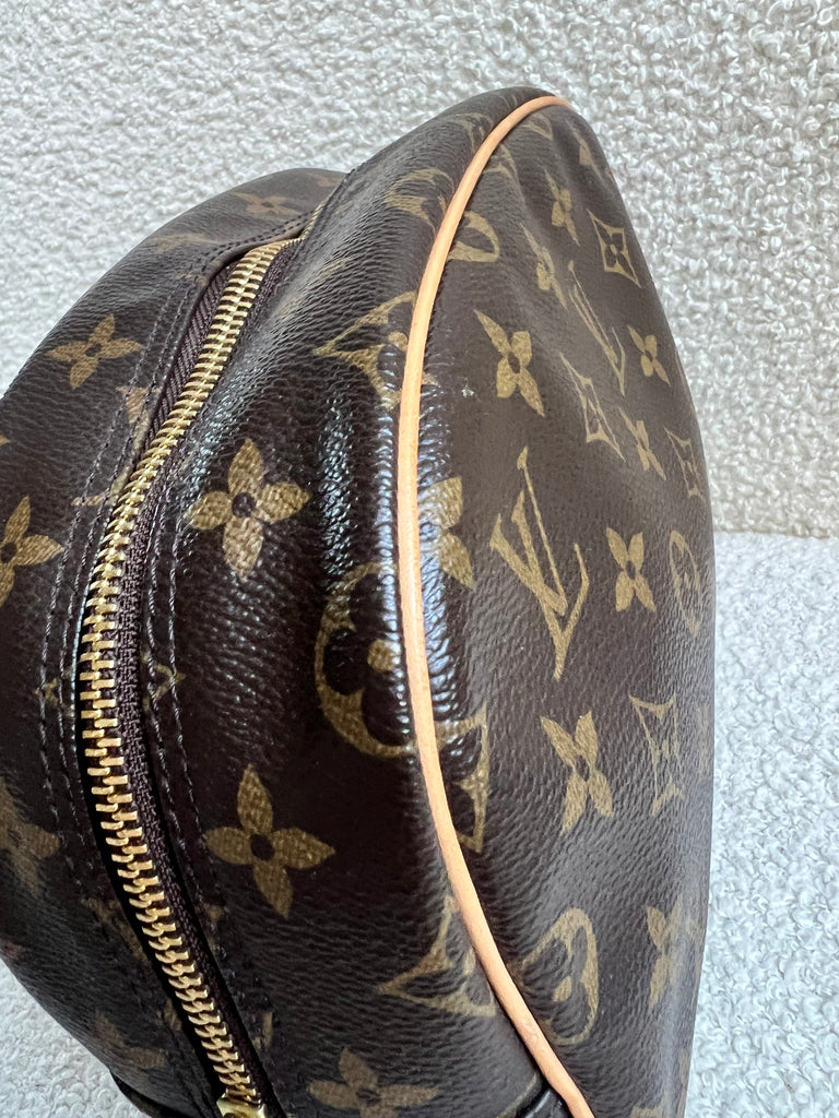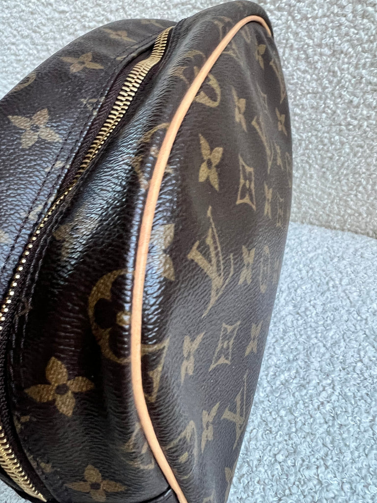 Louis Vuitton Trousse Toiletry Pouch in Monogram canvas with gold hardware. This large wash bag type pouch is crafted in monogram canvas and has a zipper closure. Could be used as a handheld clutch, a makeup bag or cosmetic pouch, or a smaller bag to be held inside luggage. 2013 year.