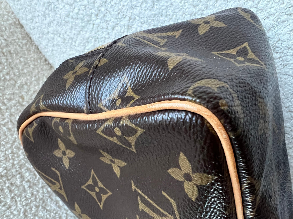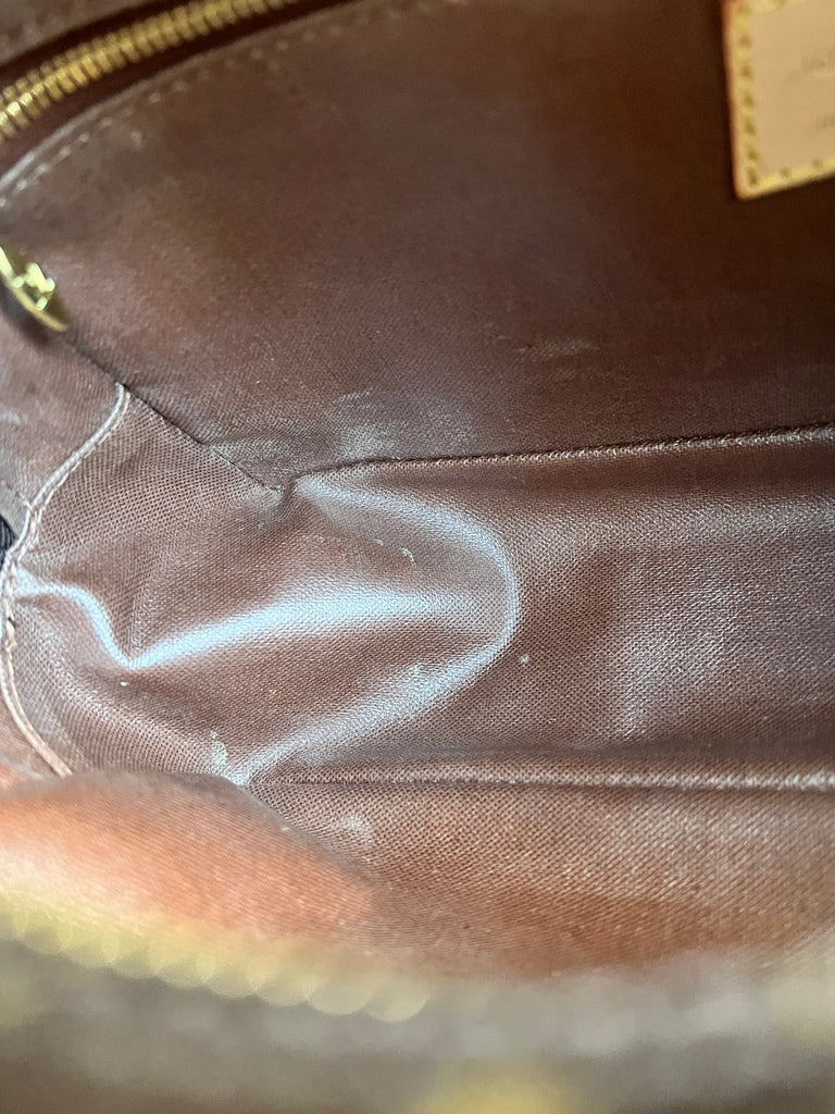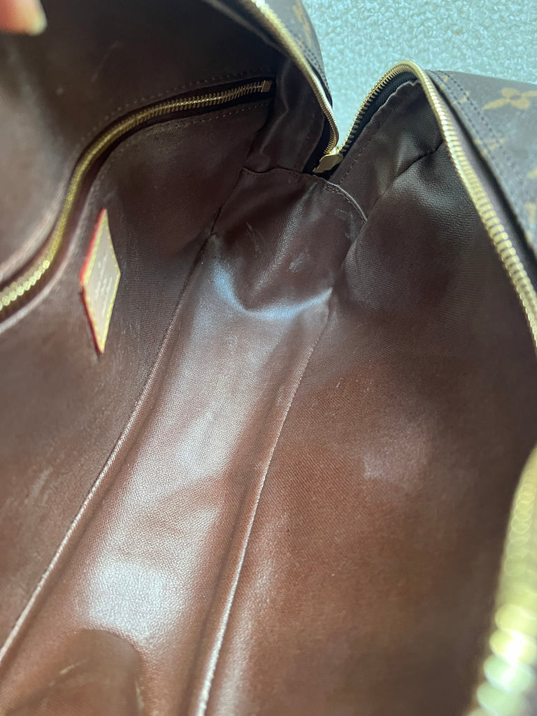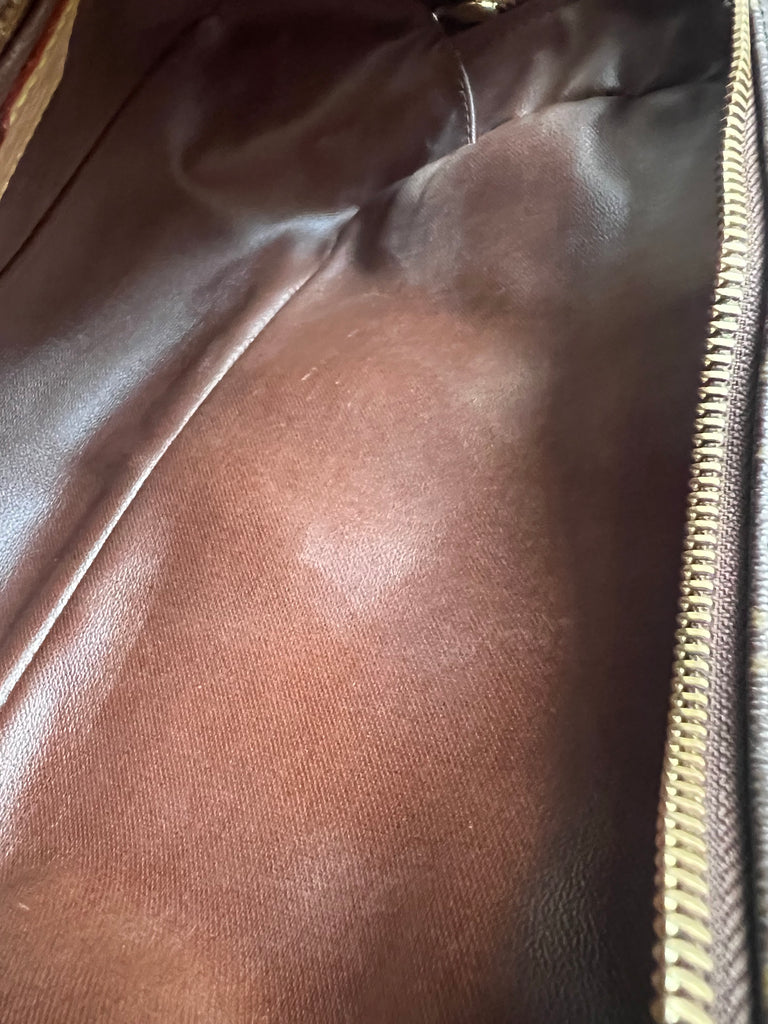 Exterior: Very good condition with small signs of wear. Minor marks to the canvas and slight creasing due to storage. Light wear to leather trim.