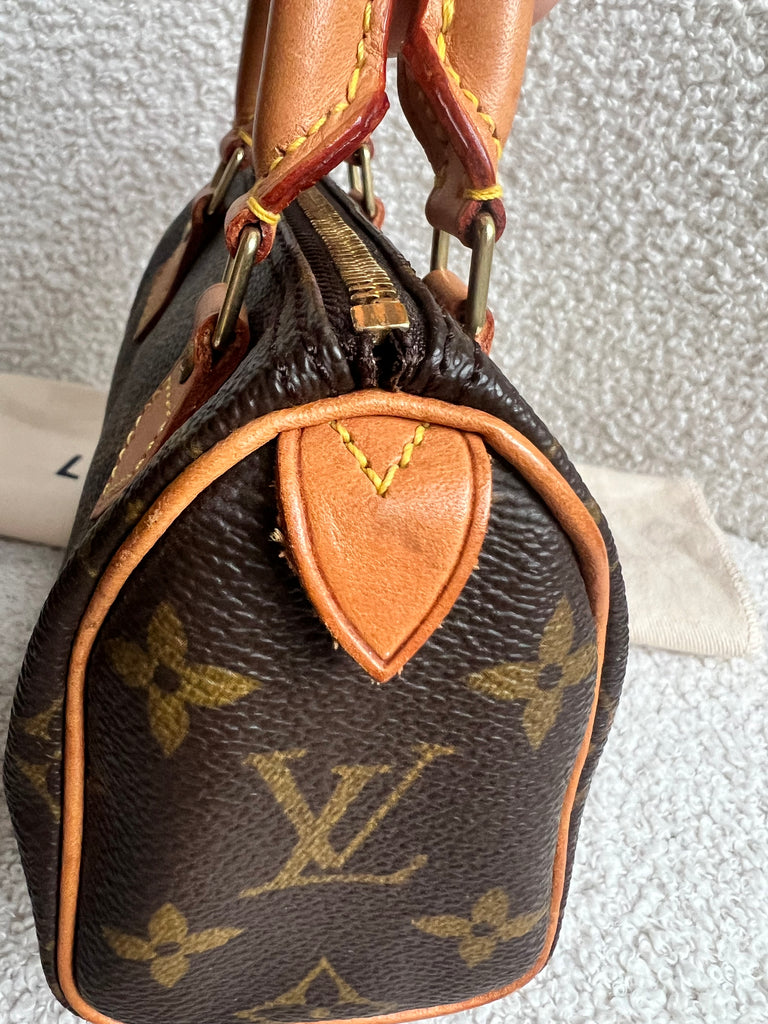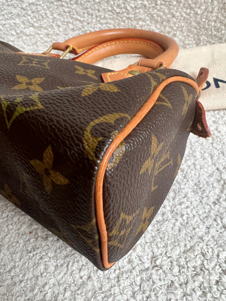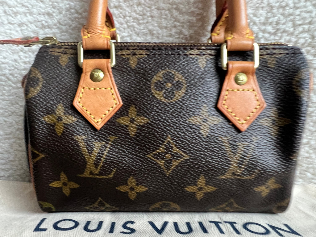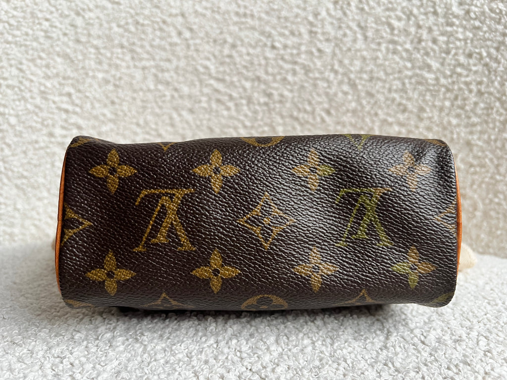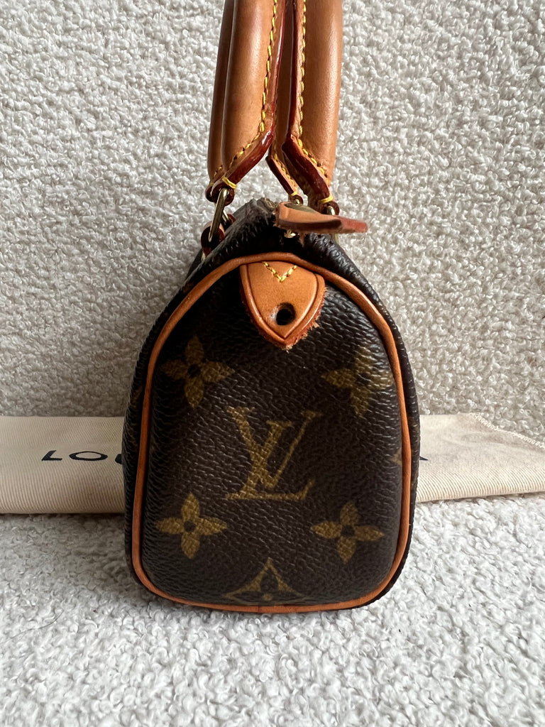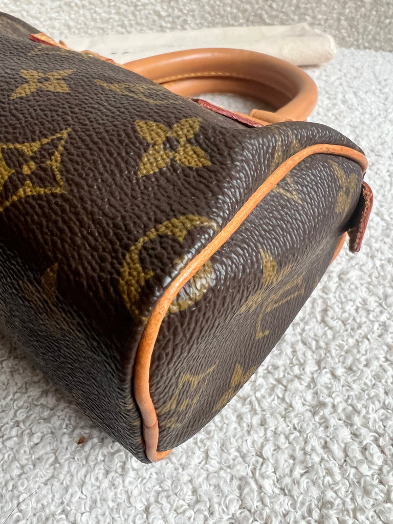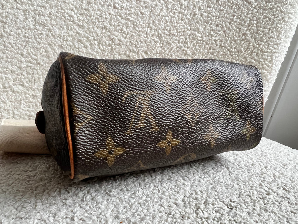 Louis Vuitton Vintage Nano Speedy in Monogram canvas with gold hardware. The classic speedy style is one of Louis Vuitton's most popular styles and the nano is highly sought after and hard to get a hold of as this version is no longer available at LV. This cute mini bag holds the essentials, keys, makeup etc. Can be carried in hand. Fits a standard sized iPhone. 1999 year.