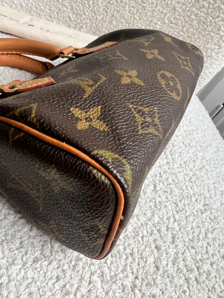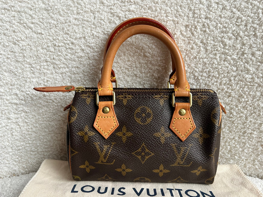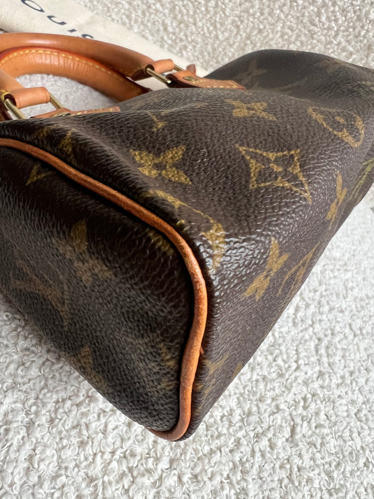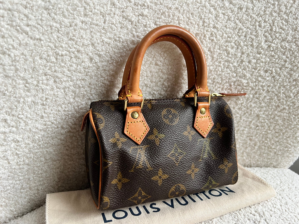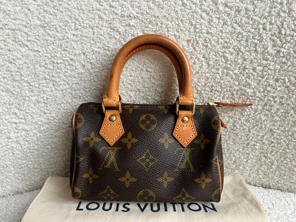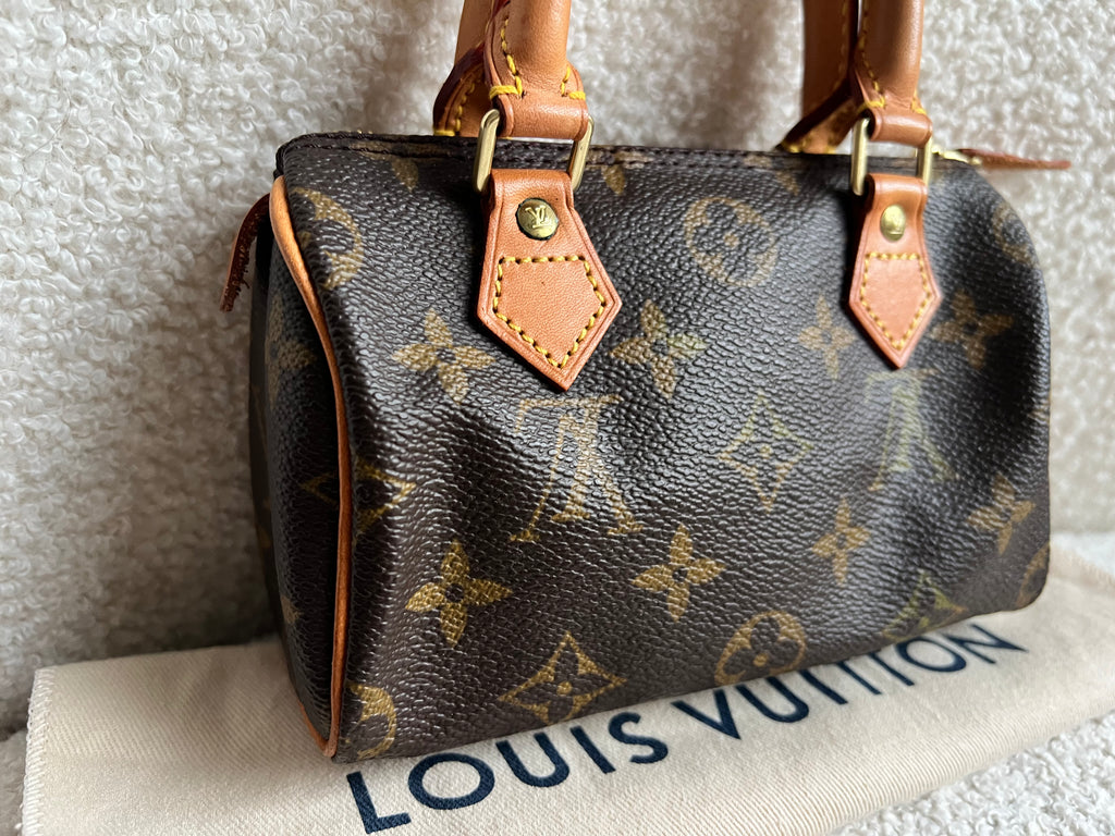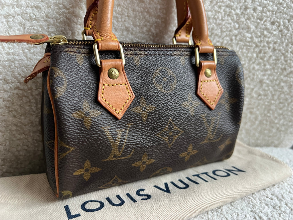 Louis Vuitton Vintage Nano Speedy in Monogram canvas with gold hardware. The classic speedy style is one of Louis Vuitton's most popular styles and the nano is highly sought after and hard to get a hold of as this version is no longer available at LV. This cute mini bag holds the essentials, keys, makeup etc. Can be carried in hand. Fits a standard sized iPhone. 1999 year.