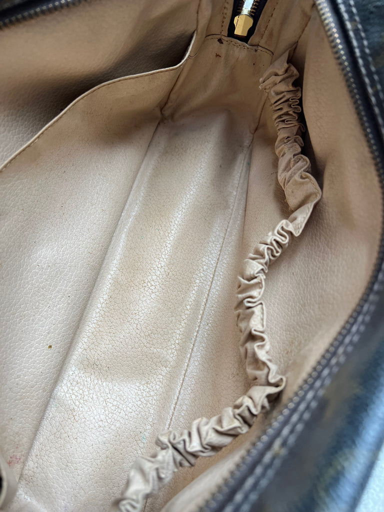 Exterior: Good vintage condition with general wear. Some scuffing to corners and small split to the canvas along the top.