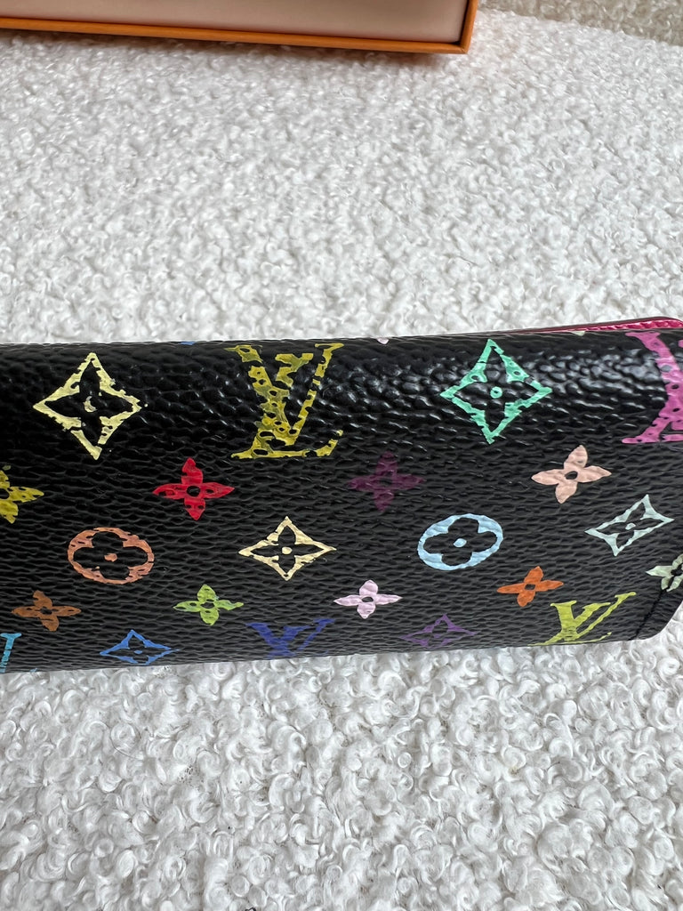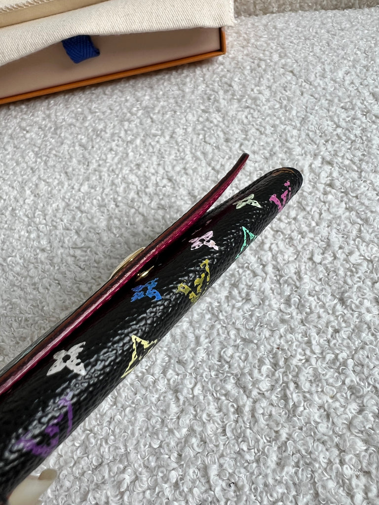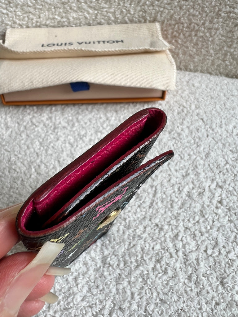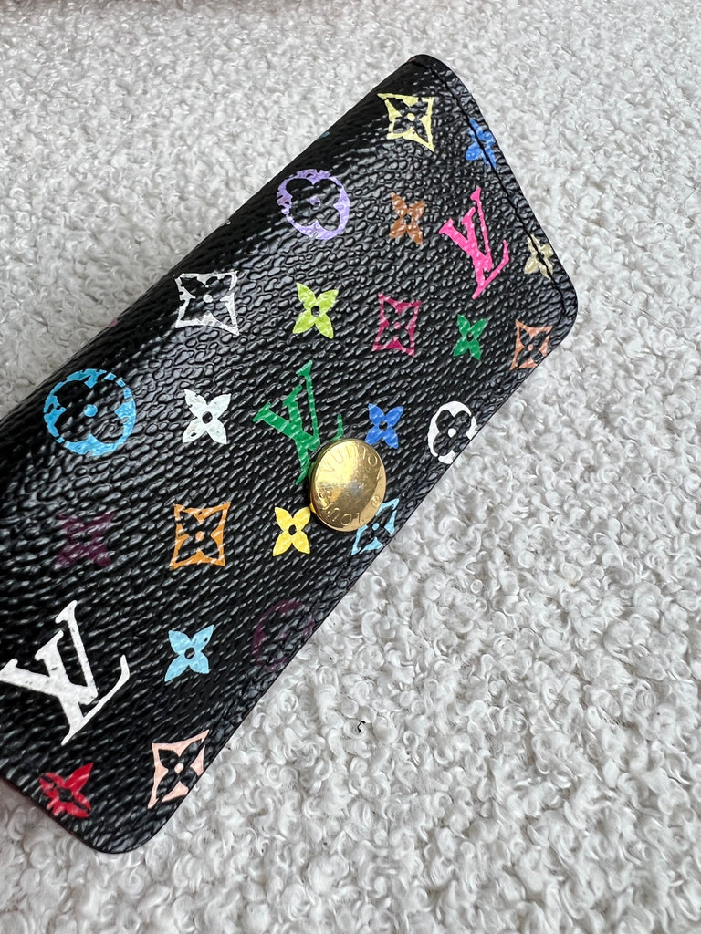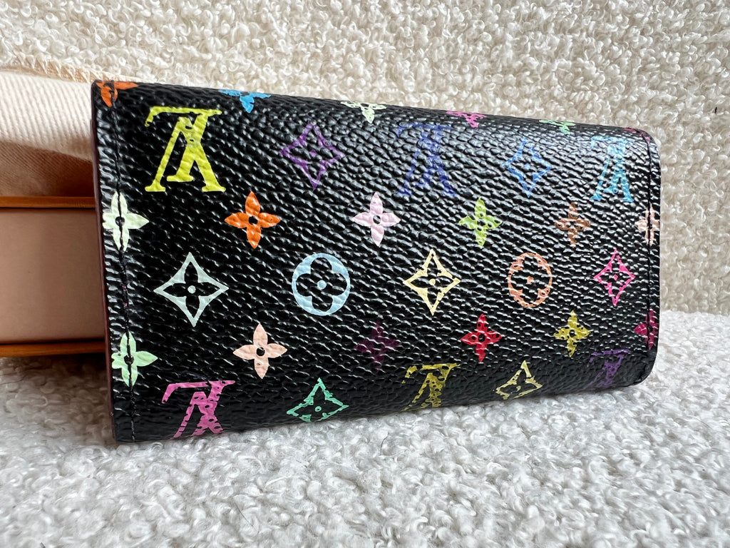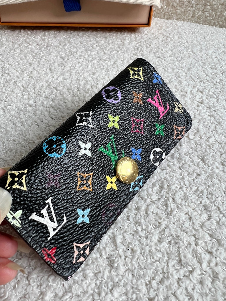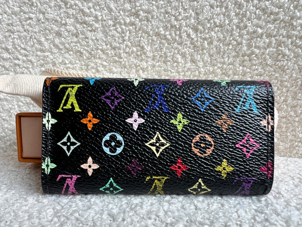 Louis Vuitton 4 Key Holder in Black Multicolore monogram canvas. Part of the vintage Tekashi Murakami range, this vintage piece doesn’t come up often preloved. This compact case is a natural accessory for handbag or briefcase and holds 4 keys.