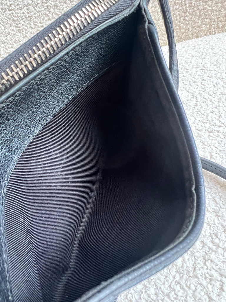 Exterior: Good condition with some general wear. Slight fading to the leather and small marks to the leather and corners. General wear to inking and wear to the inking on the strap.