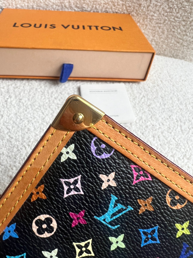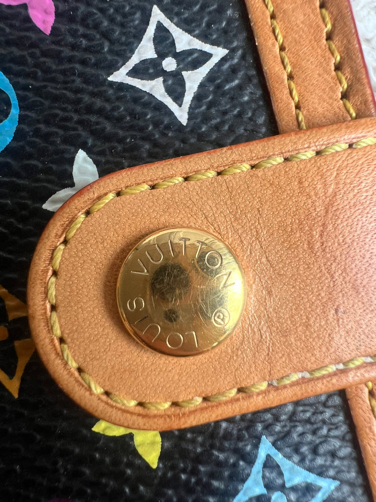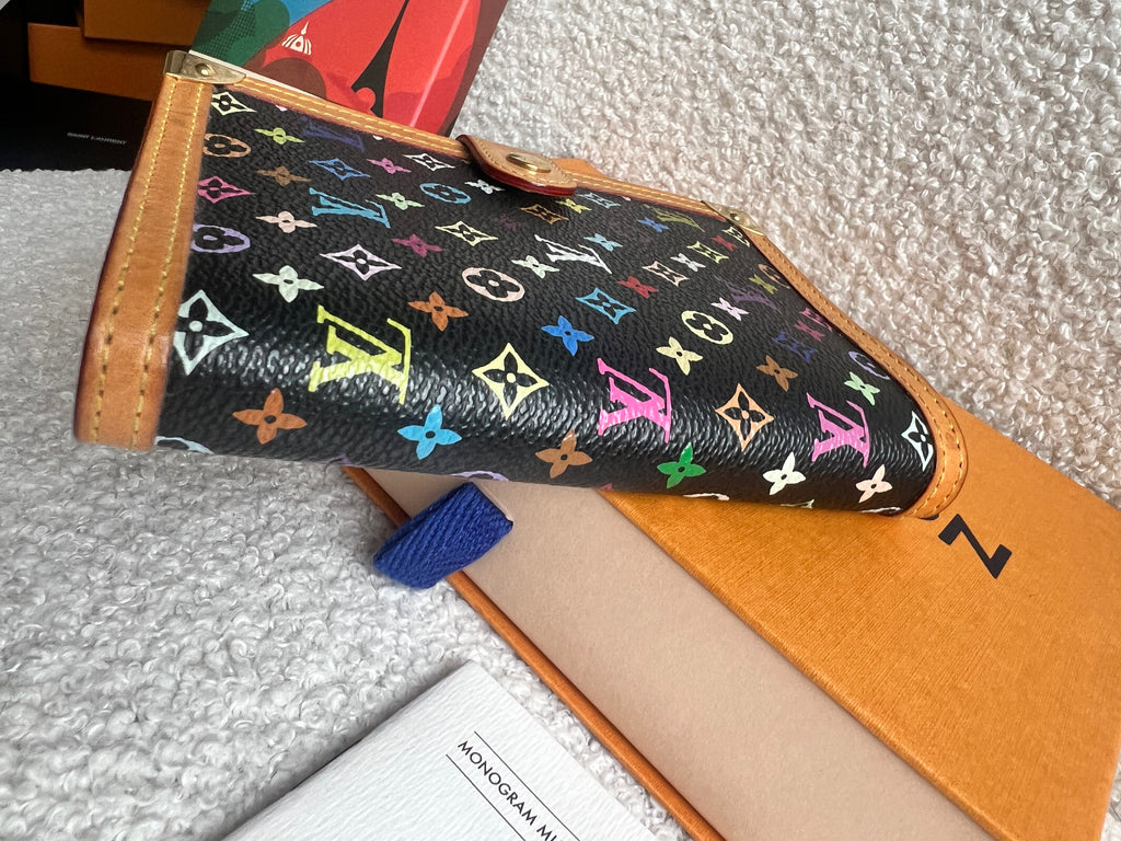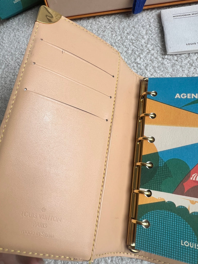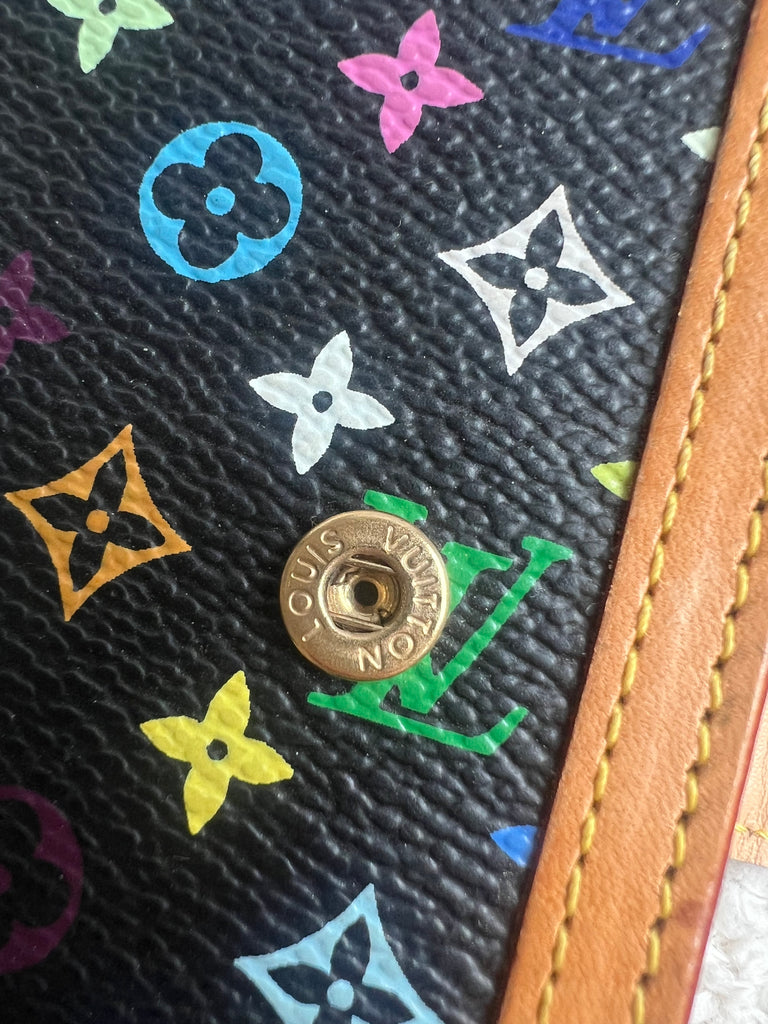 Louis Vuitton Agenda PM in Black Multicolore Monogram Canvas with gold hardware. This is part of the popular Takashi Murakami collaboration. This agenda cover comes with some non branded 2023 insets. Comes with 2025 inserts. More refills and inserts can be bought at LV.