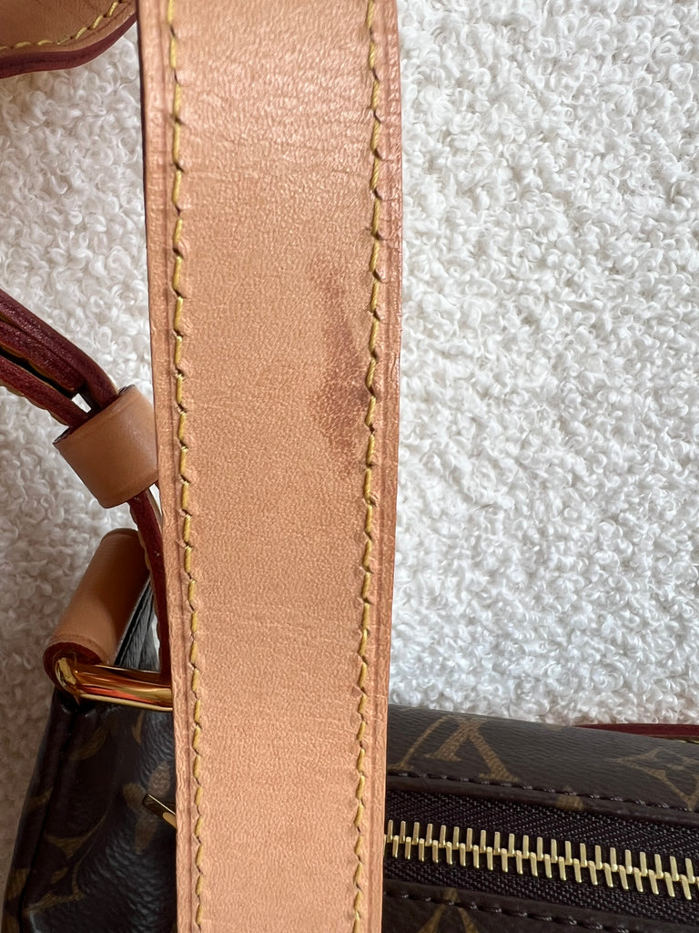Exterior: Overall very good to excellent condition with light signs of wear. Minor marks to the leather tab and small marks to the strap. Slight creasing to the canvas.