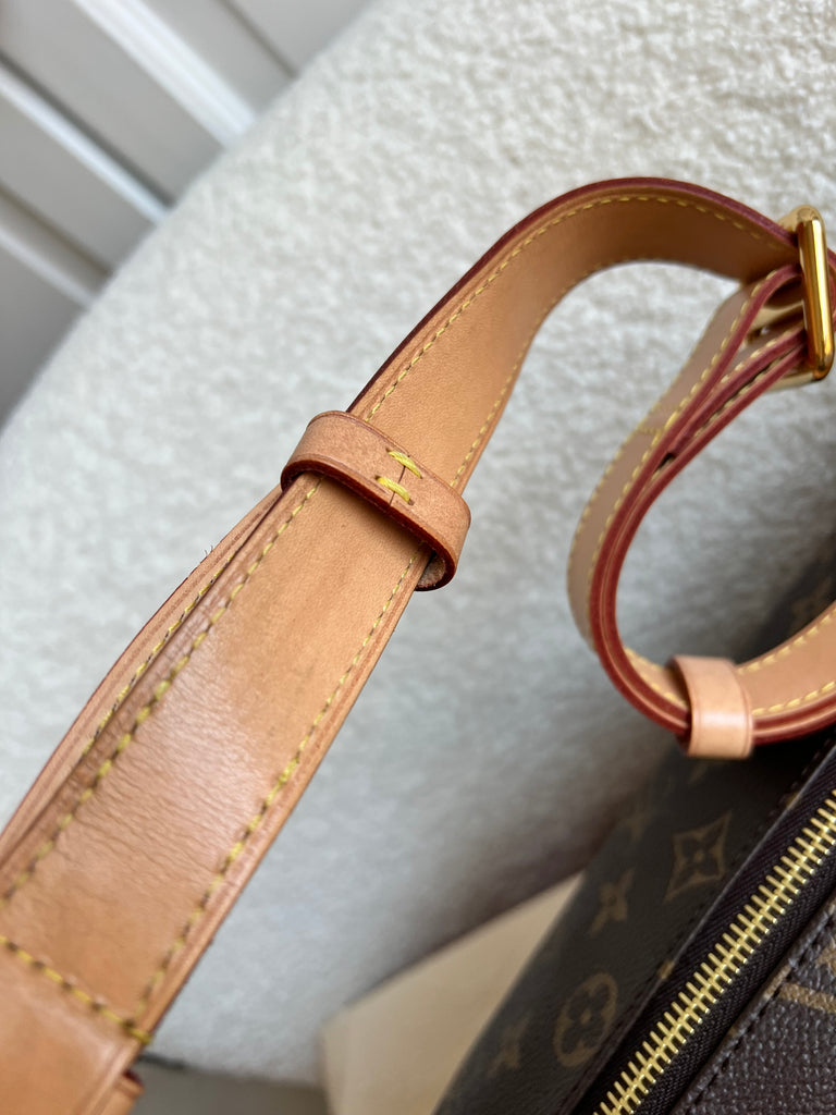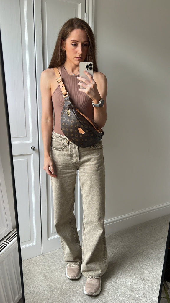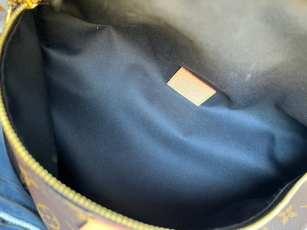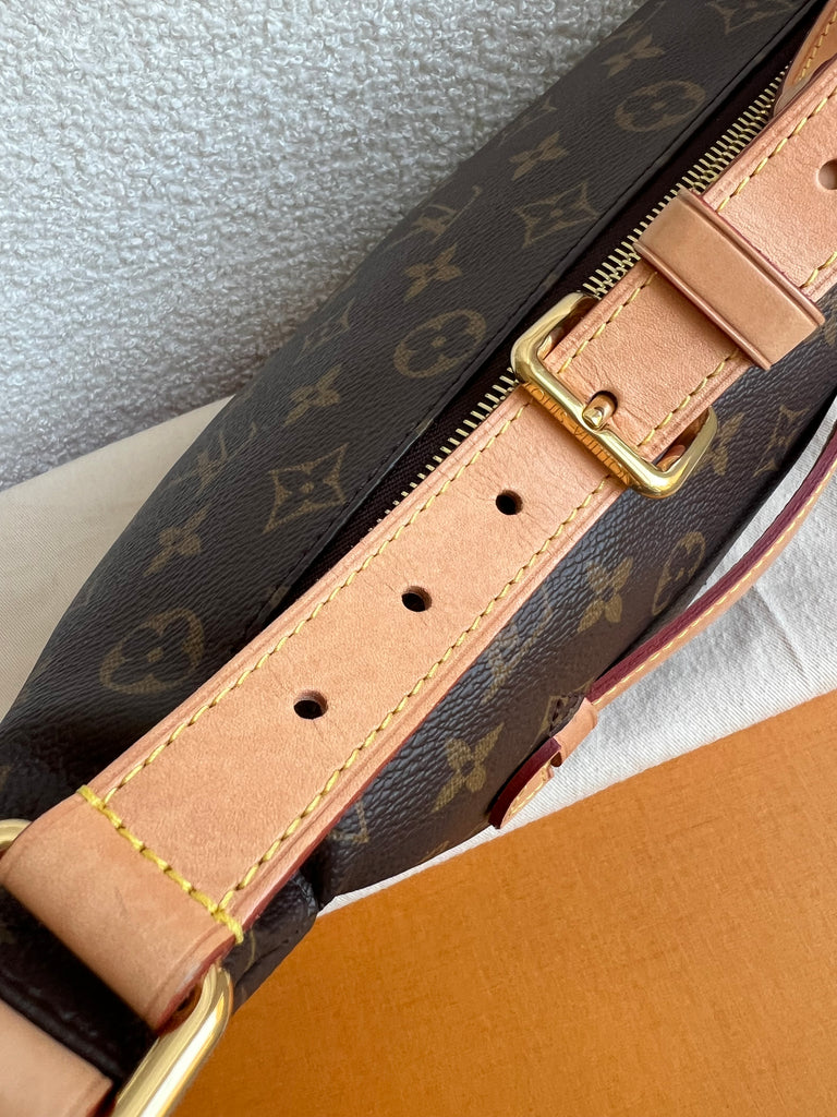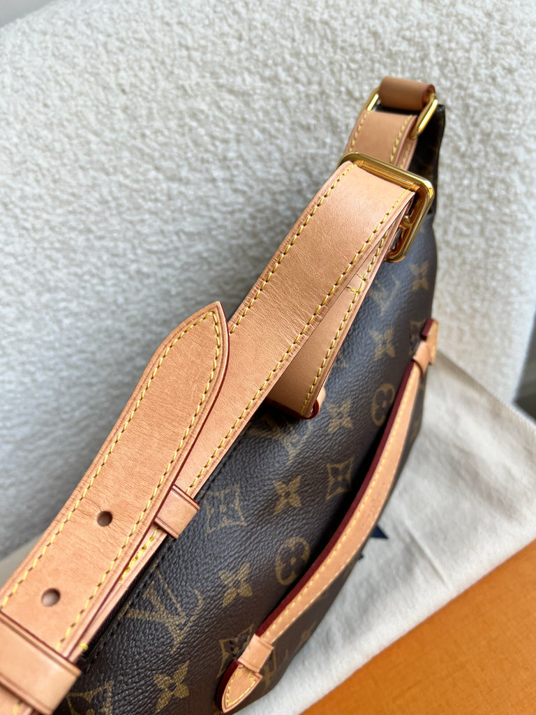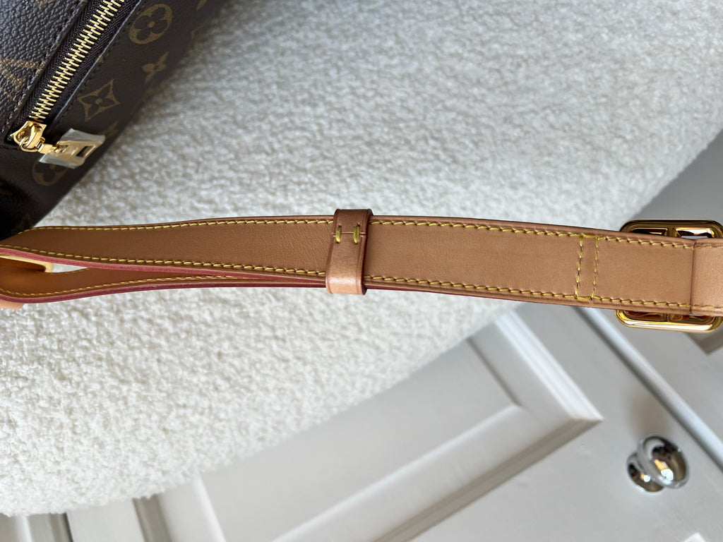 Louis Vuitton Bum Bag in Canvas Monogram with gold hardware. Fashioned in classic Monogram canvas and signed with a “Louis Vuitton Paris” leather patch, this uber-functional bumbag transforms sportwear into the very definition of casual chic. Wear it as a belt bag, cross-body or over the shoulder for a jauntier look. This highly sought after style is no longer available at LV and sells at premium usually. 2020 year.