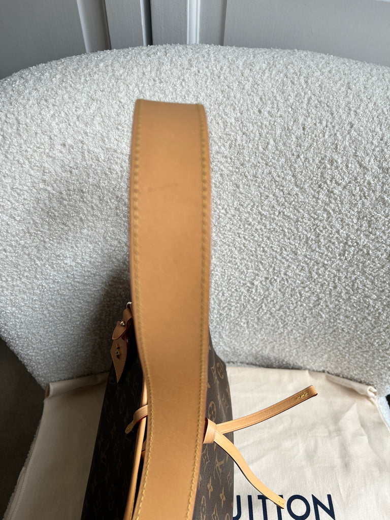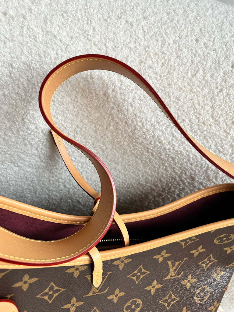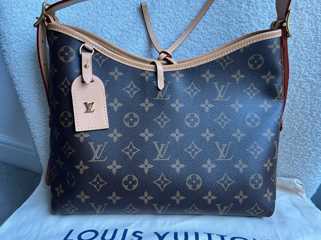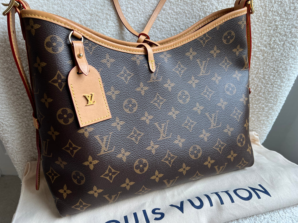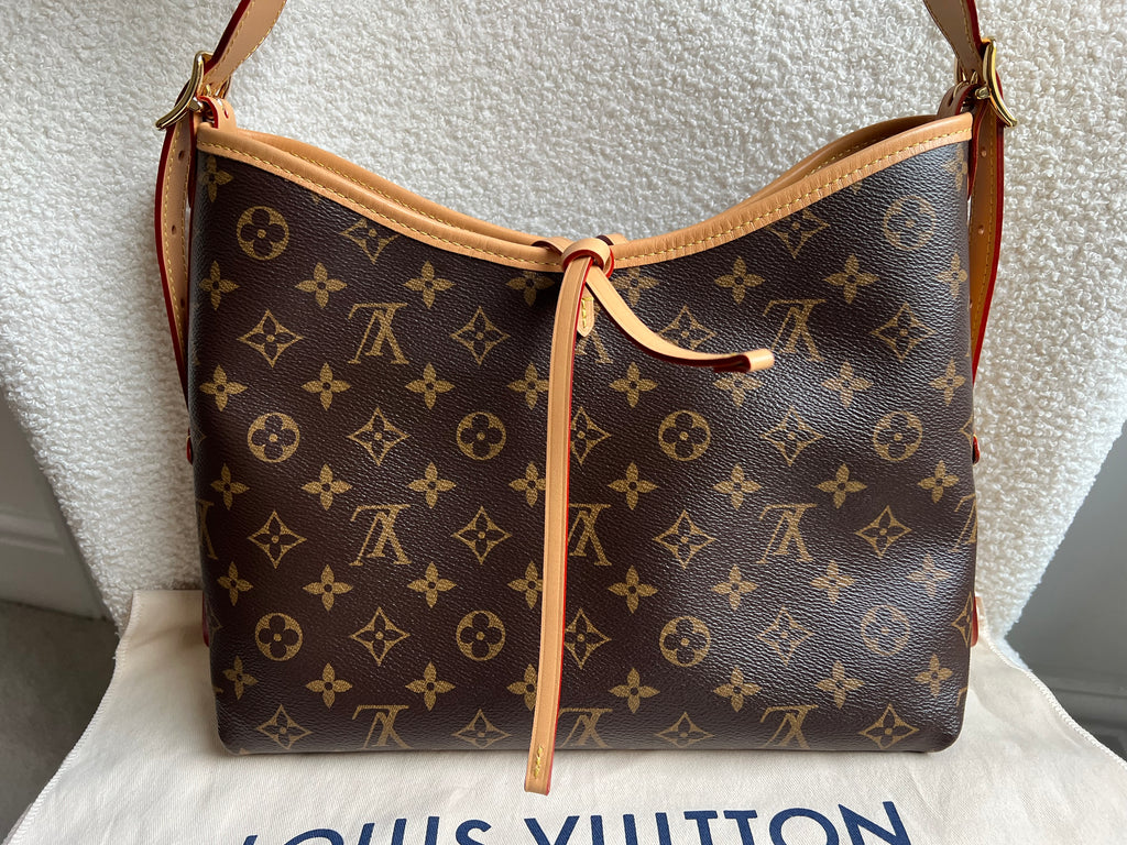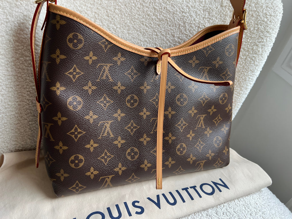 Louis Vuitton Carryall PM in Monogram Canvas with gold hardware. The CarryAll PM bag was introduced last season in Monogram canvas. With its understated design, secure closure and smart interior (which includes a removable zipped pouch), this body-friendly hobo style is ideal for daily wear. The adjustable strap can be configured for comfortable hand, shoulder or cross-body carry. Comes with a removable zipped pouch. Rarely comes up preloved.