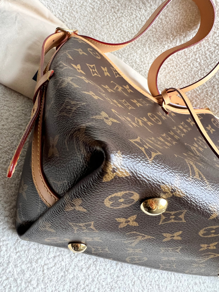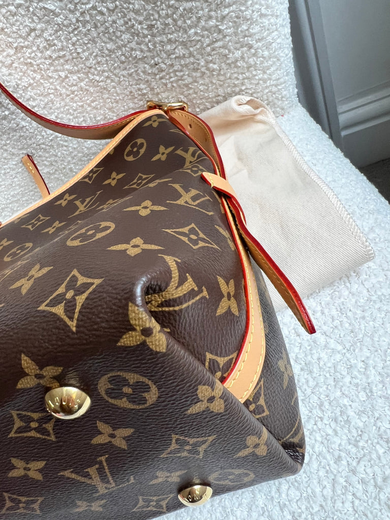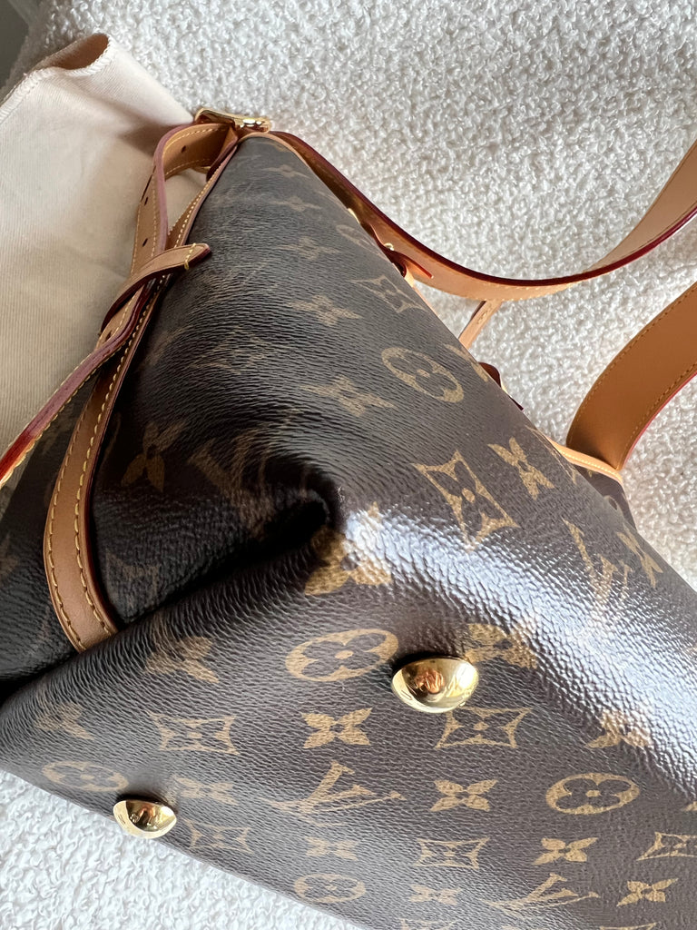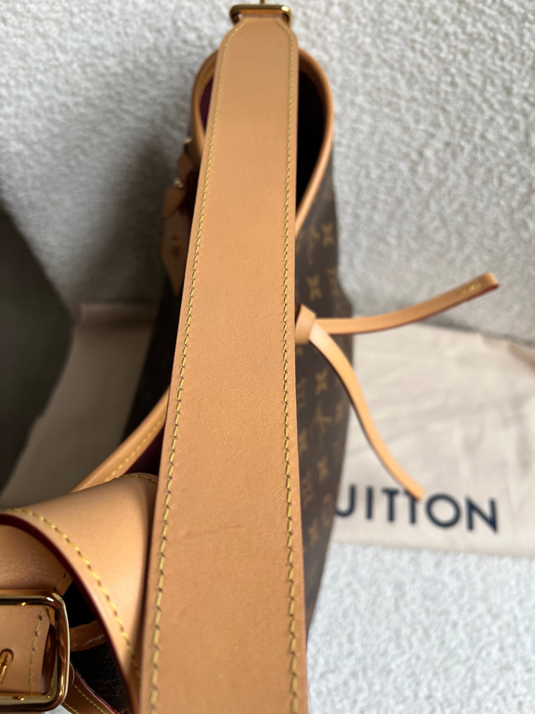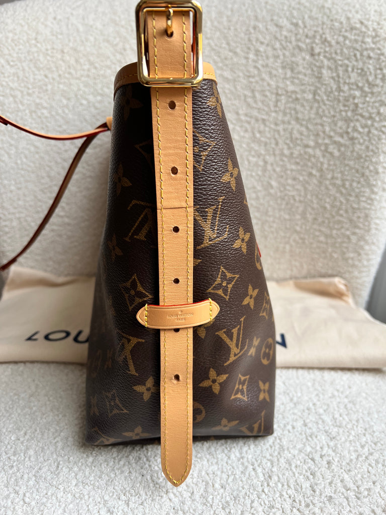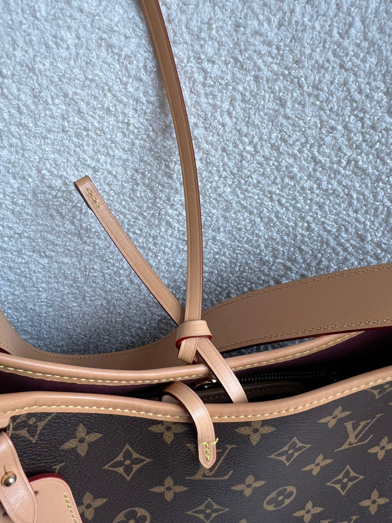 Louis Vuitton Carryall PM in Monogram Canvas with gold hardware. The CarryAll PM bag was introduced last season in Monogram canvas. With its understated design, secure closure and smart interior (which includes a removable zipped pouch), this body-friendly hobo style is ideal for daily wear. The adjustable strap can be configured for comfortable hand, shoulder or cross-body carry. Comes with a removable zipped pouch. Rarely comes up preloved.
