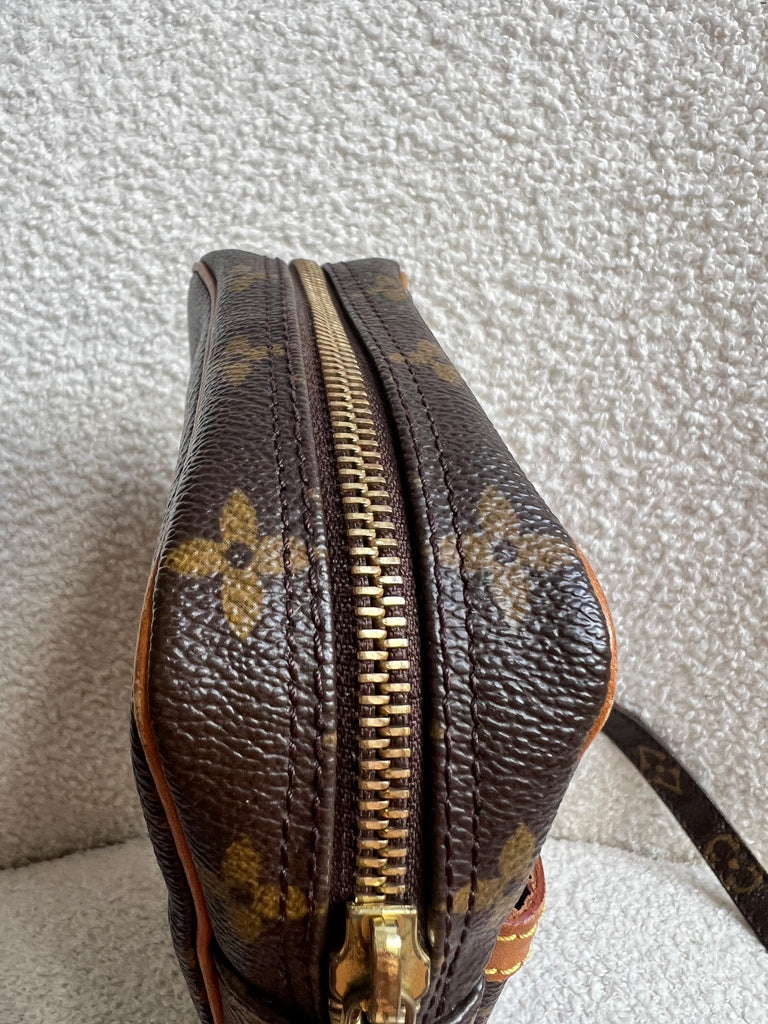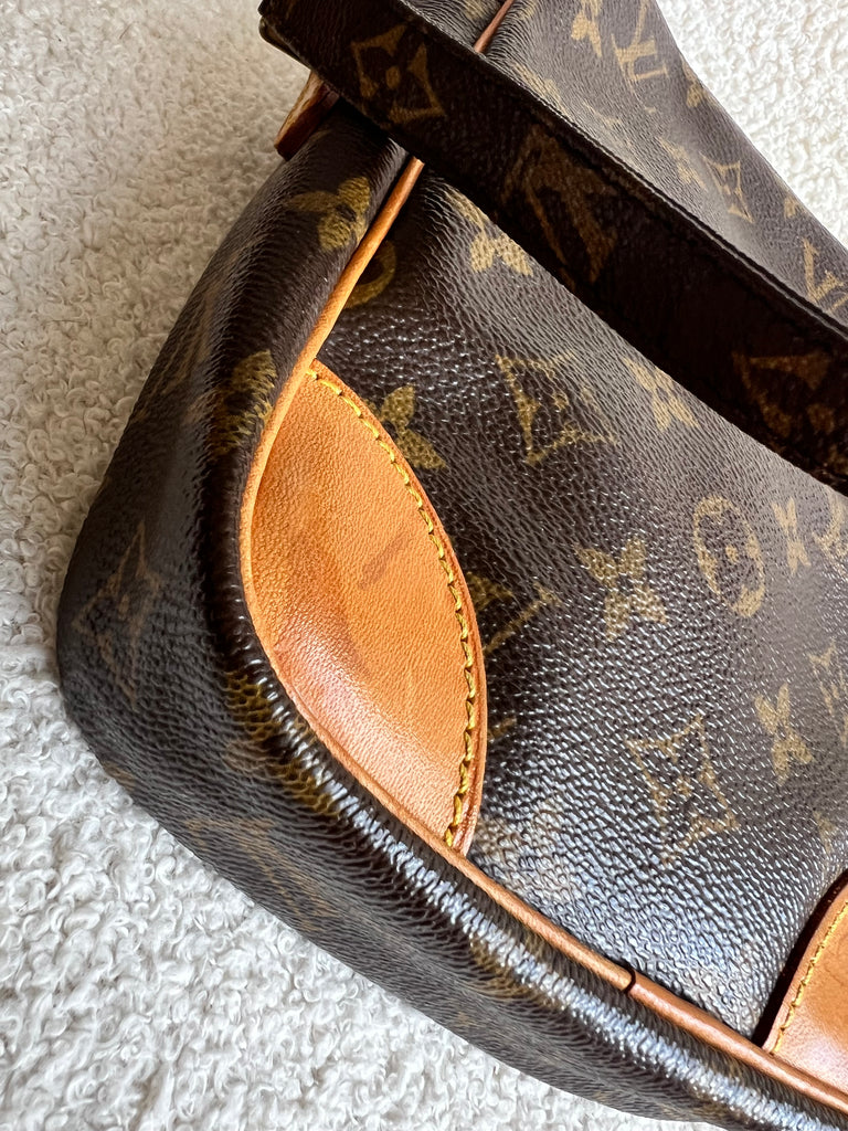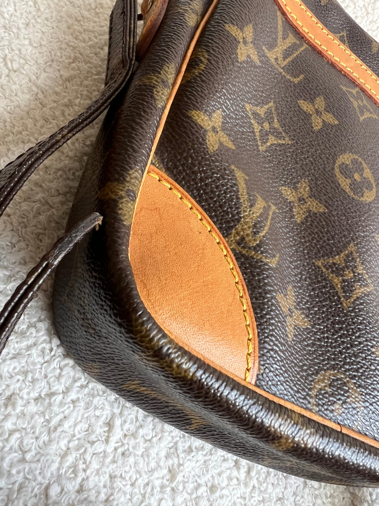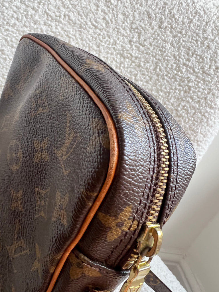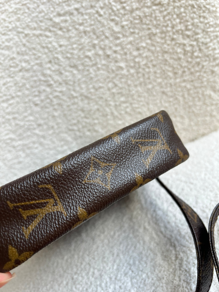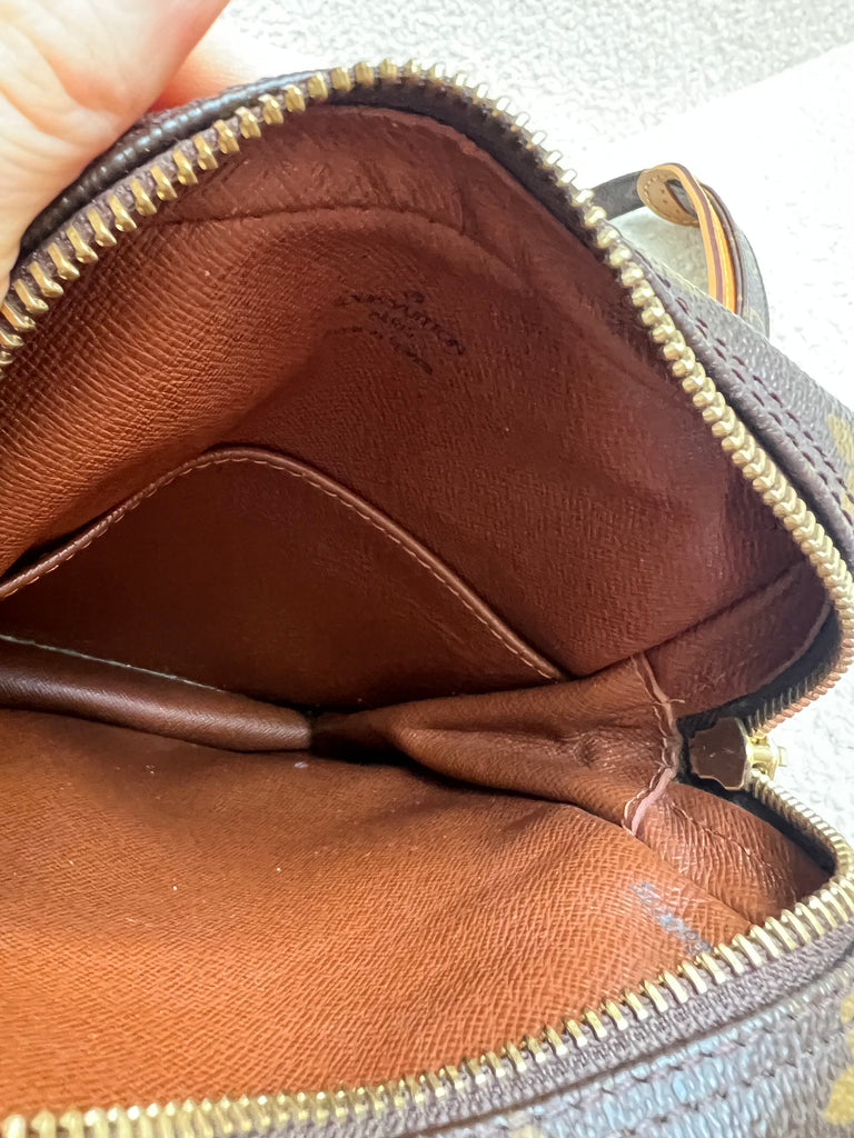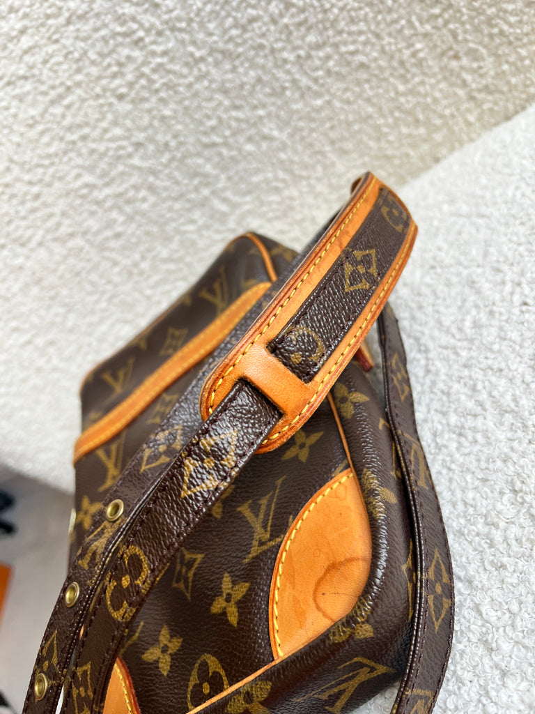 Louis Vuitton Danube in monogram canvas. In the iconic monogram canvas, this messenger style crossbody bag is ideal for those who prefer small/mini hands free bags. Now discontinued, a great example of vintage quality LV. Zipper closure. Perfect "starter" designer bag with a lower price tag than some of Louis Vuitton's other models.