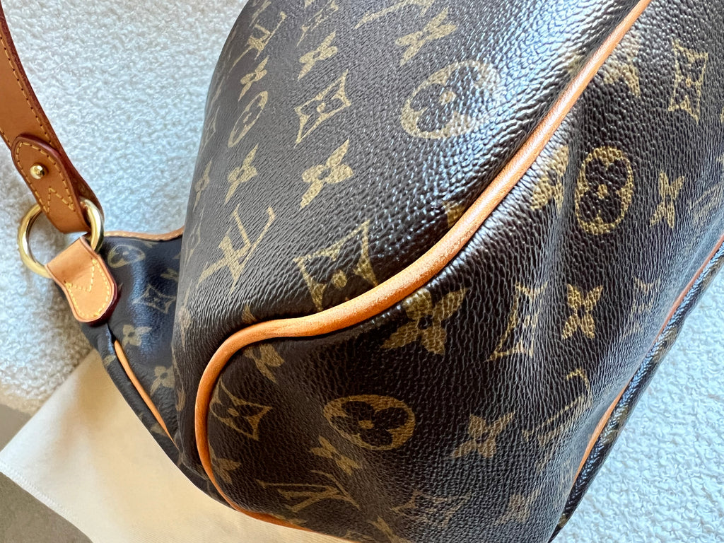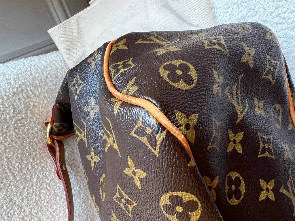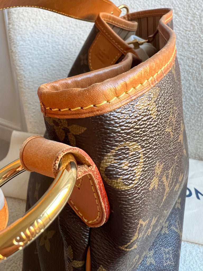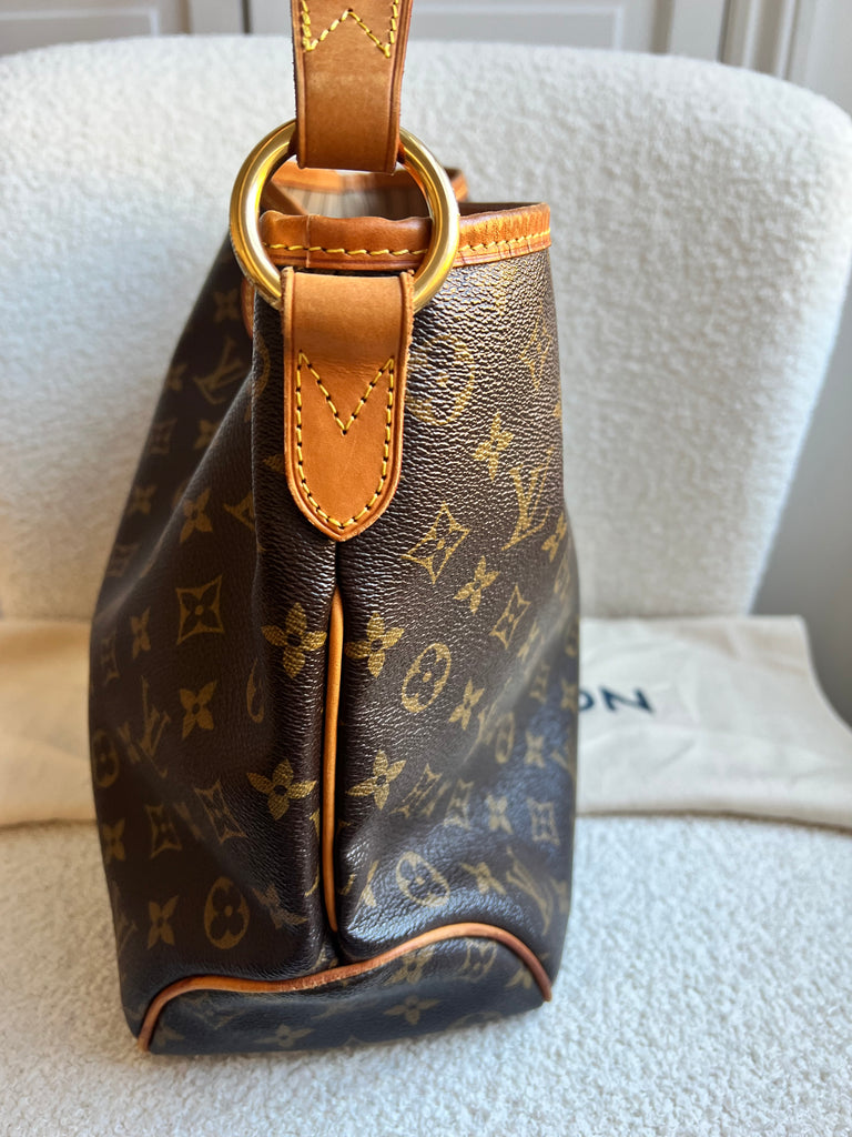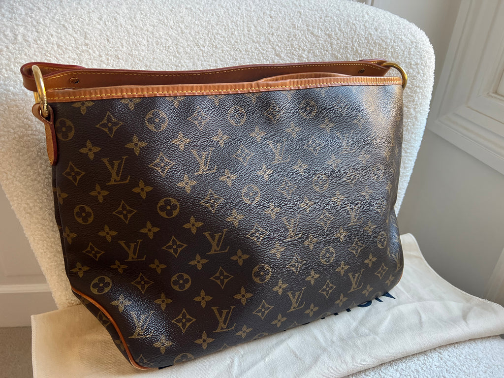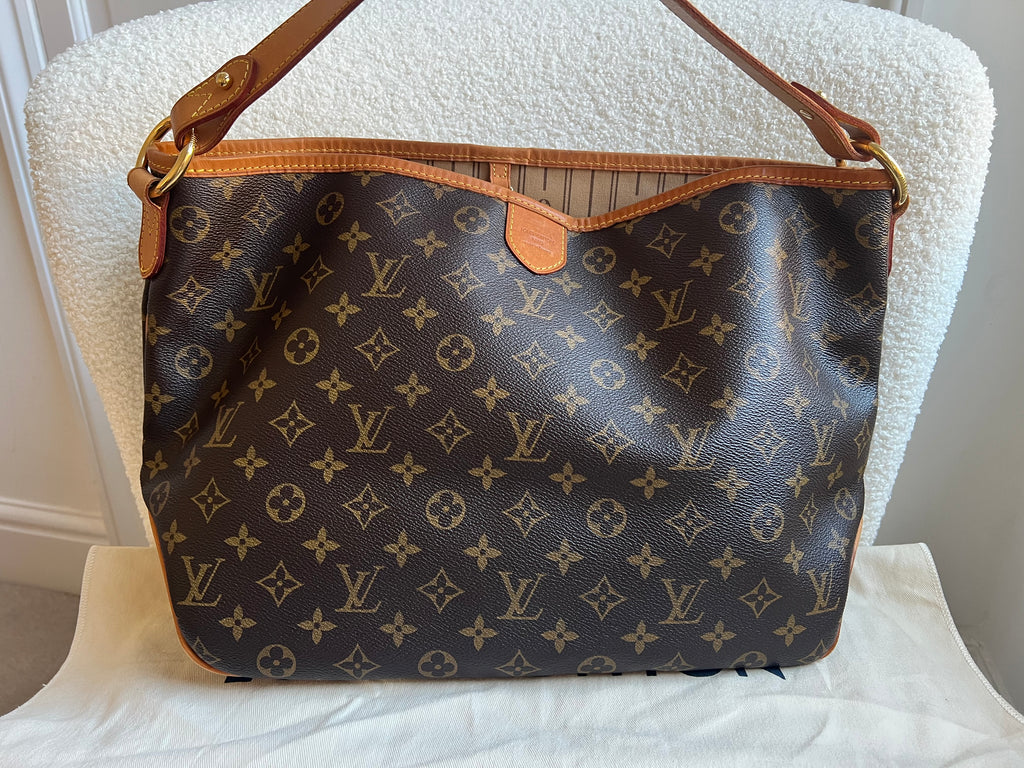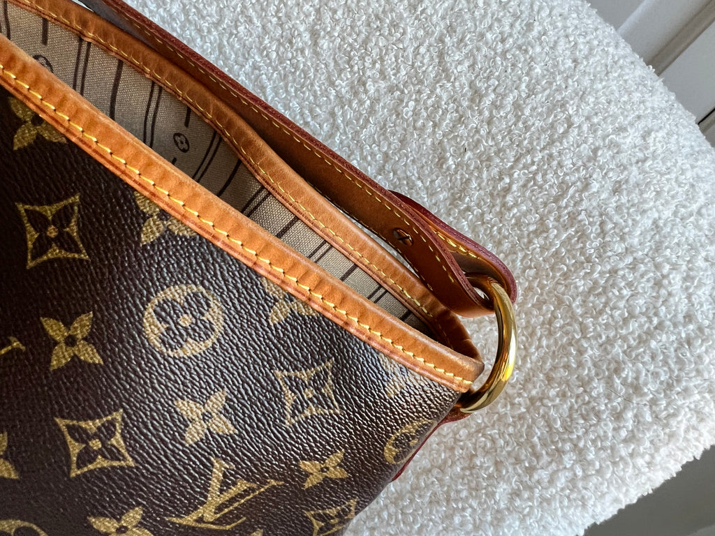 Louis Vuitton Delightful PM in Monogram canvas with gold hardware. The Delightful PM is an easy to wear, lightweight shoulder hobo and is a classic, practical bag. The smallest size of the delightful but is still reasonably roomy inside making it ideal for a day to day or work bag. Can be carried in the crook of the arm or comfortably over the shoulder. Now discontinued, the Delightful is a great alternative to the Neverfull with less flimsy handles and slightly lower price tag.