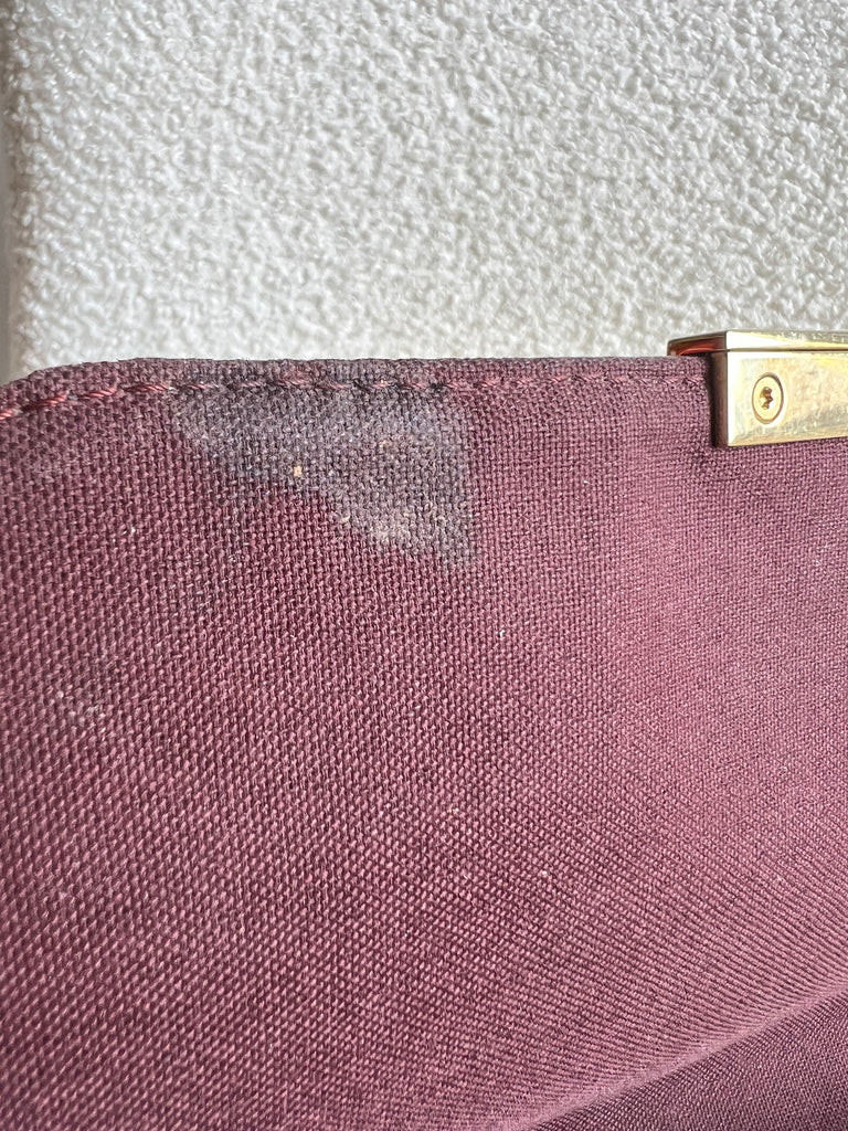 Exterior: Good condition with some general signs of wear. Small marks to canvas, some general wear to strap.