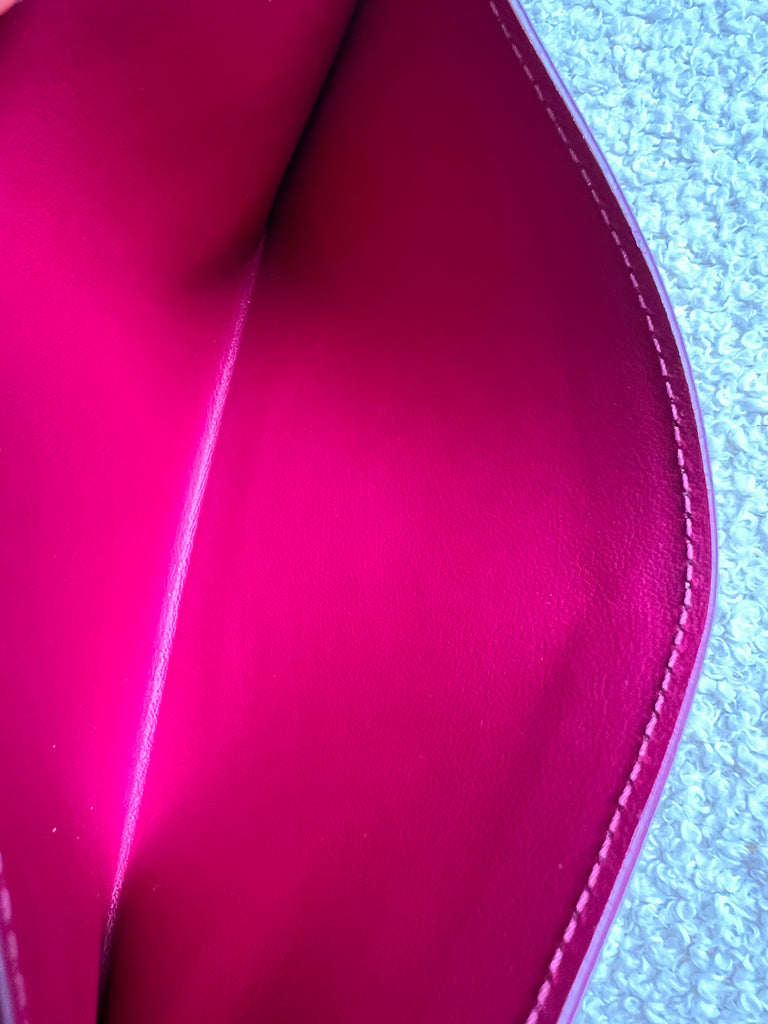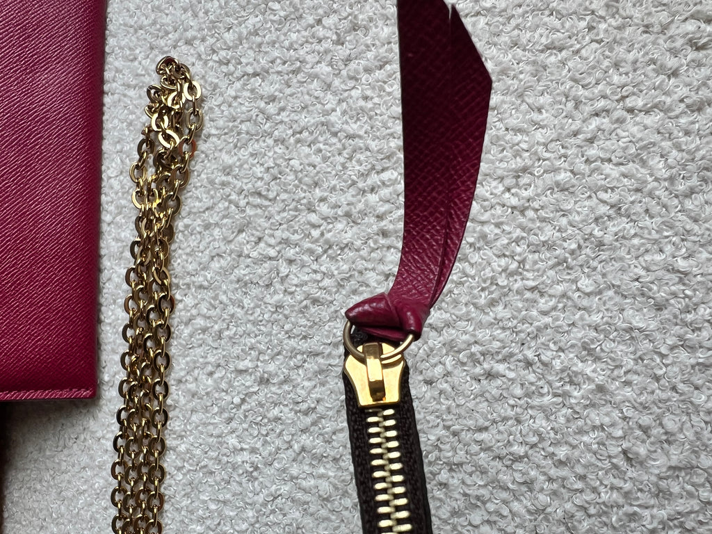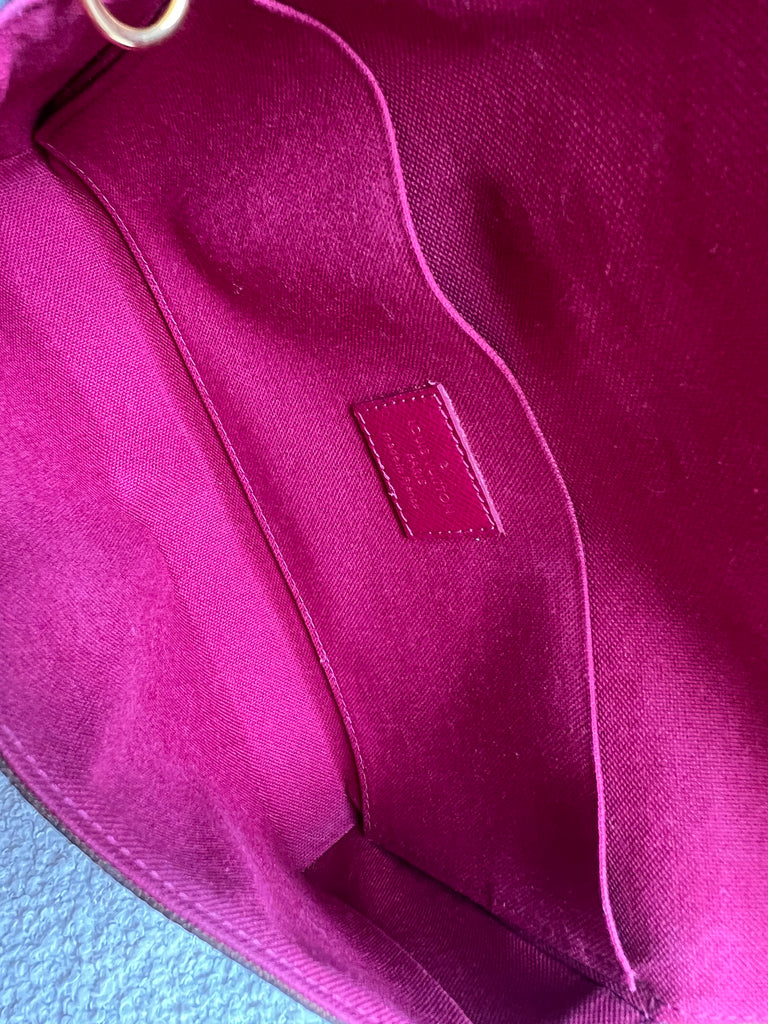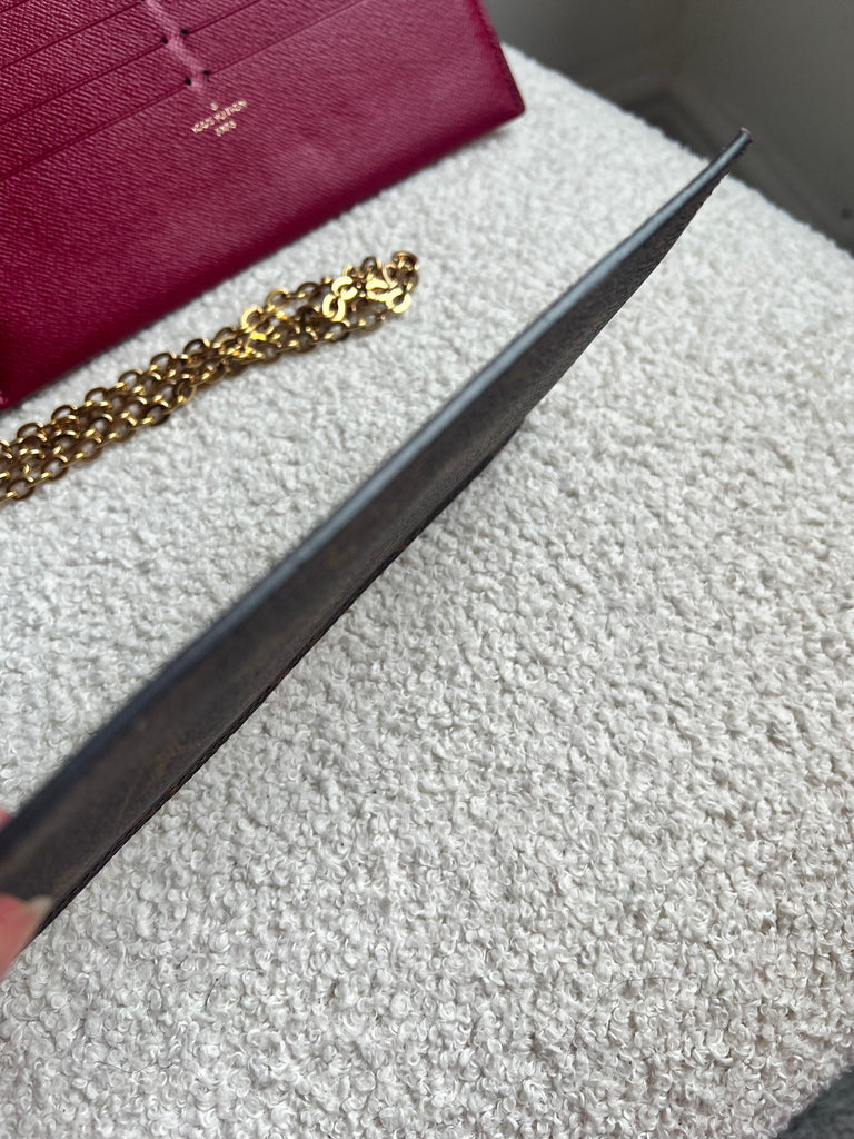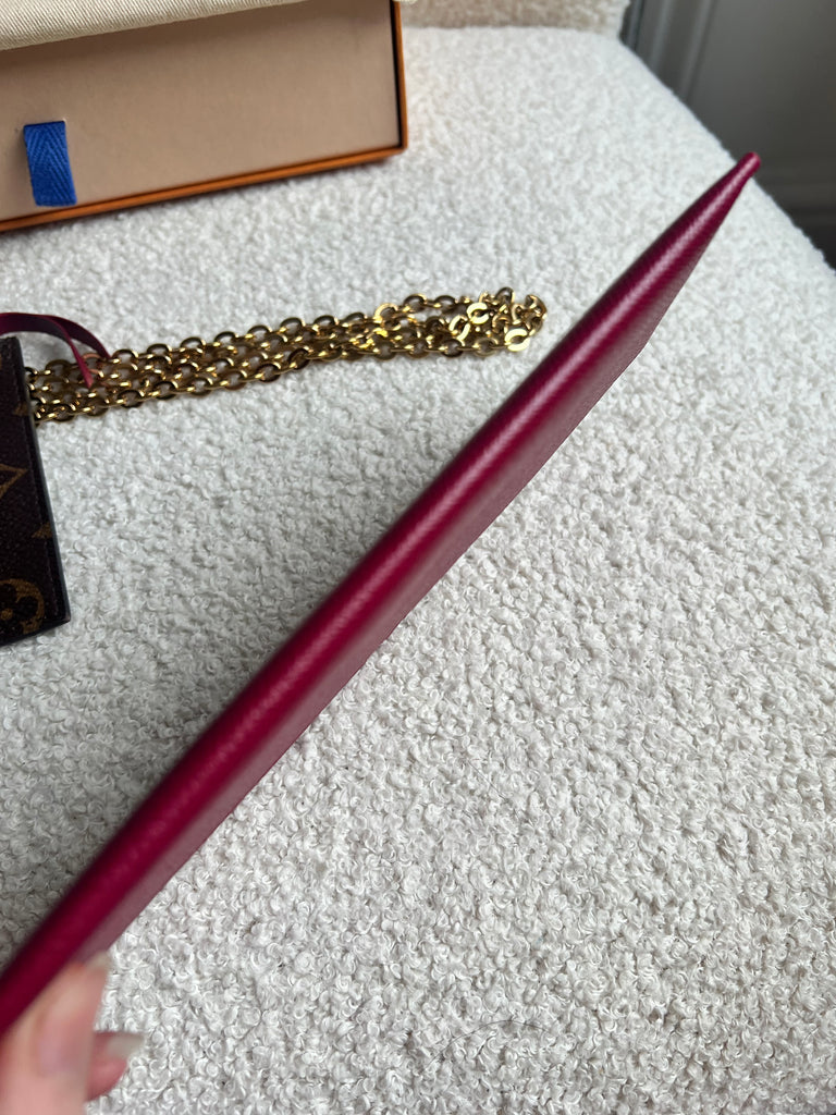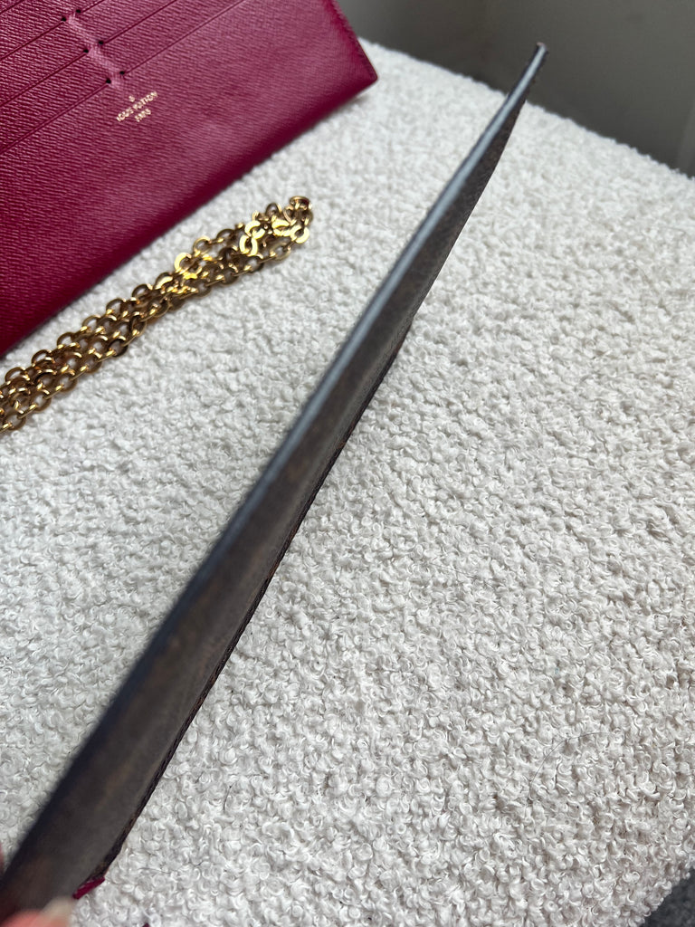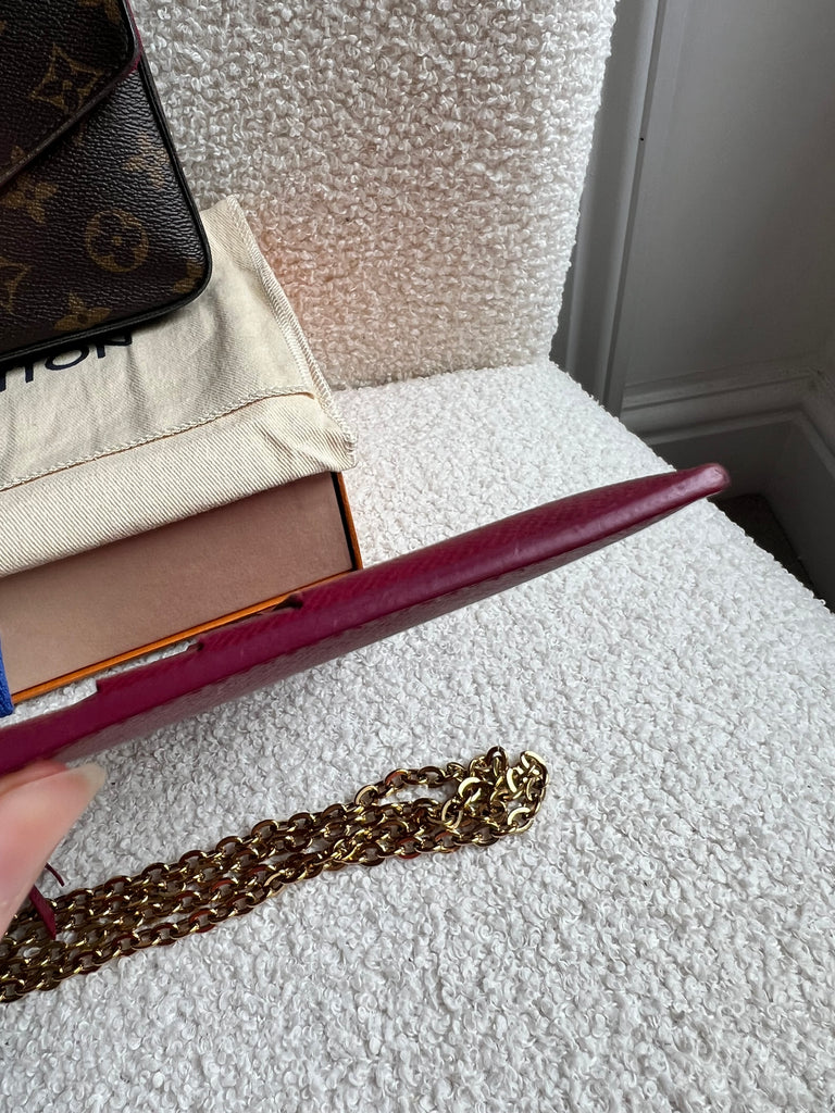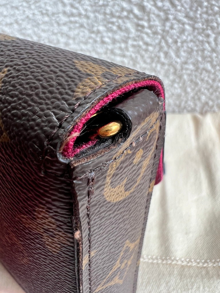 Louis Vuitton Felicie Pochette in Monogram canvas with fuschia pink lining. This stylish pochette is perfect to hold the essentials on a night out or evening function. Can be used for day to day wear for those who prefer smaller bags. Can be worn cross body using the removable chain or carried in hand as a clutch, or carried inside a larger bag. This highly sought after style comes with two removable inserts.