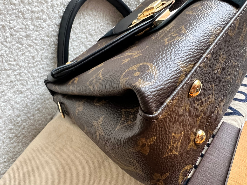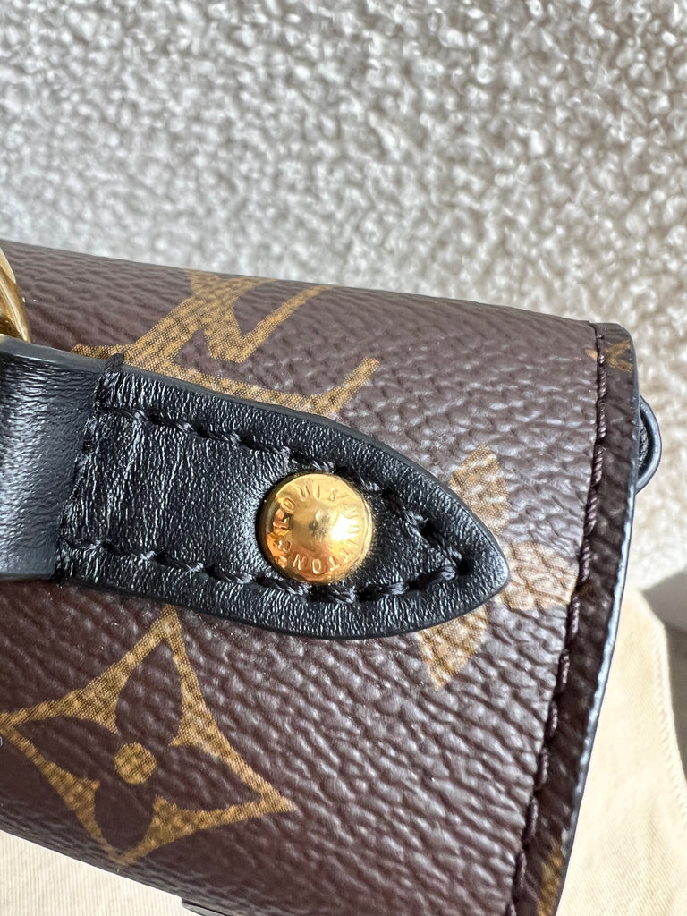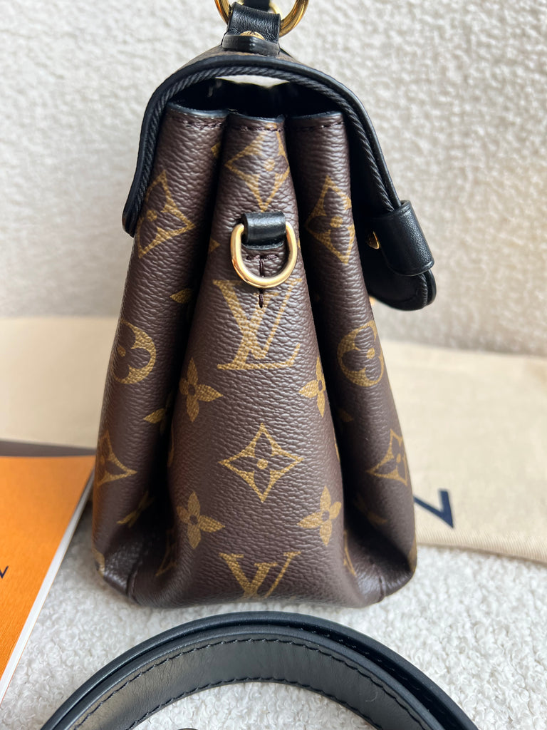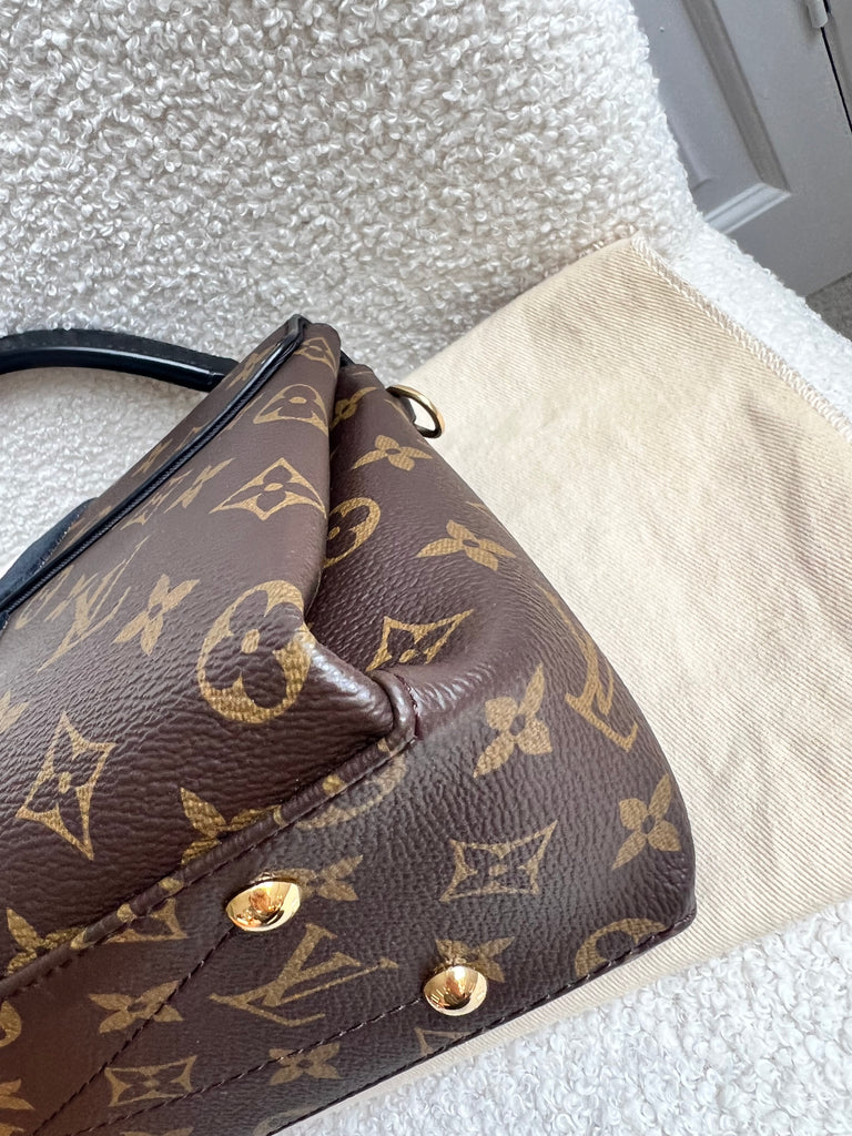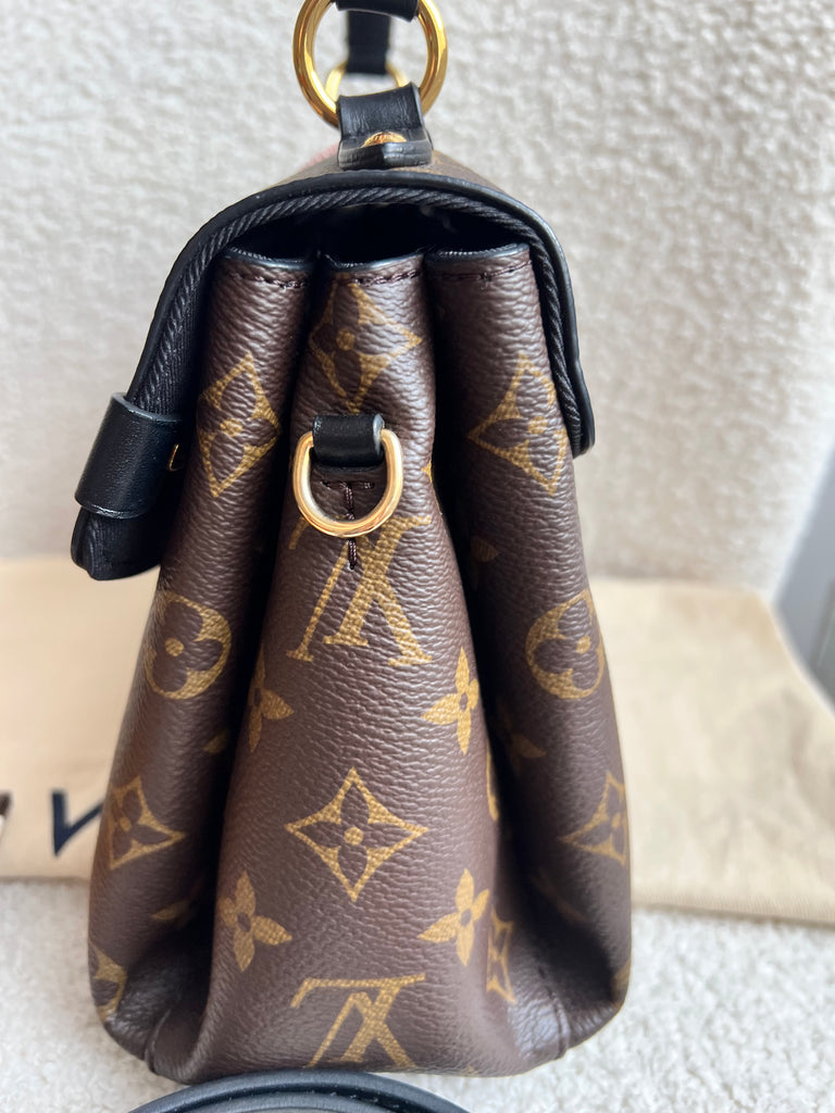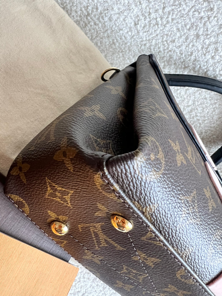 Louis Vuitton Georges BB bag in Monogram and black and pink stripe. Named after Georges Vuitton, this style was released in 2018 and is no longer available at LV. This top handled bag offers multiple carry options - by hand, on the crook of the arm, or over the shoulder using the removable leather strap. Compact and structured, but reasonably roomy in this BB size. Ideal day to day bag which holds a reasonable amount inside. 2019 year.