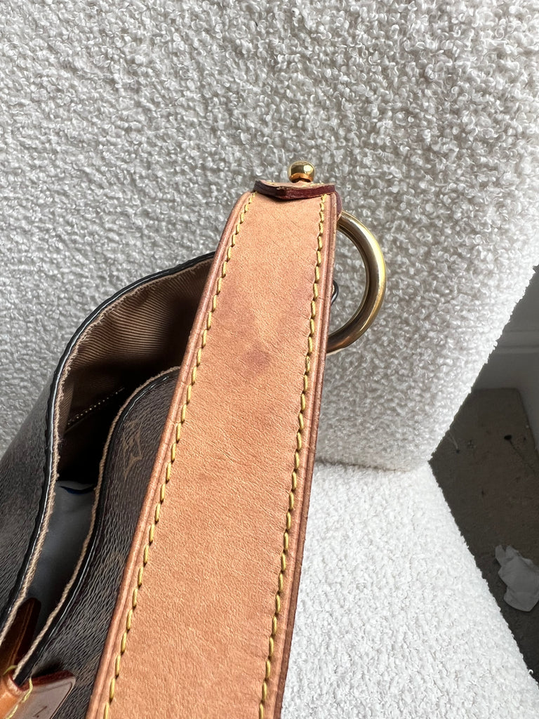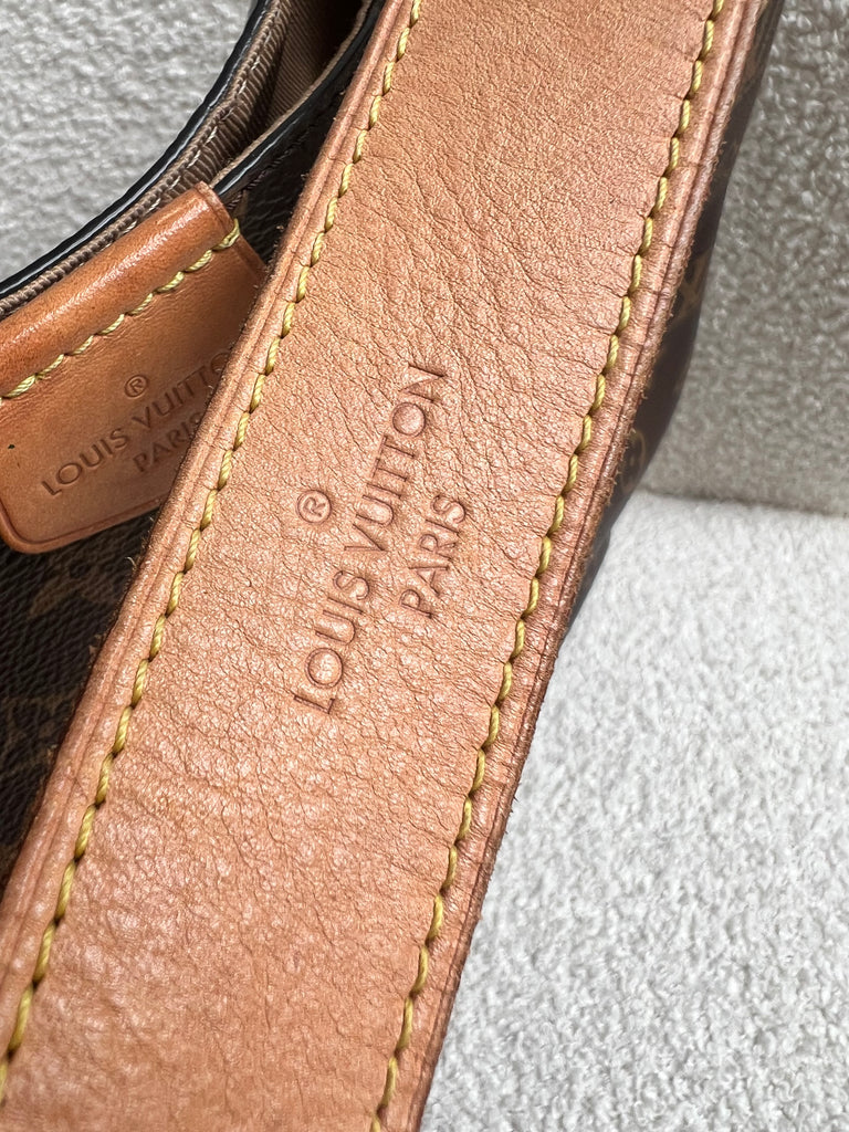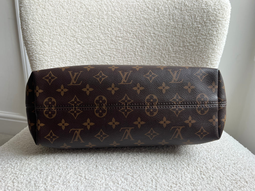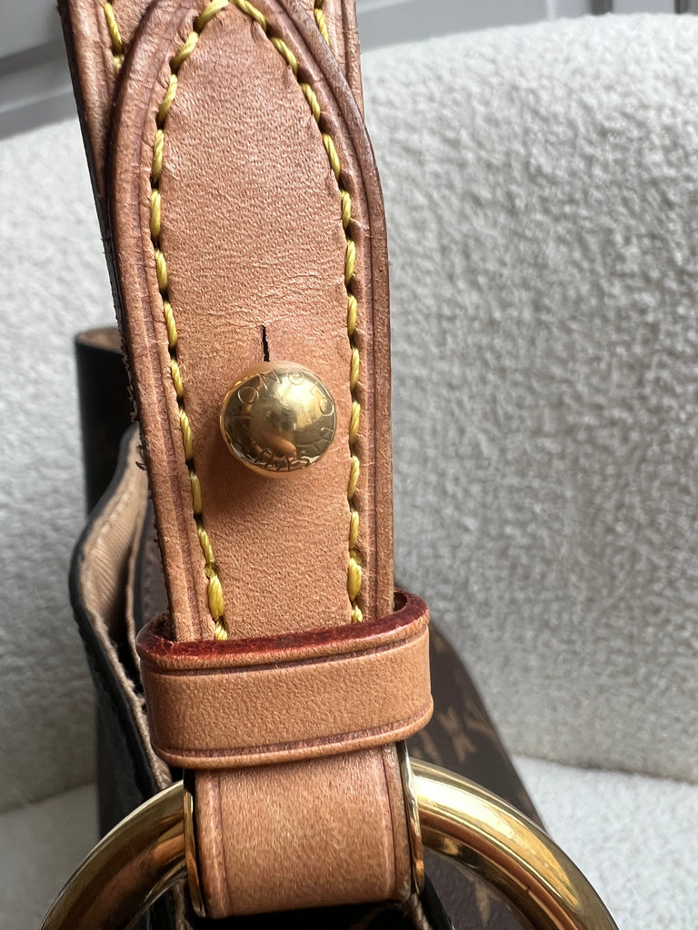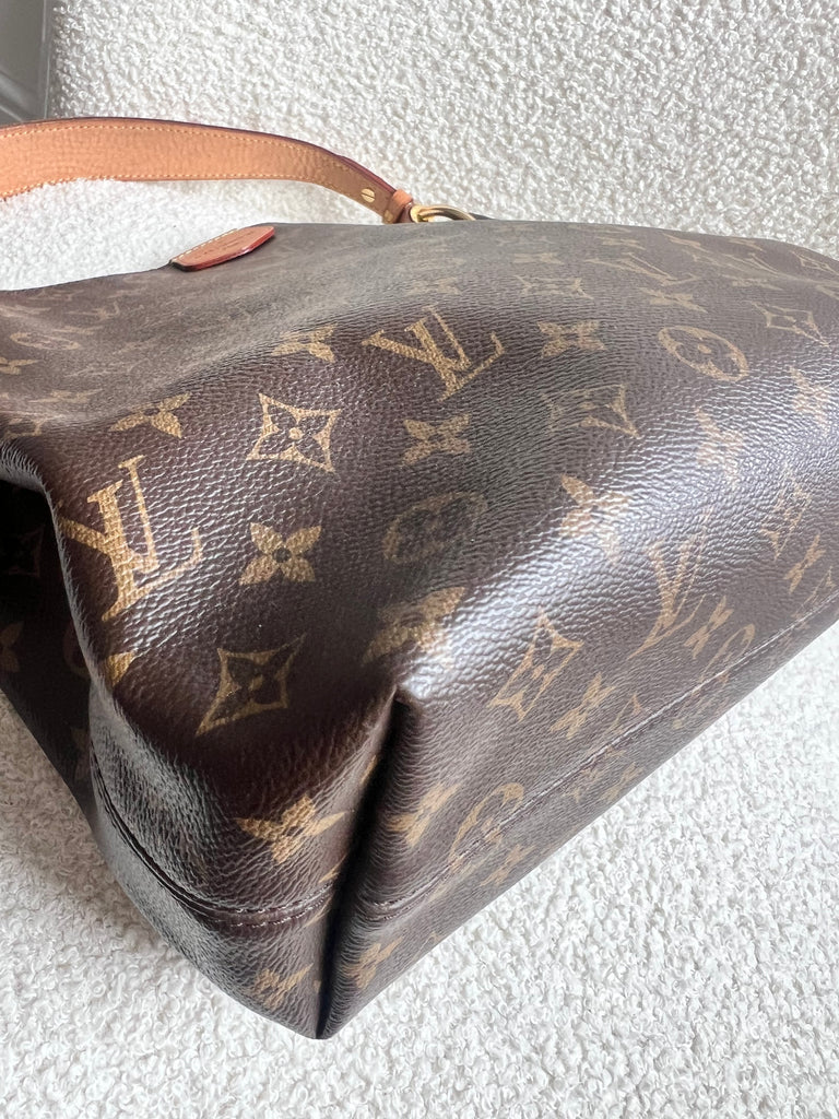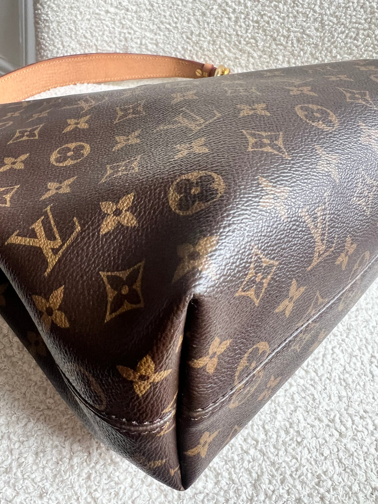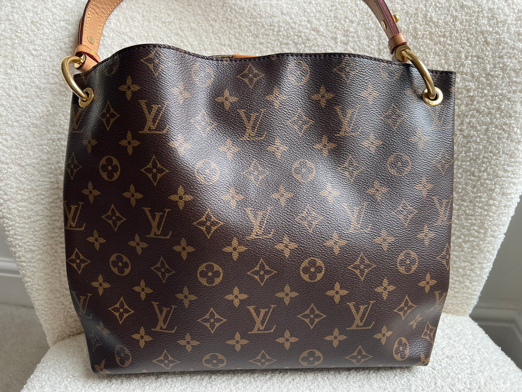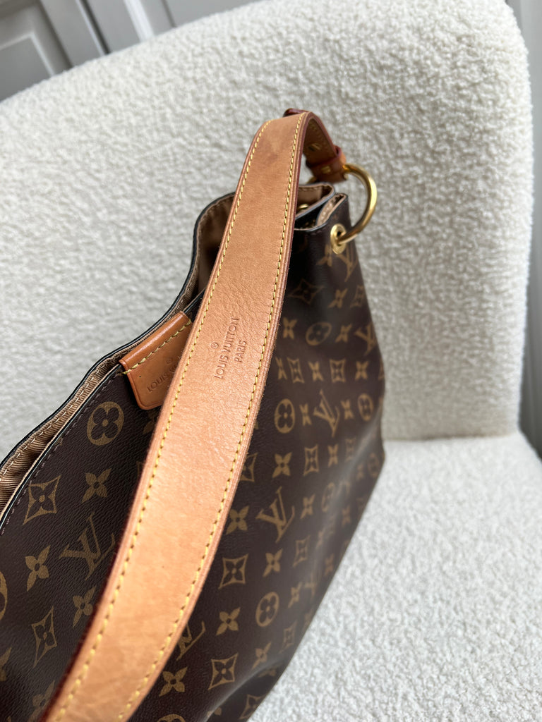 Louis Vuitton Gracefull PM in Monogram canvas with gold hardware. This classic Monogram hobo style shoulder bag has a slouchy slightly shape and is reasonable in size. Perfect for day to day use as it is also very lightweight for its size. This highly sought after style is often sold out online and in store. Can be worn in the crook of the arm or over the shoulder comfortably using the flat handle. Closure by magnetic tab at the opening.