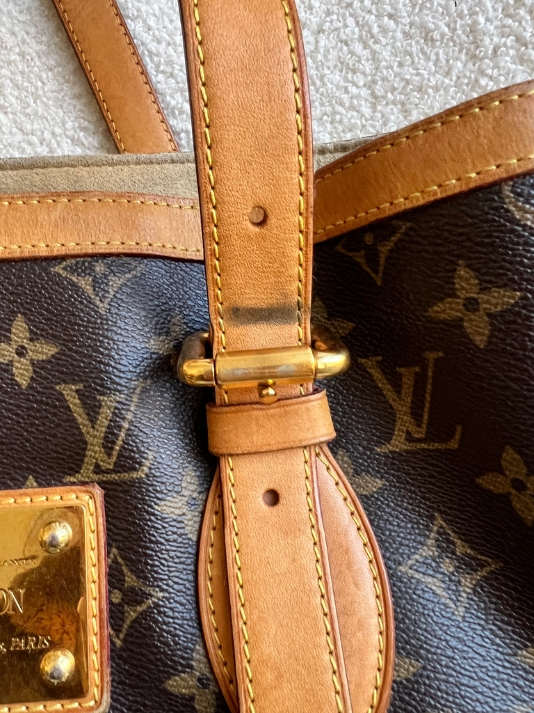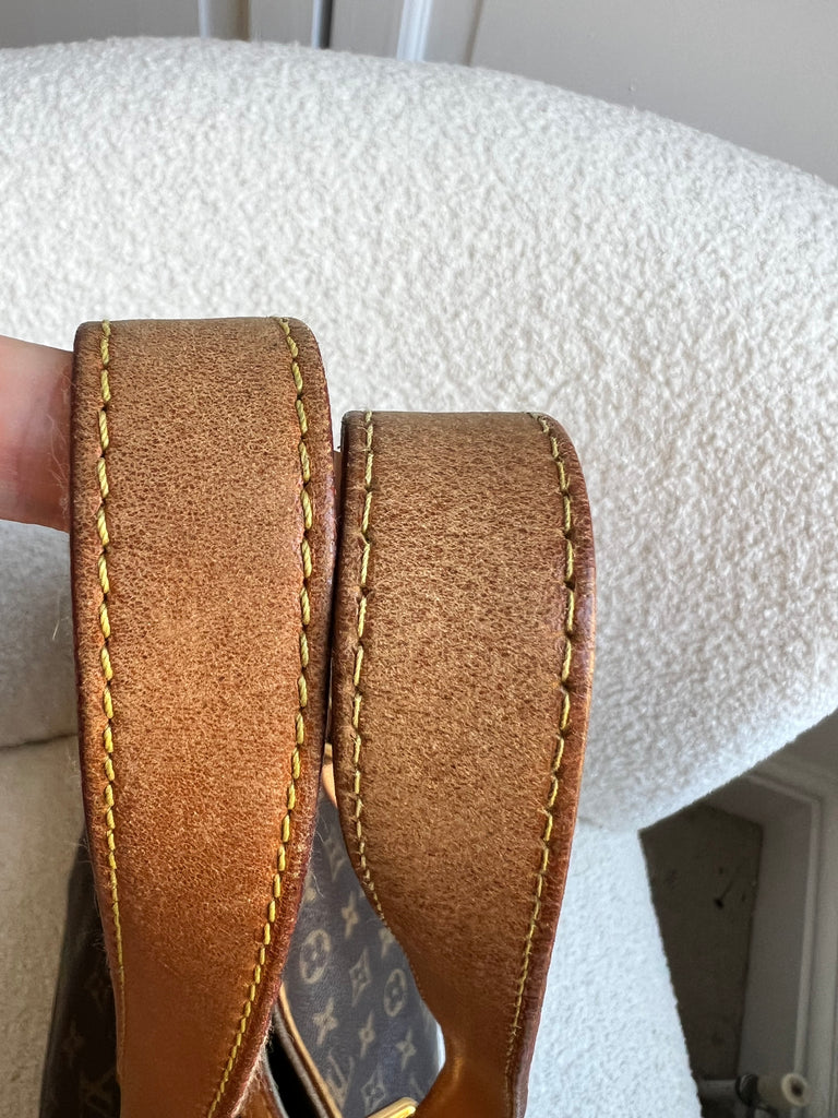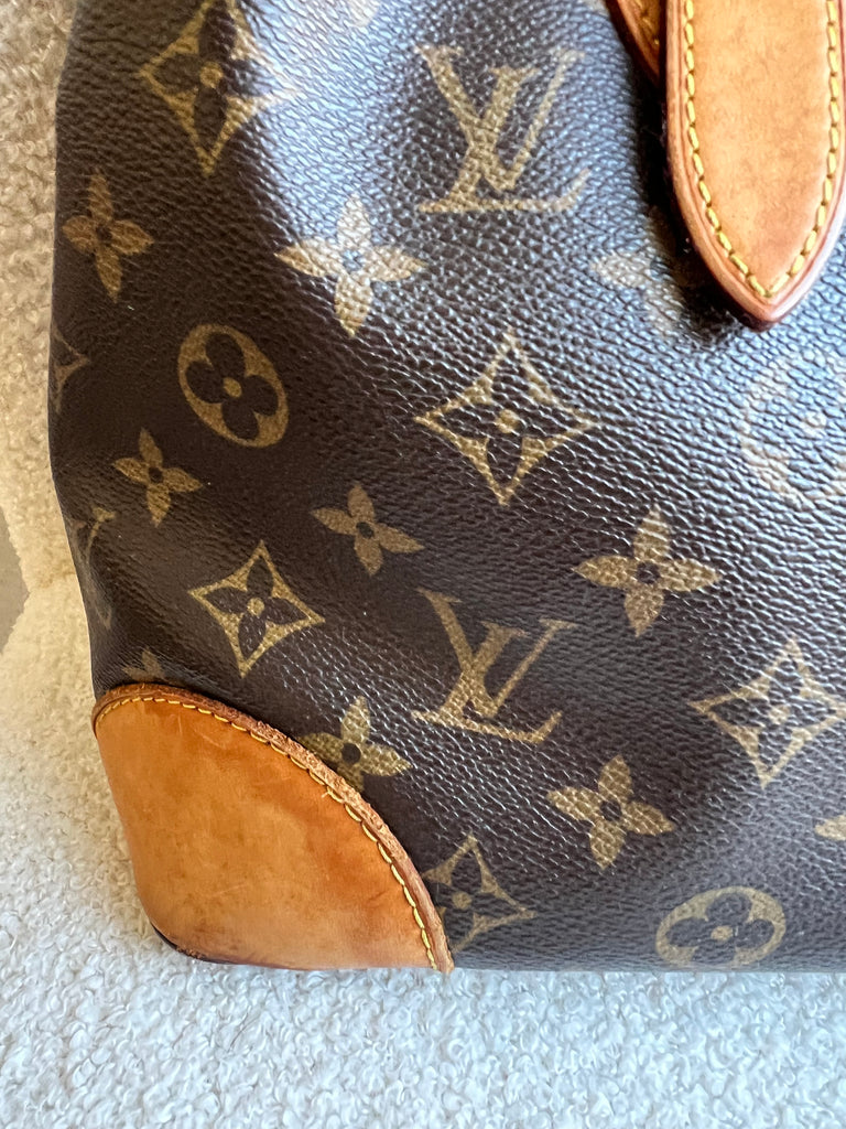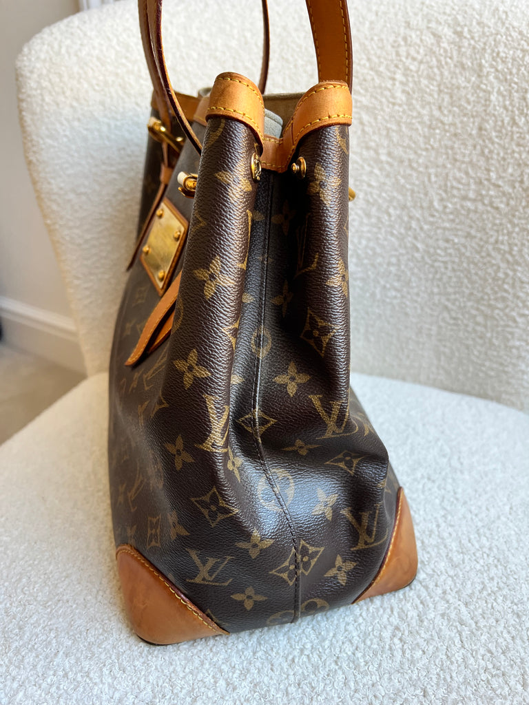 Louis Vuitton Hampstead MM in Monogram with gold hardware. This roomy, slightly slouchy tote style is ideal for day to day use and has clip closure. Can be carried over shoulder or in the crook of the arm with two leather adjustable leather straps. This style is now discontinued.