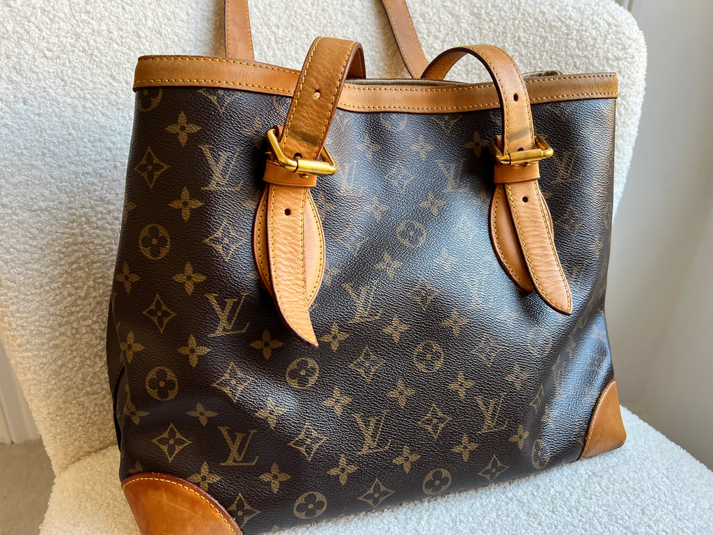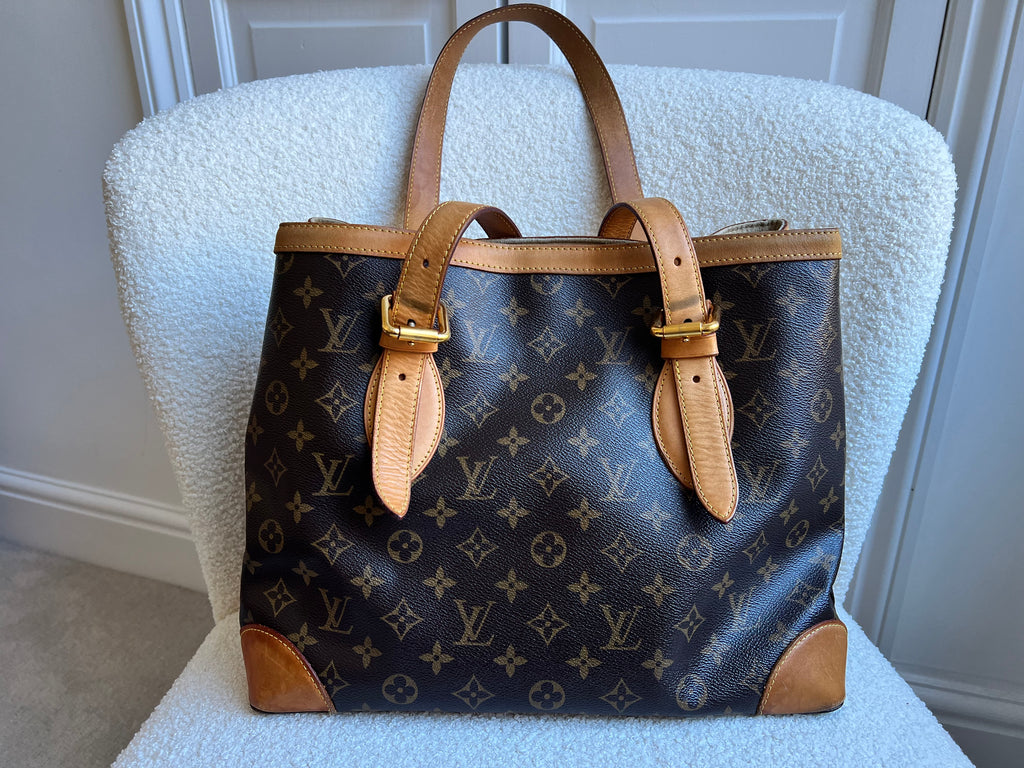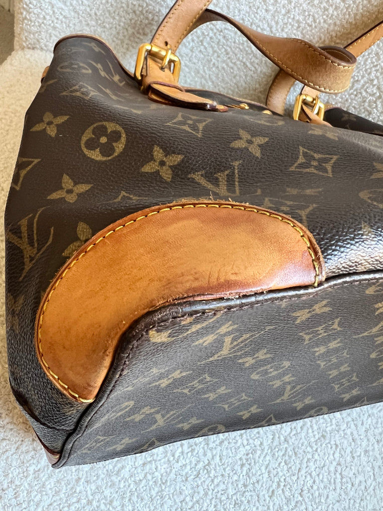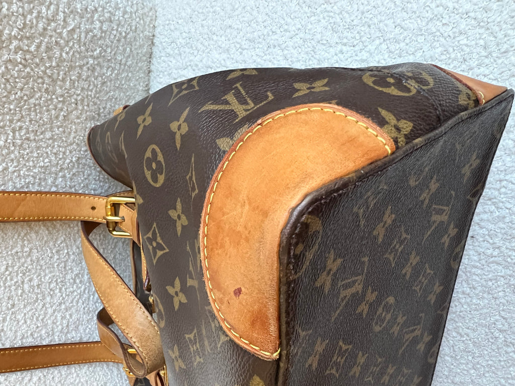 Louis Vuitton Hampstead MM in Monogram with gold hardware. This roomy, slightly slouchy tote style is ideal for day to day use and has clip closure. Can be carried over shoulder or in the crook of the arm with two leather adjustable leather straps. This style is now discontinued.