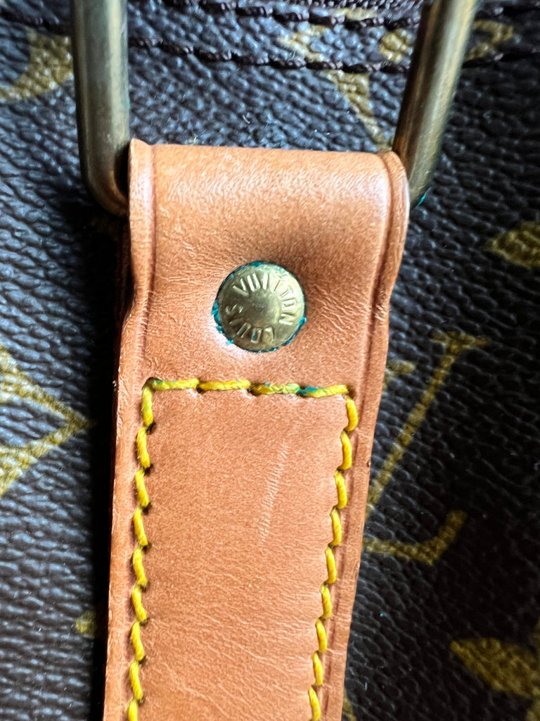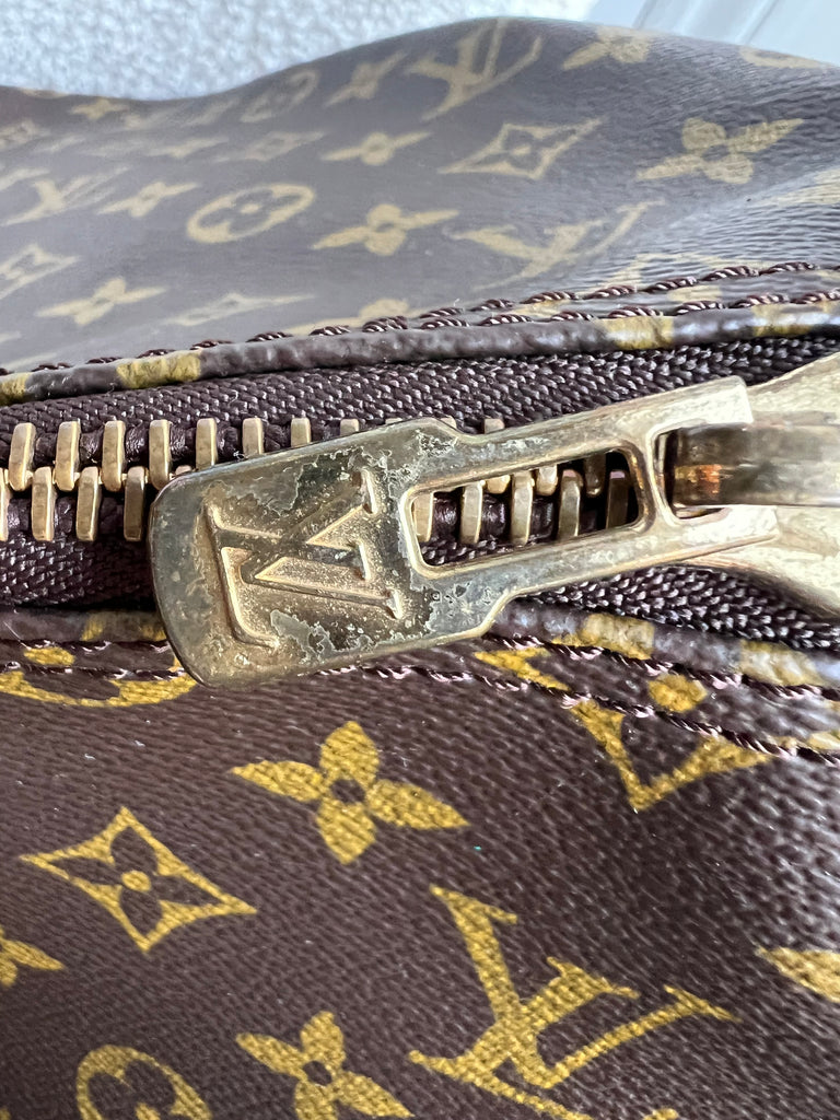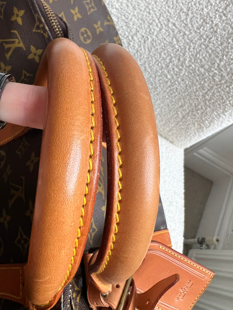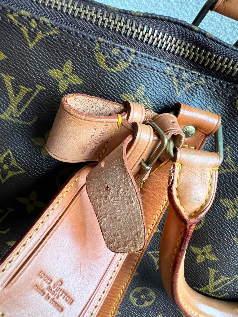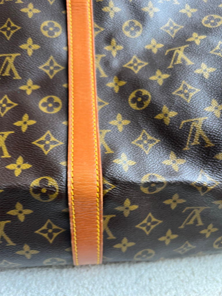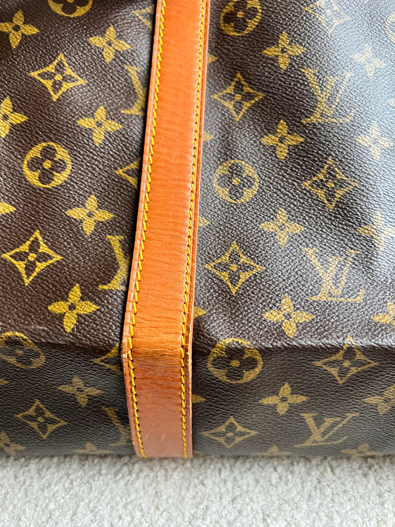 Louis Vuitton Vintage Keepall 55 in Monogram canvas with gold hardware. The classic keepall holdall style is one of Louis Vuitton's most popular styles and is often sold out online and in store. This style is timeless and elegant and is perfect gym use or weekend trips. Slightly slouchy in shape, the Keepall features rolled leather handles and can be carried by hand or in the crook of the arm. 1990s. Note this Keepall style does not come with a long strap and there is no D rings to attach a strap.