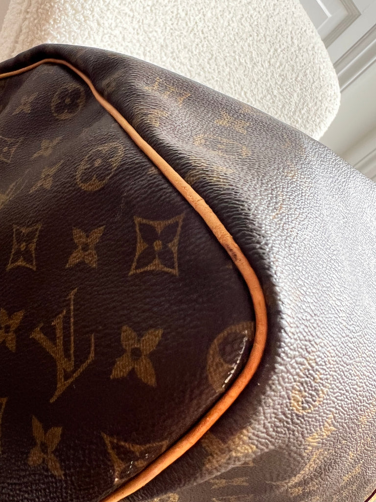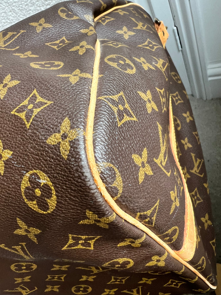 Louis Vuitton Vintage Keepall Bandouliere 60 in Monogram Canvas with Gold Hardware. This iconic bag embodies the spirit of modern travel. Light, supple and stylish, this cabin friendly is perfect for weekends away or short travel. Can be carried in hand or over shoulder using detachable strap. The 60 size has a huge capacity.