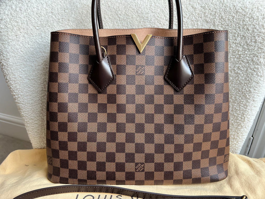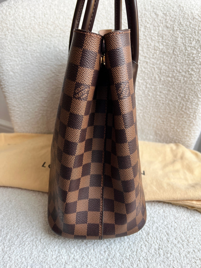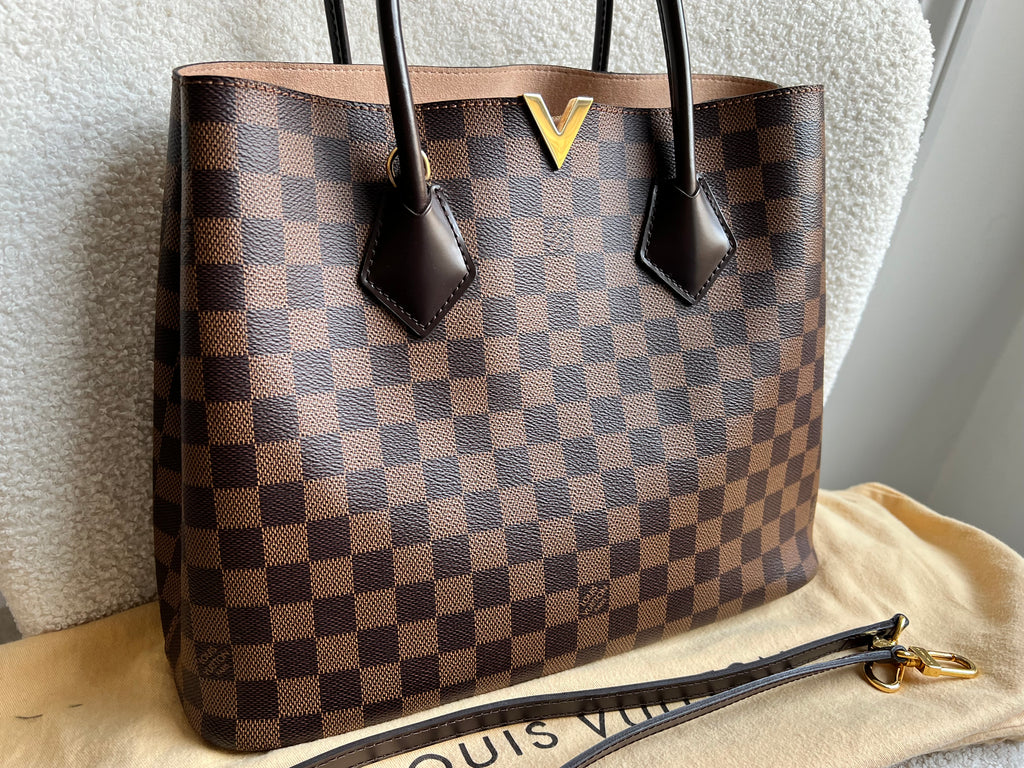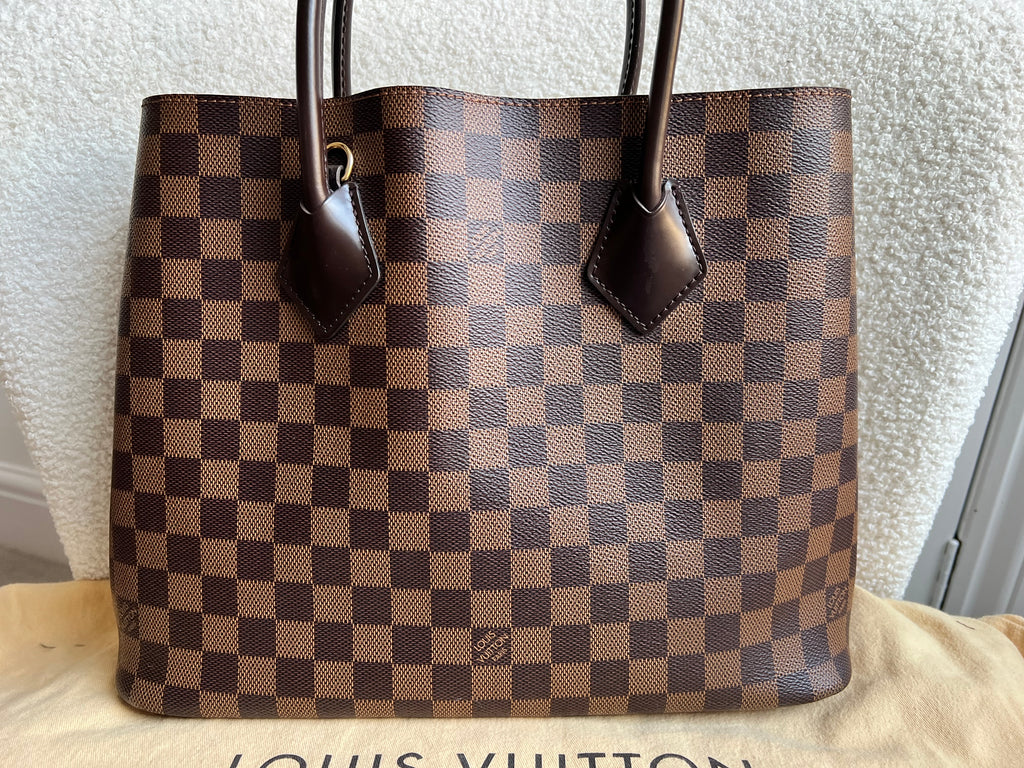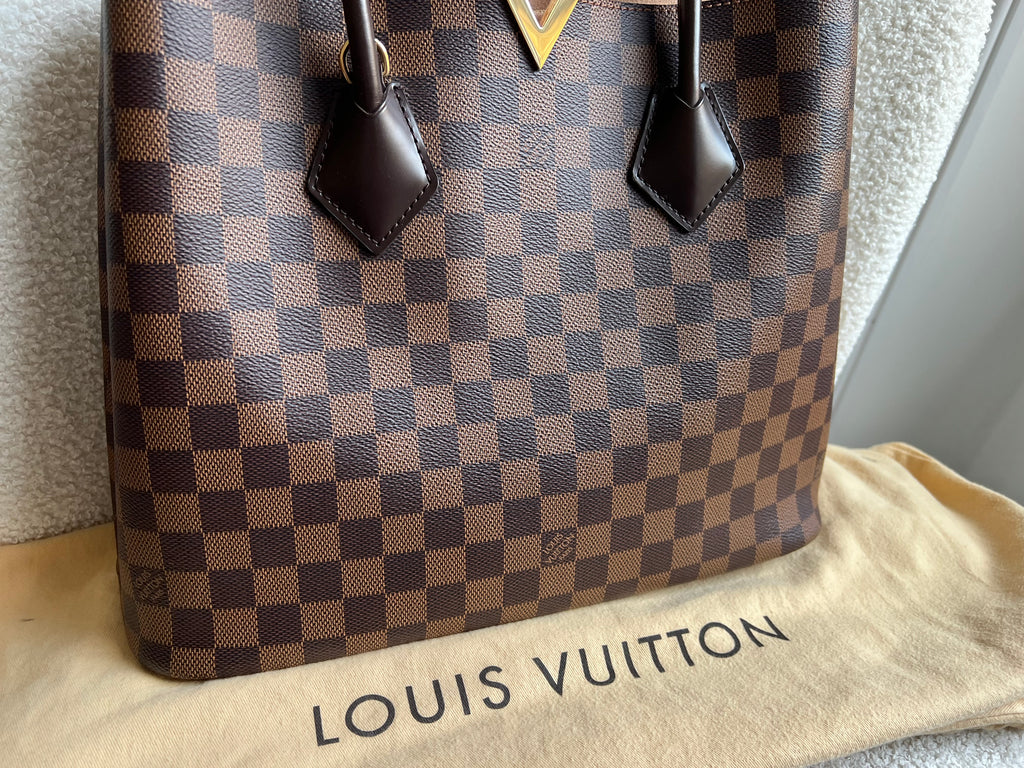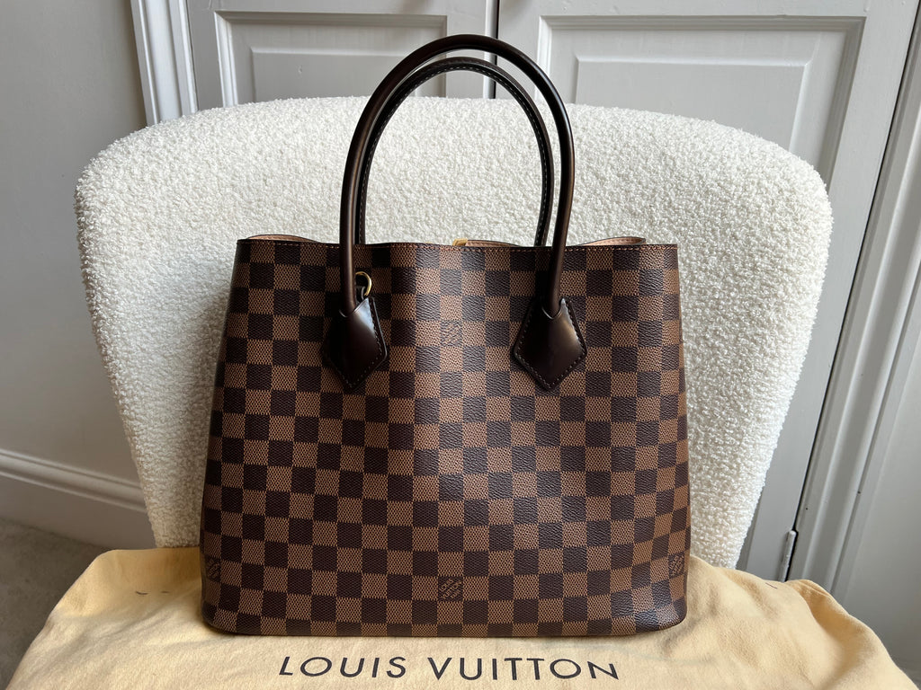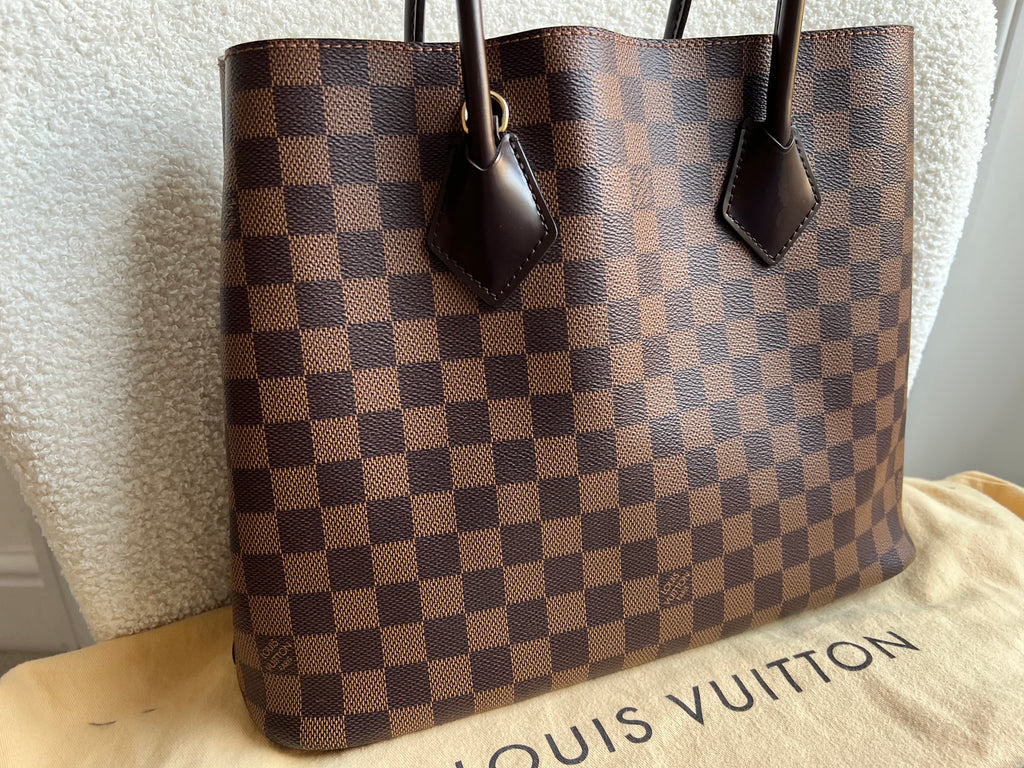 Louis Vuitton Kensington in Damier Ebene coated canvas with gold hardware. This sophisticated and feminine style, is practical and ideal for day to day use. Featuring two top handles and removable leather strap, fits all your daily essentials in the two main compartments separated by zipper pocket. Can be carried in hand or worn over the shoulder using the detachable strap. Now discontinued, the last known RRP was £1370 however would be around £1800 in current prices.