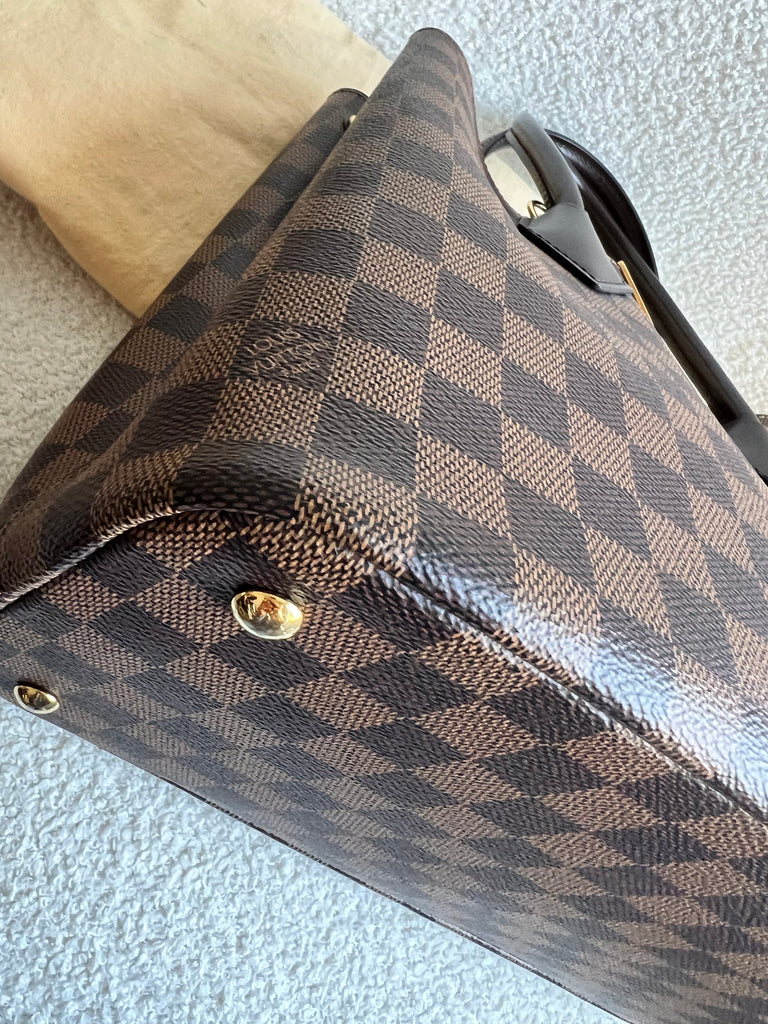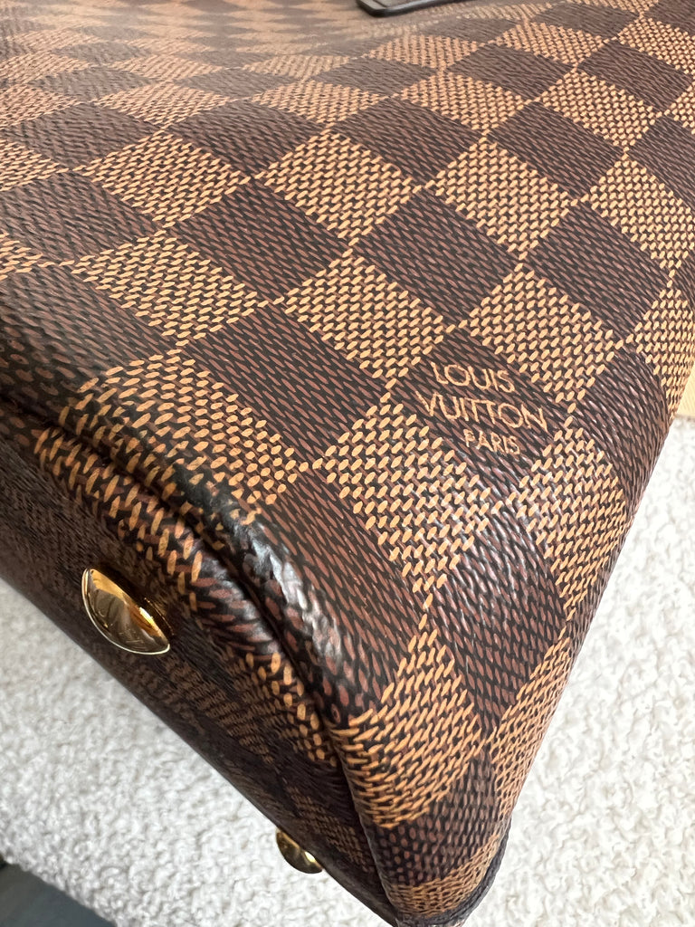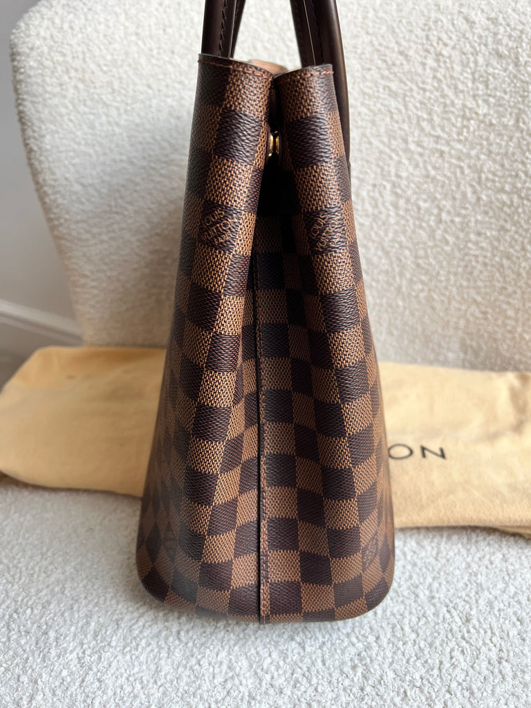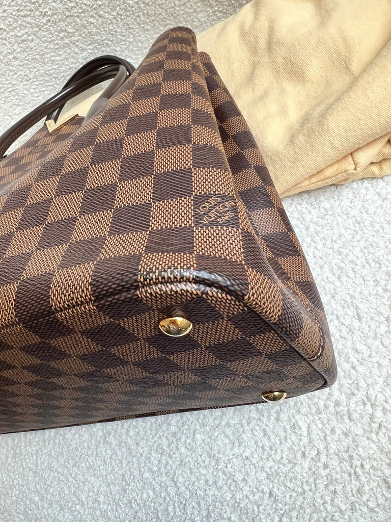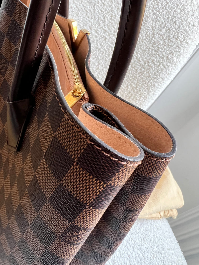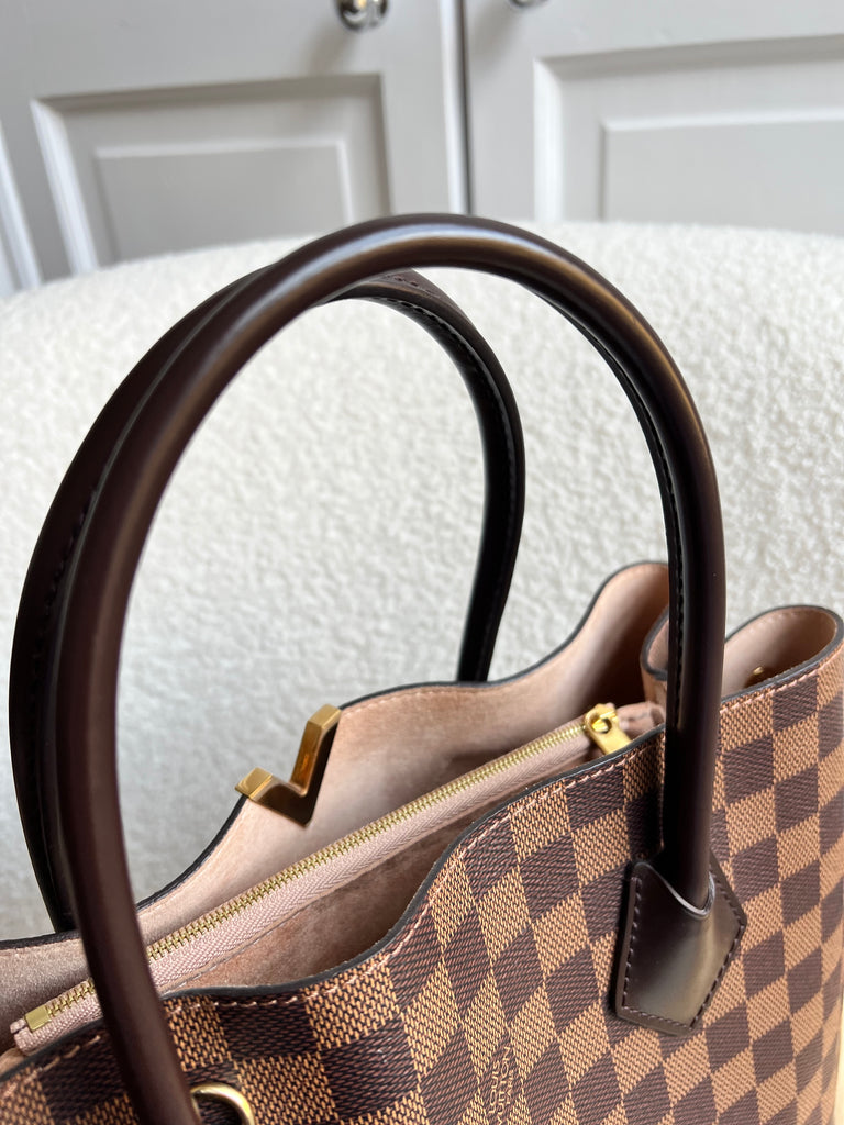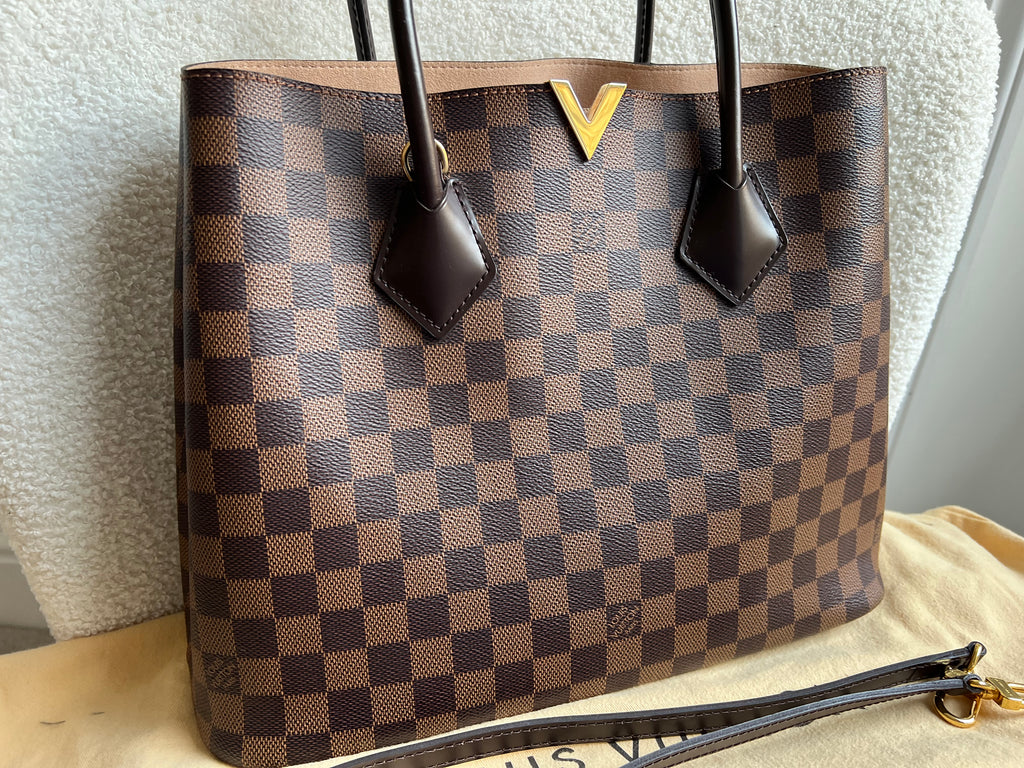 Louis Vuitton Kensington in Damier Ebene coated canvas with gold hardware. This sophisticated and feminine style, is practical and ideal for day to day use. Featuring two top handles and removable leather strap, fits all your daily essentials in the two main compartments separated by zipper pocket. Can be carried in hand or worn over the shoulder using the detachable strap. Now discontinued, the last known RRP was £1370 however would be around £1800 in current prices.