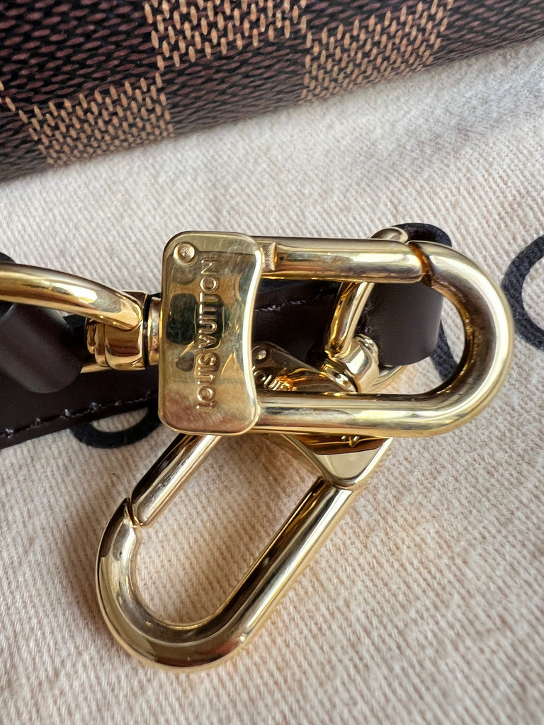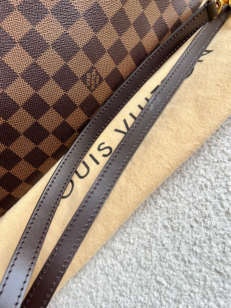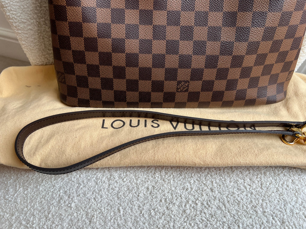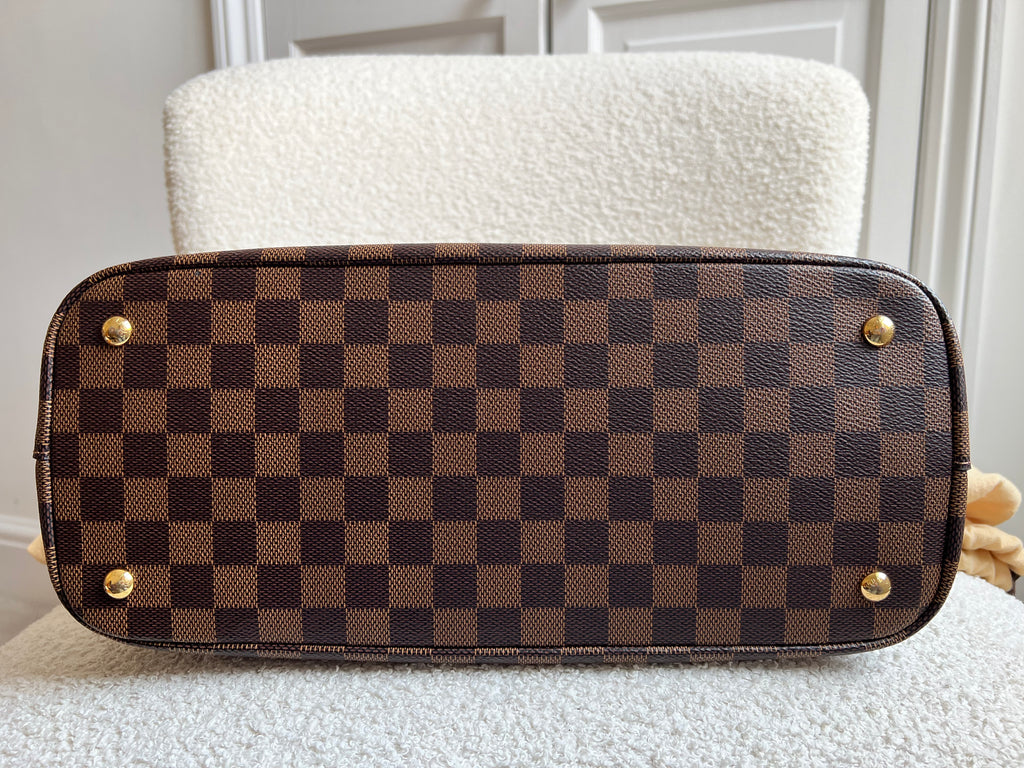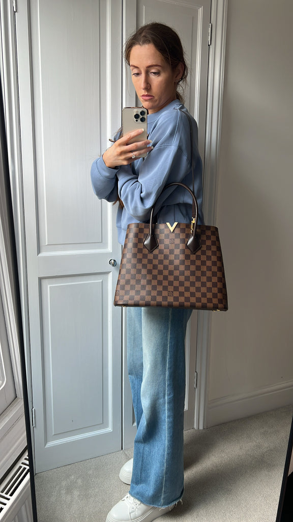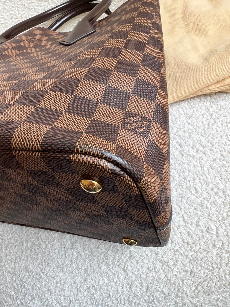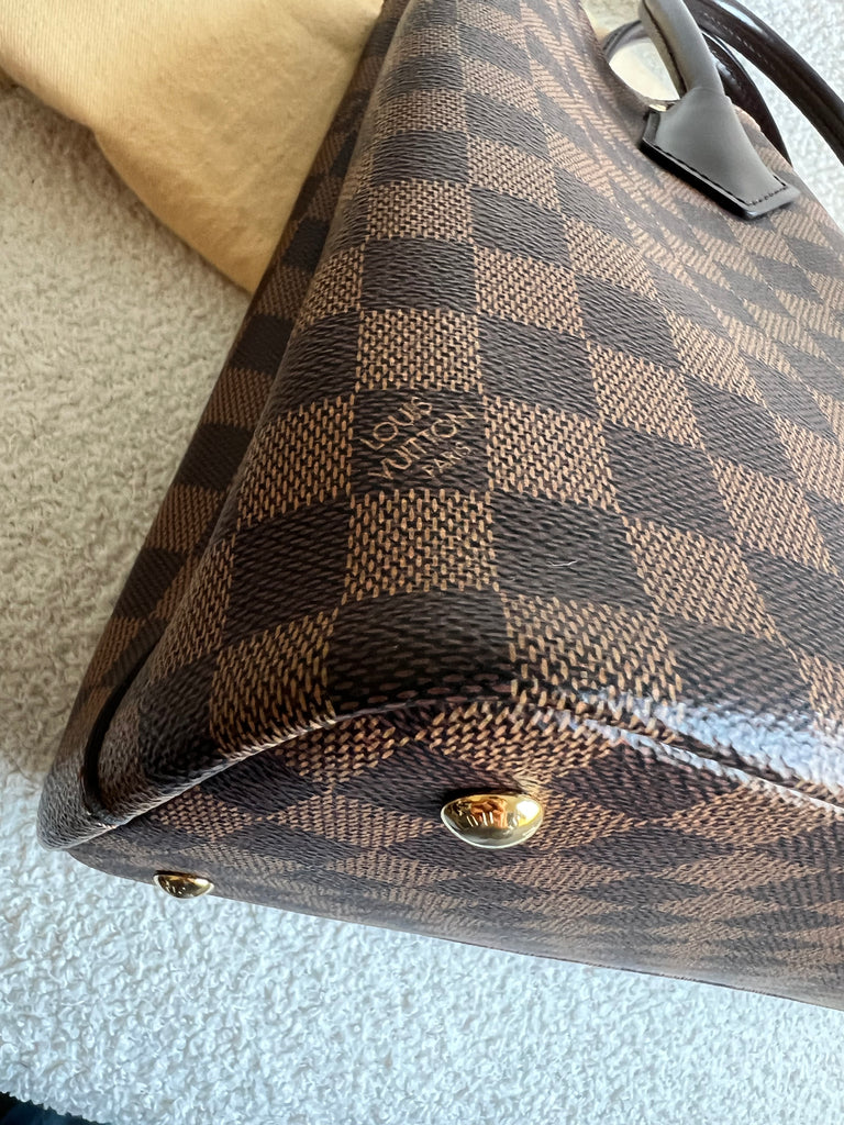 Louis Vuitton Kensington in Damier Ebene coated canvas with gold hardware. This sophisticated and feminine style, is practical and ideal for day to day use. Featuring two top handles and removable leather strap, fits all your daily essentials in the two main compartments separated by zipper pocket. Can be carried in hand or worn over the shoulder using the detachable strap. Now discontinued, the last known RRP was £1370 however would be around £1800 in current prices.