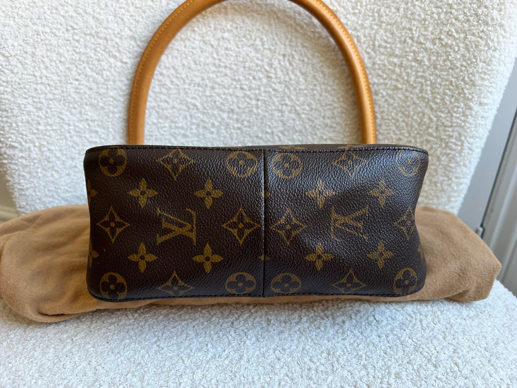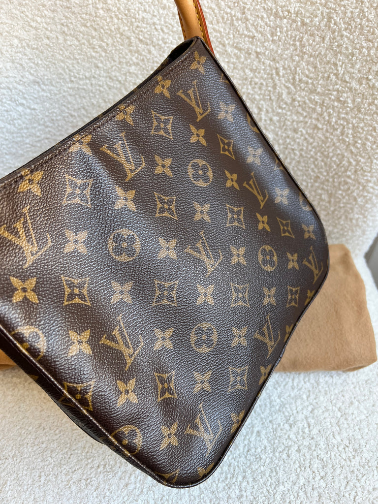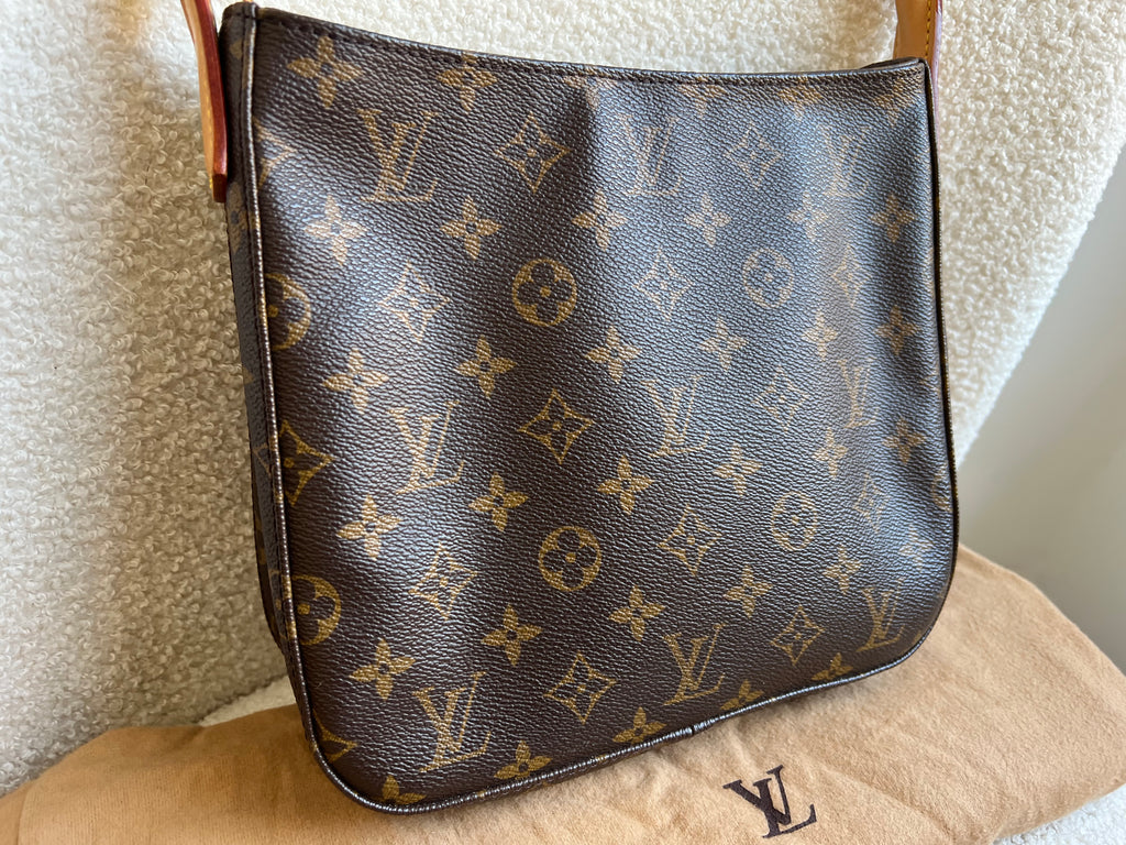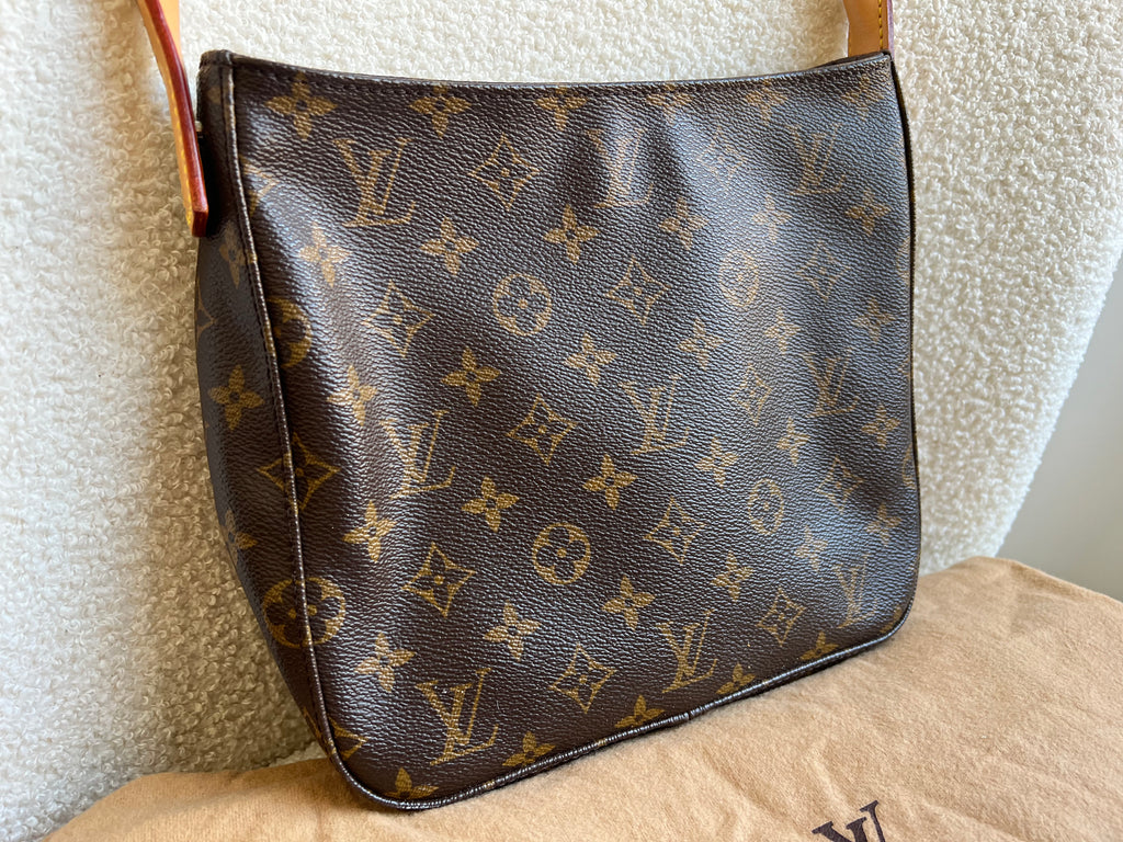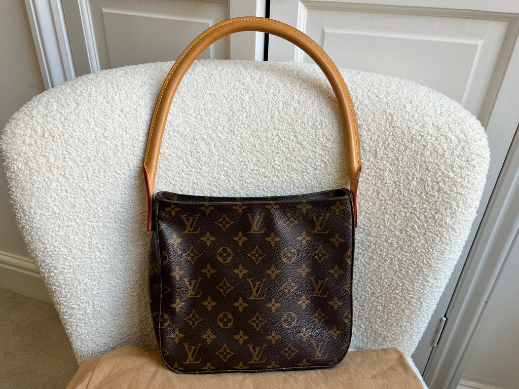 Louis Vuitton Looping MM in Monogram canvas. In the iconic monogram canvas, this small to medium sized shoulder bag is ideal for a day to day bag. Can be carried over the shoulder using the leather handle. Perfect "starter" designer bag with a lower price tag than some of Louis Vuitton's other models. Zipper closure to secure your belongings. 2001 year and great condition given age.