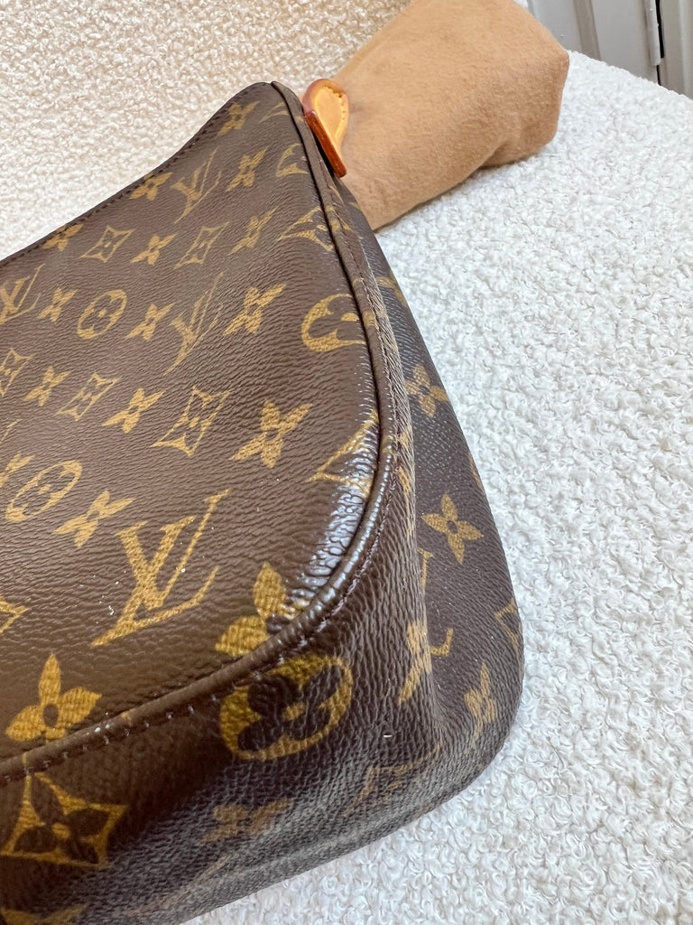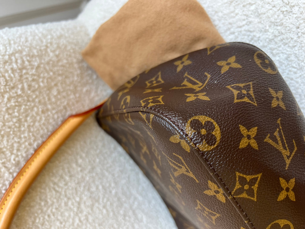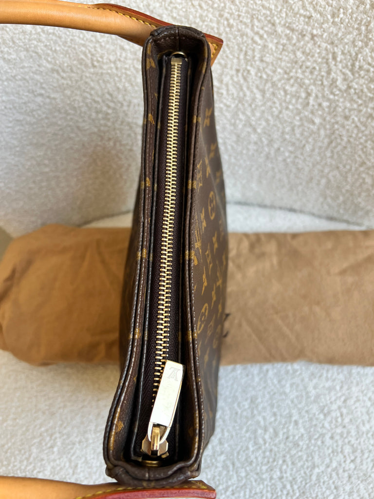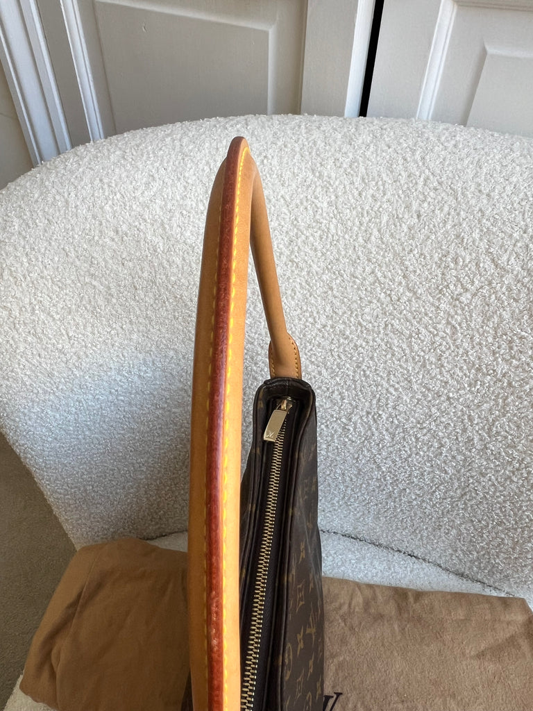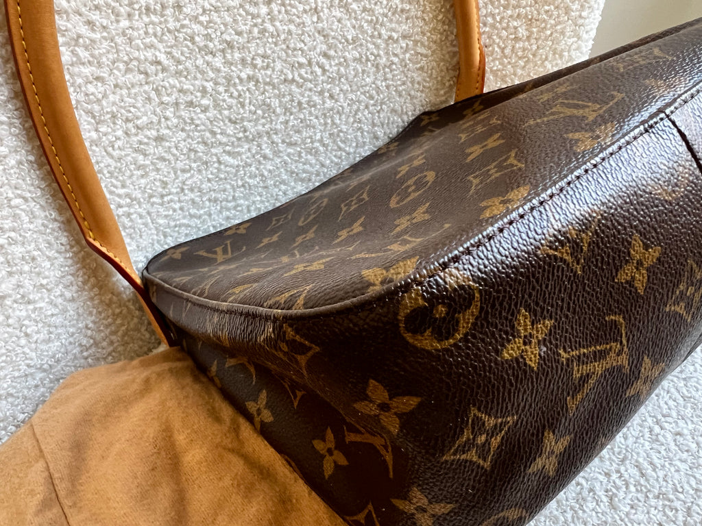 Louis Vuitton Looping MM in Monogram canvas. In the iconic monogram canvas, this small to medium sized shoulder bag is ideal for a day to day bag. Can be carried over the shoulder using the leather handle. Perfect "starter" designer bag with a lower price tag than some of Louis Vuitton's other models. Zipper closure to secure your belongings. 2001 year and great condition given age.