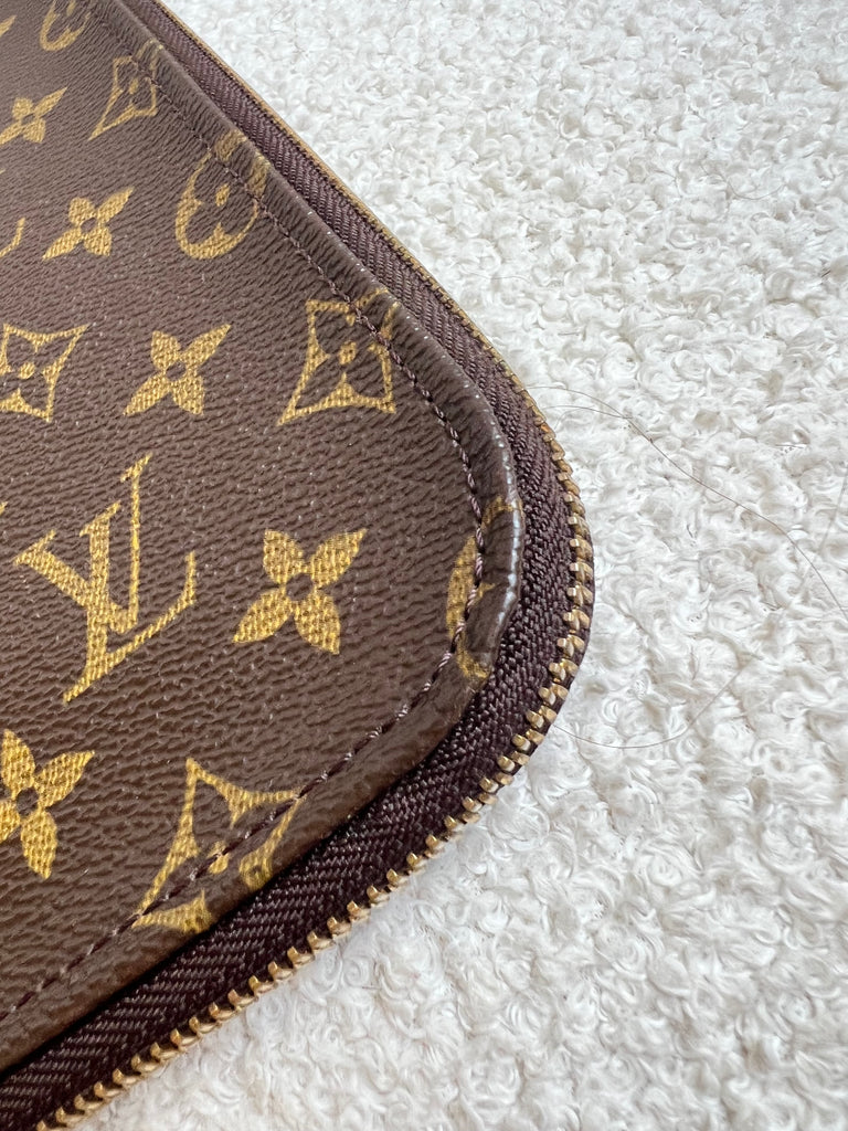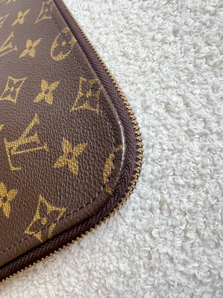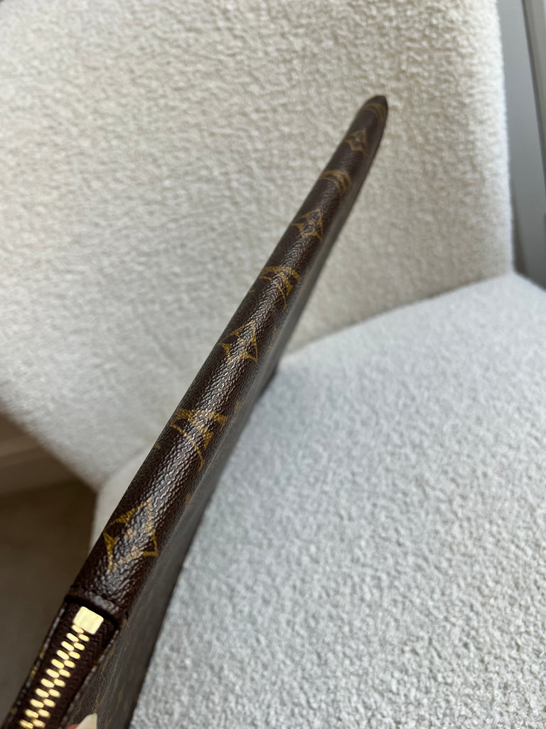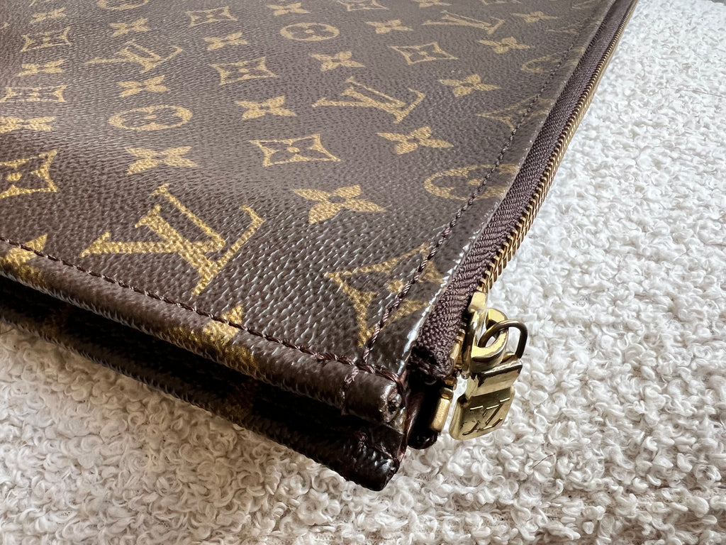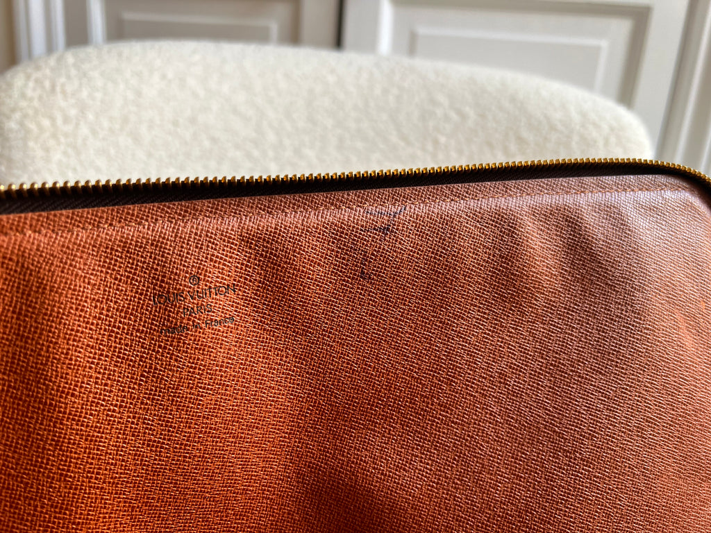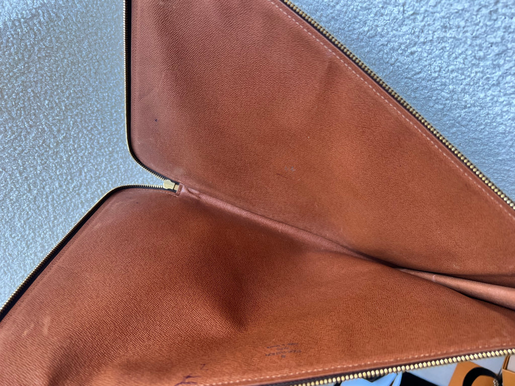 Louis Vuitton Vintage Document Holder in Monogram canvas with gold tone hardware. Ideal for storing documents, files or slim laptop. Can be carried by hand or carried inside a larger bag. Fits a MacBook 13 inch and possibly a larger sized laptop. 1999 year.