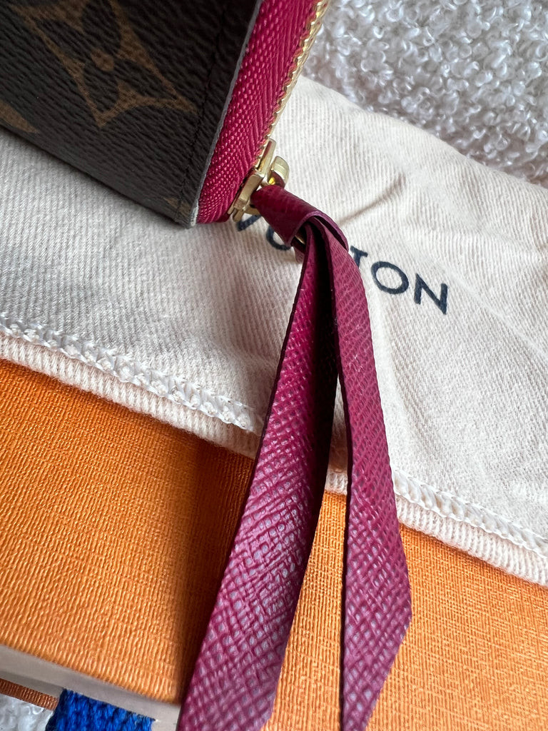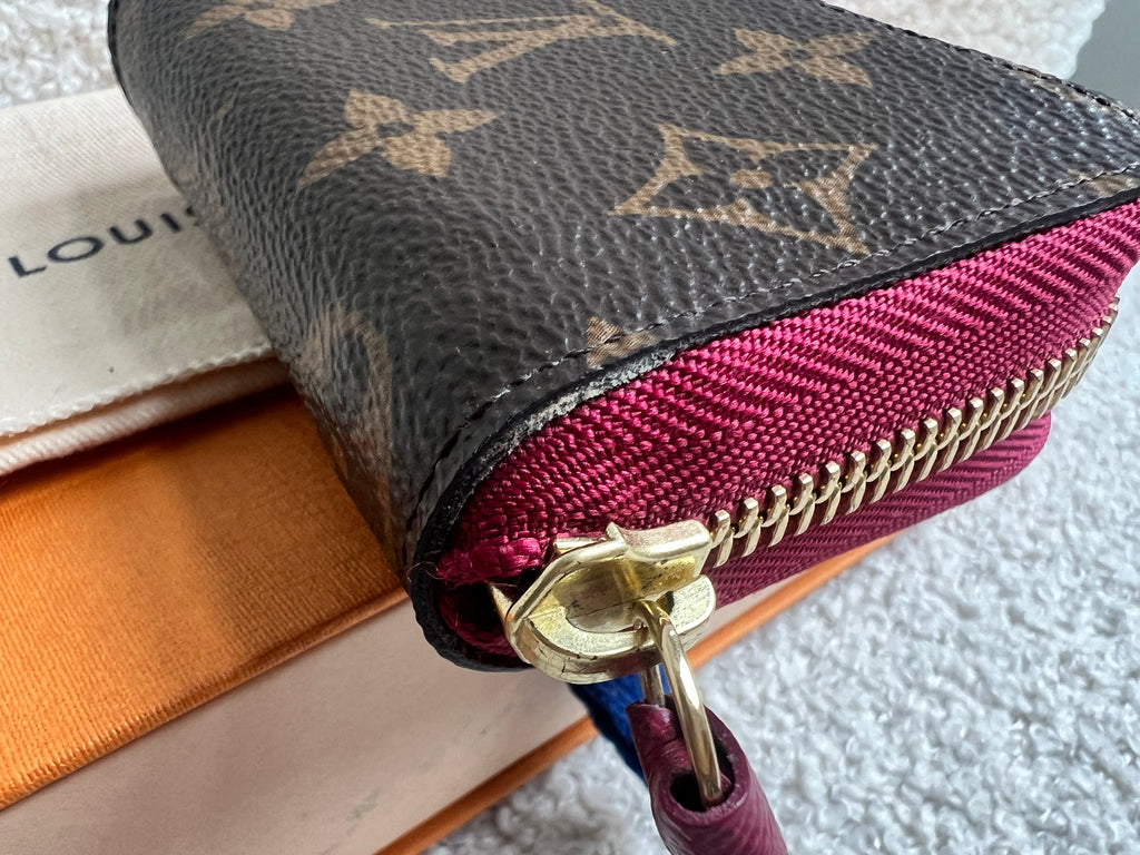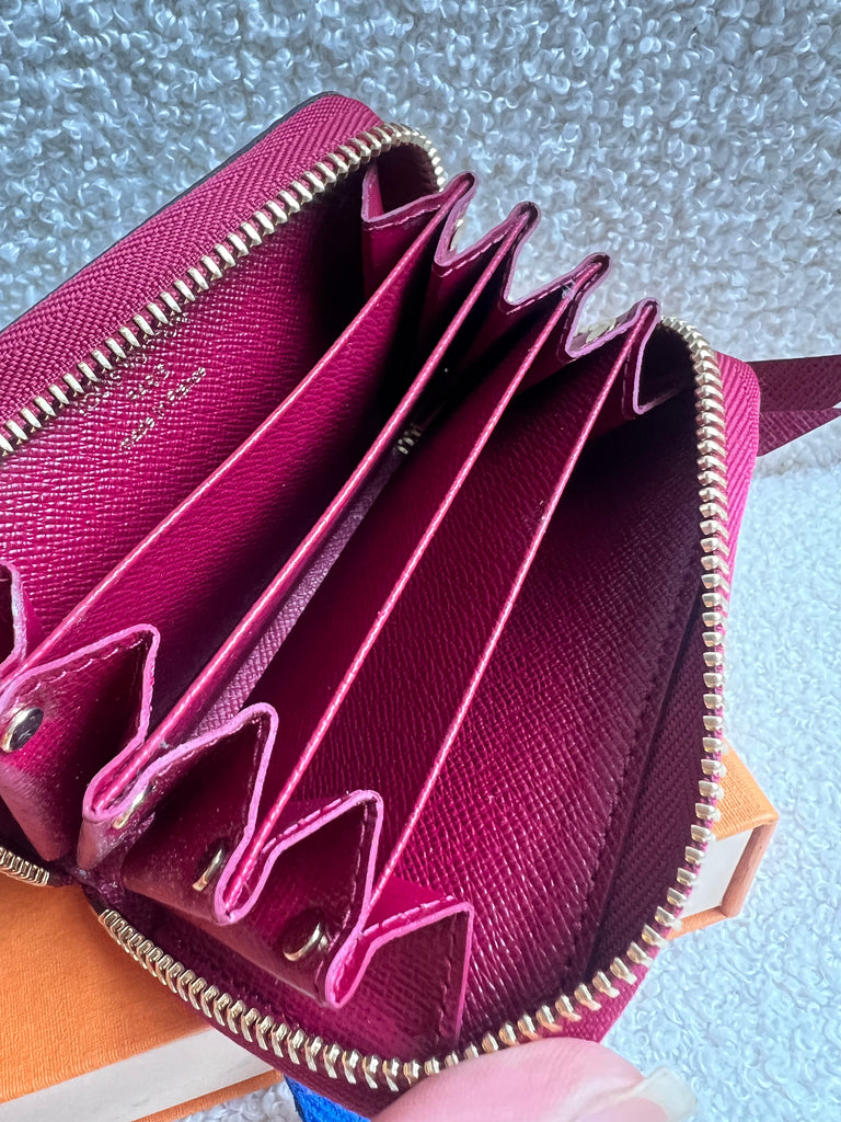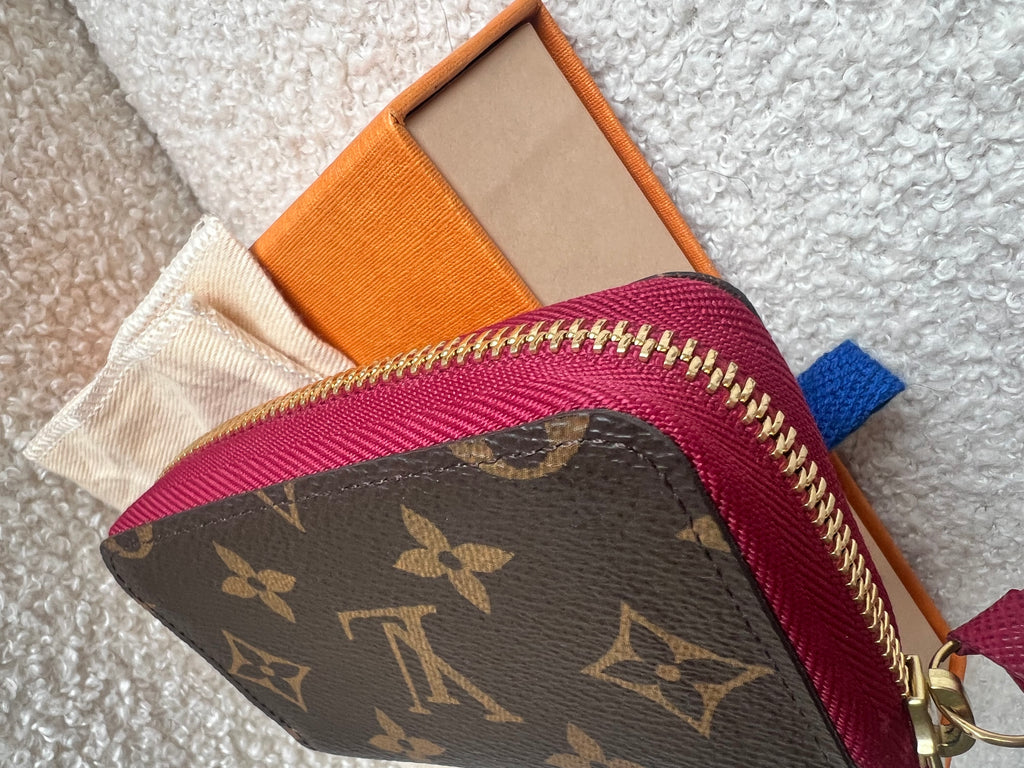 Louis Vuitton Multicartes Zippy Wallet in Monogram canvas and fuchsia. This style features a zip around closure, fitting numerous cards and coins.