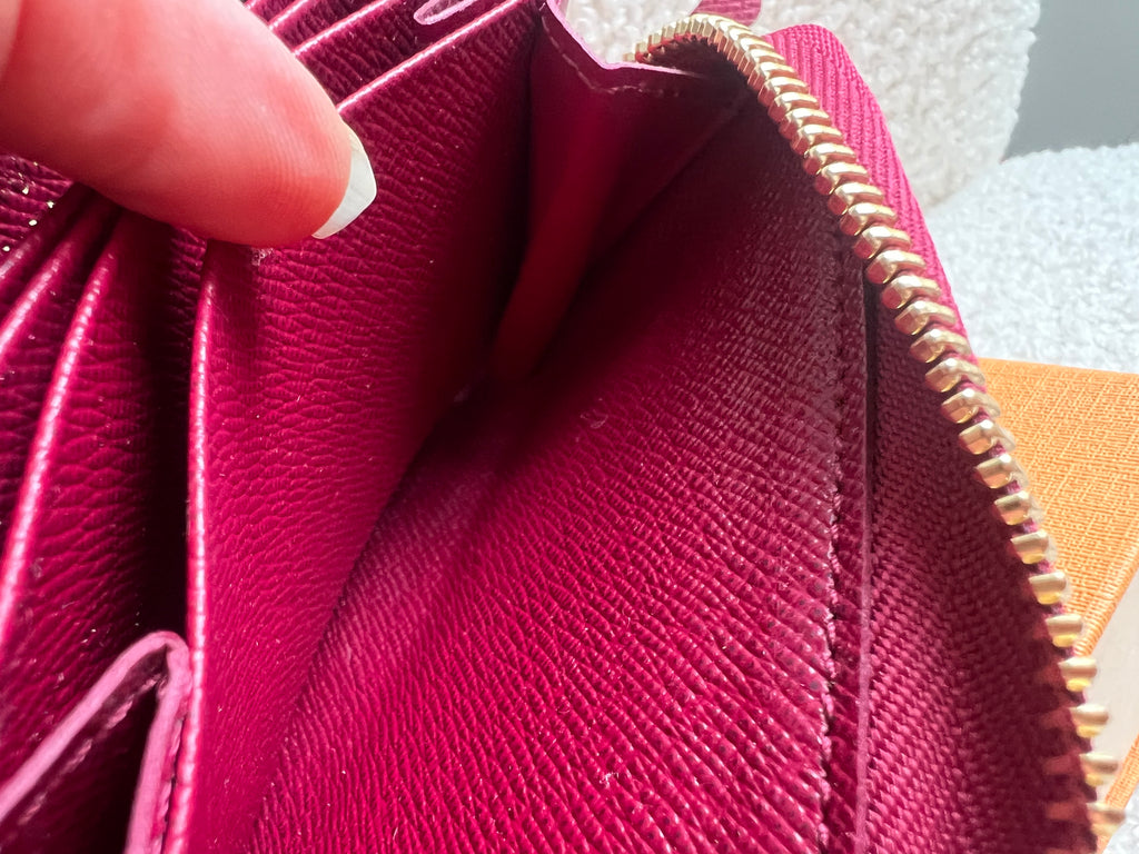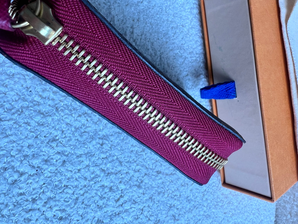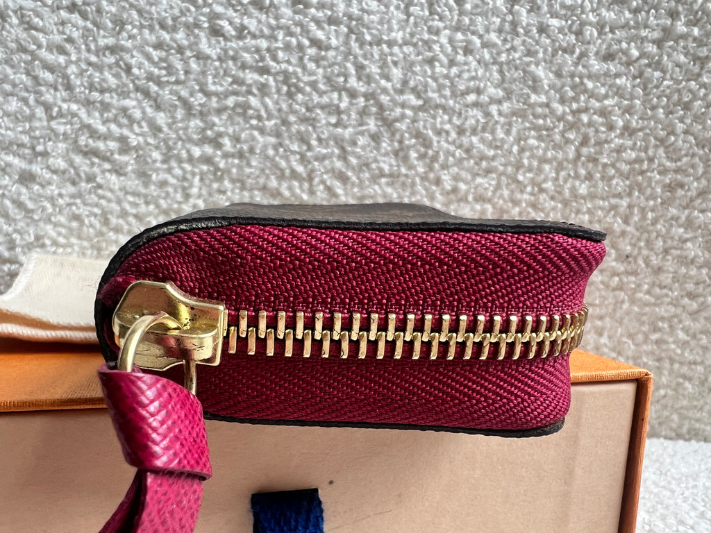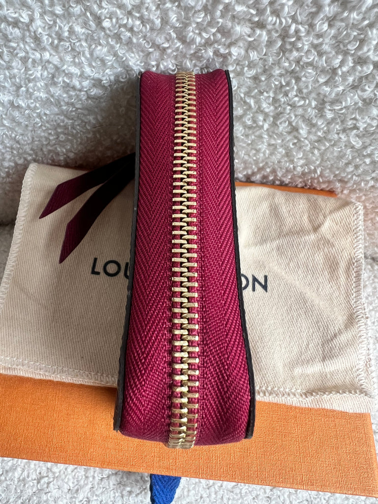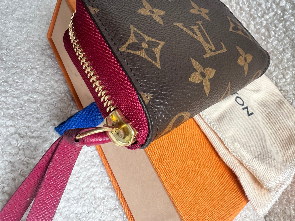 Louis Vuitton Multicartes Zippy Wallet in Monogram canvas and fuchsia. This style features a zip around closure, fitting numerous cards and coins.