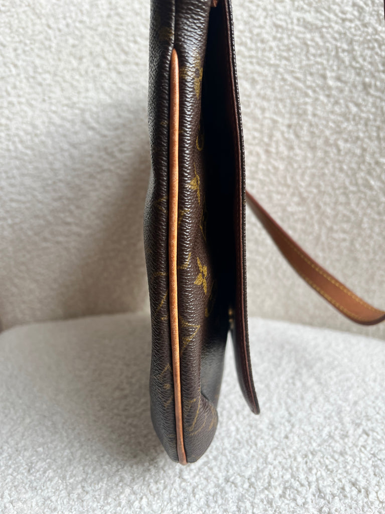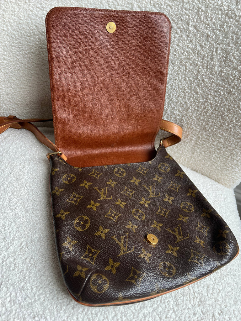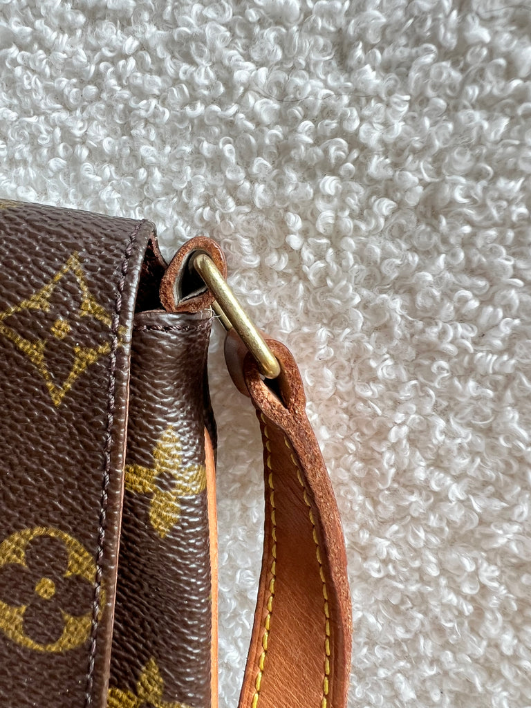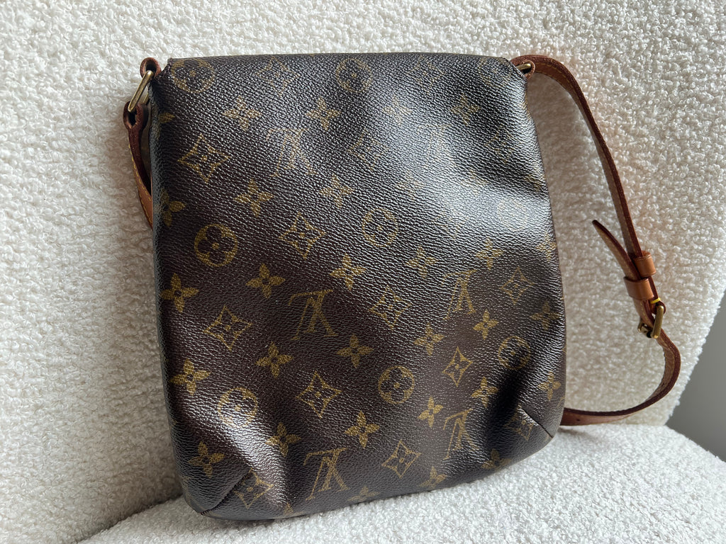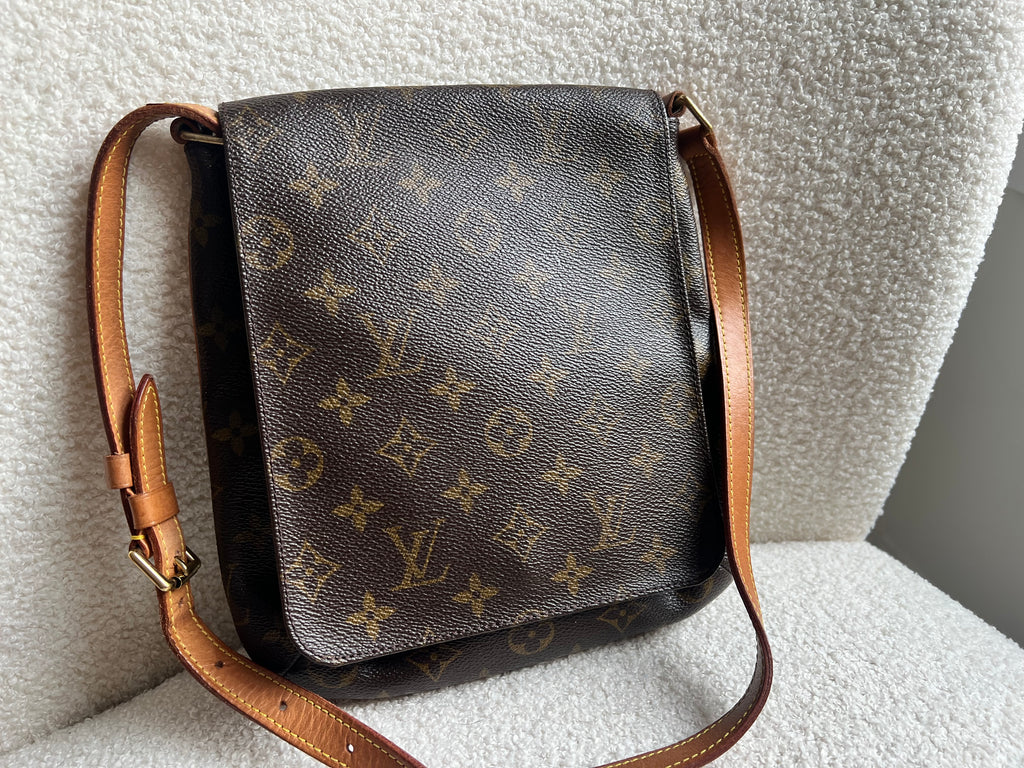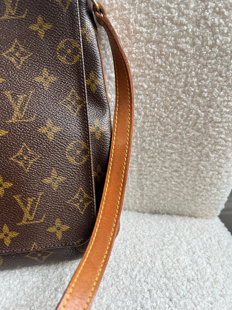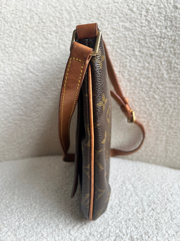 Louis Vuitton Musette Salsa PM in monogram canvas. This is the version with the shorter strap (ie it does not go cross body). In the iconic monogram canvas, this slimline shoulder bag is ideal for those who prefer smaller, lightweight bags. Now discontinued, a great example of vintage quality LV. Fold over flap closure. Perfect "starter" designer bag with a lower price tag than some of Louis Vuitton's other models.