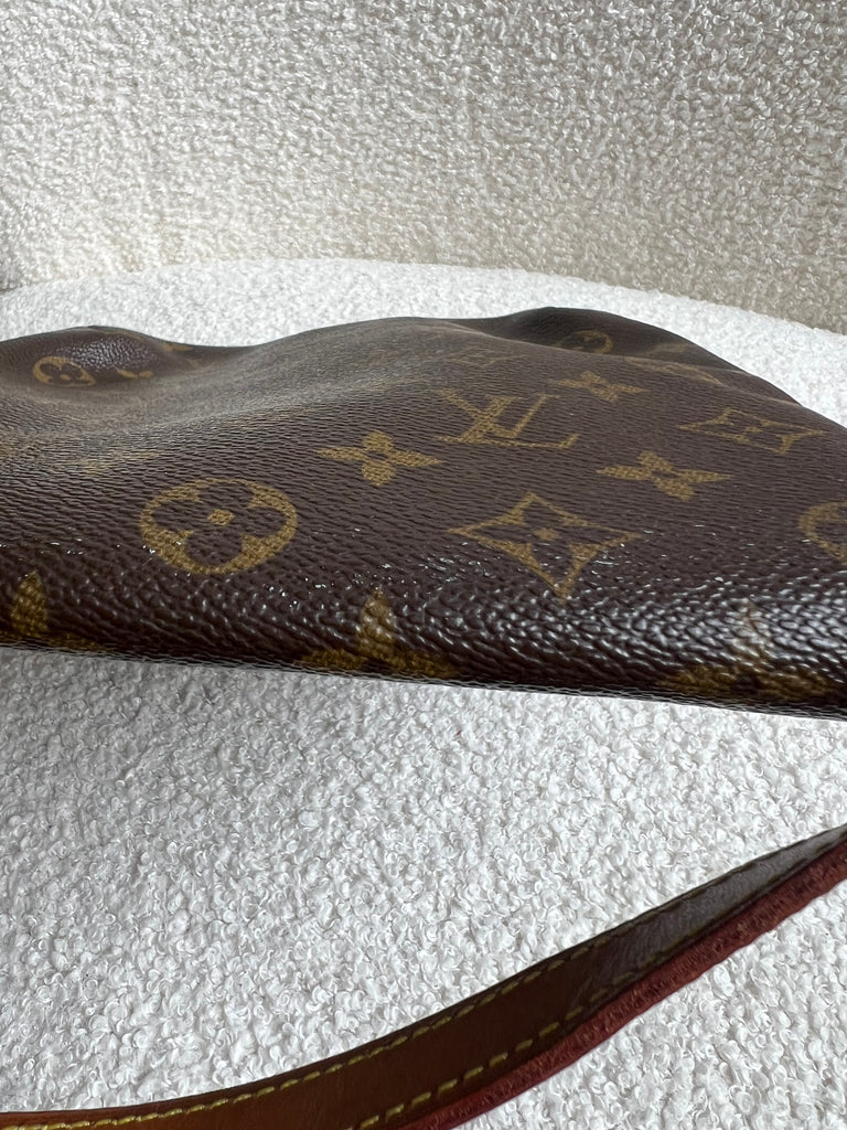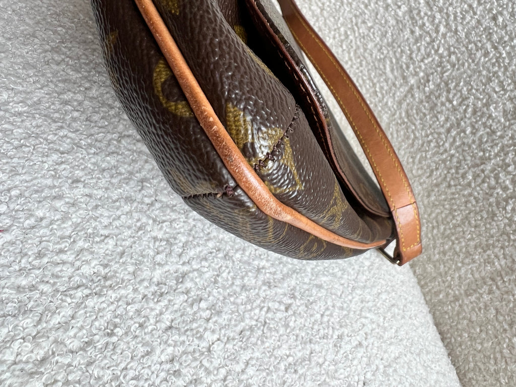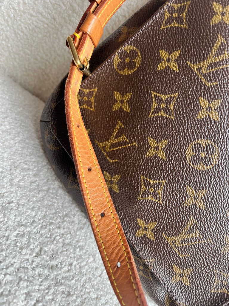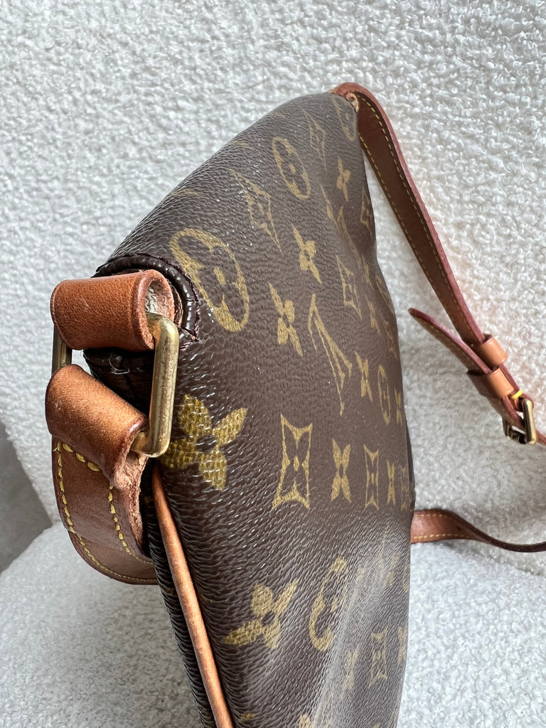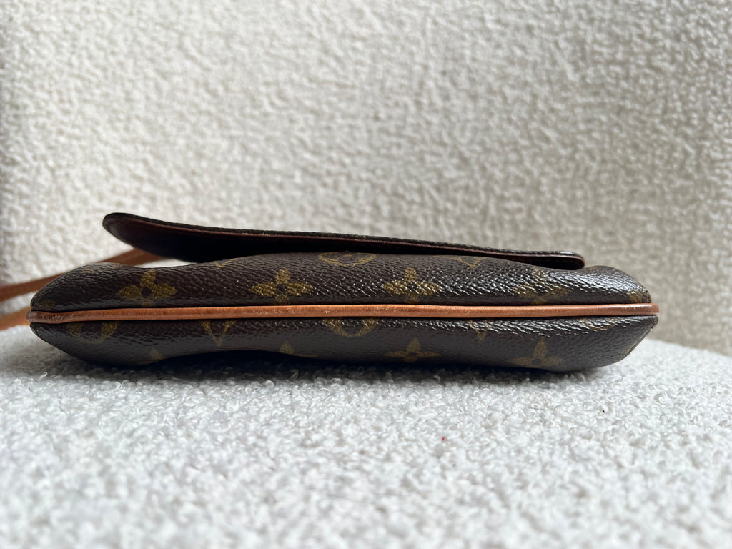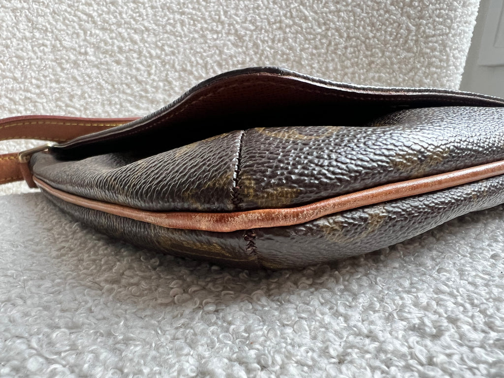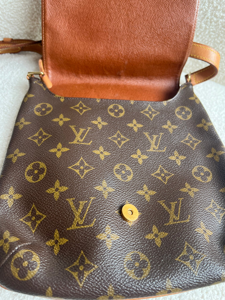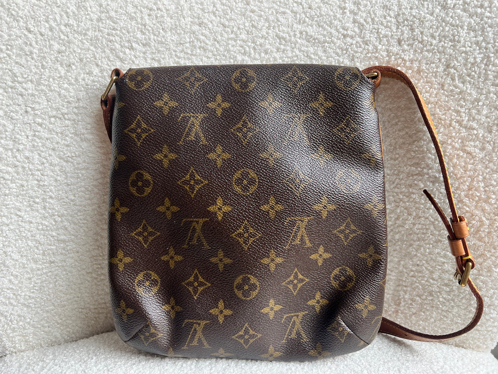 Louis Vuitton Musette Salsa PM in monogram canvas. This is the version with the shorter strap (ie it does not go cross body). In the iconic monogram canvas, this slimline shoulder bag is ideal for those who prefer smaller, lightweight bags. Now discontinued, a great example of vintage quality LV. Fold over flap closure. Perfect "starter" designer bag with a lower price tag than some of Louis Vuitton's other models.