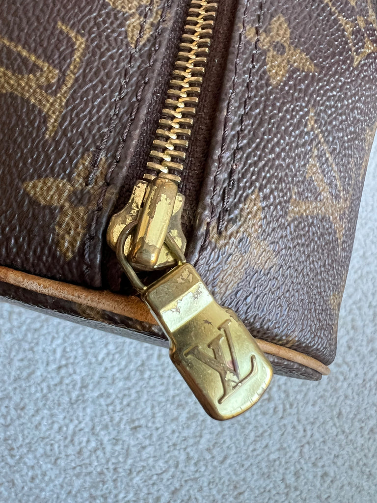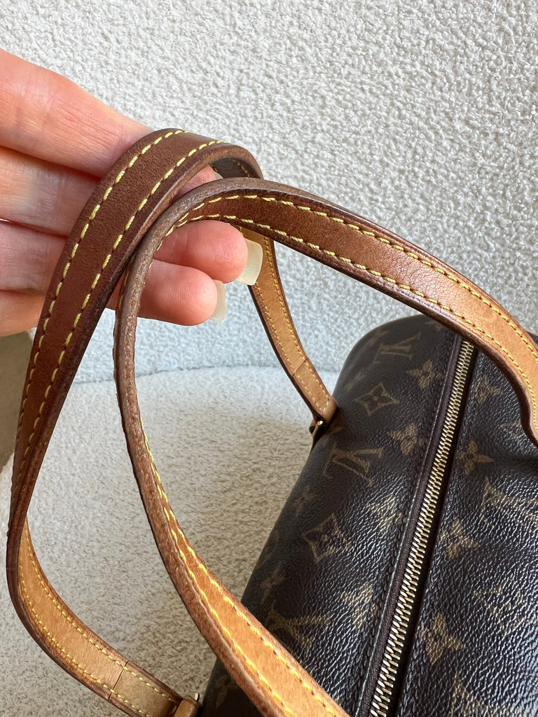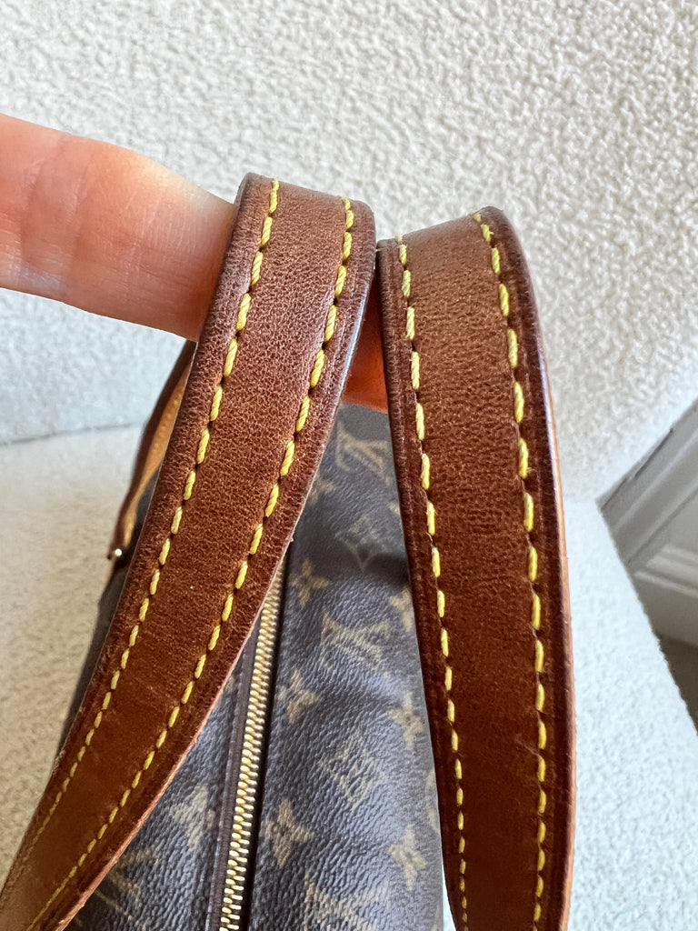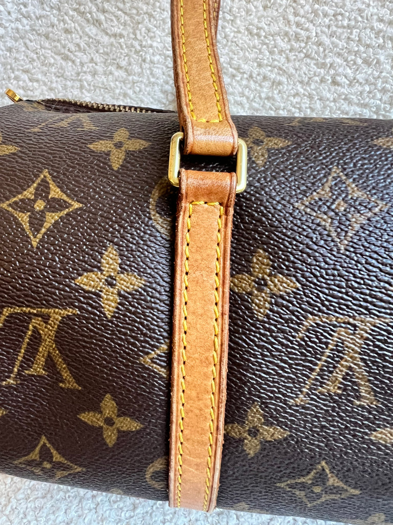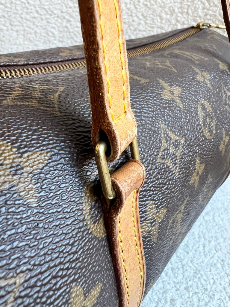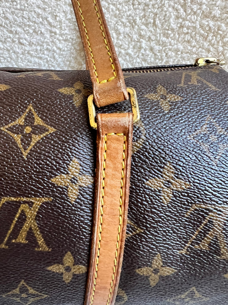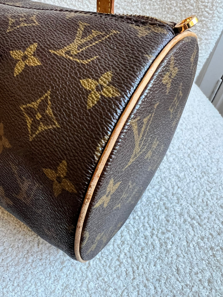 Louis Vuitton Papillon 30 Monogram. This cute bowling style bag is perfect as a grab bag for day to day use. Featuring zipper closure and two top handles and natural leather trim. Can be carried in the crook of the arm, by hand or over shoulder.